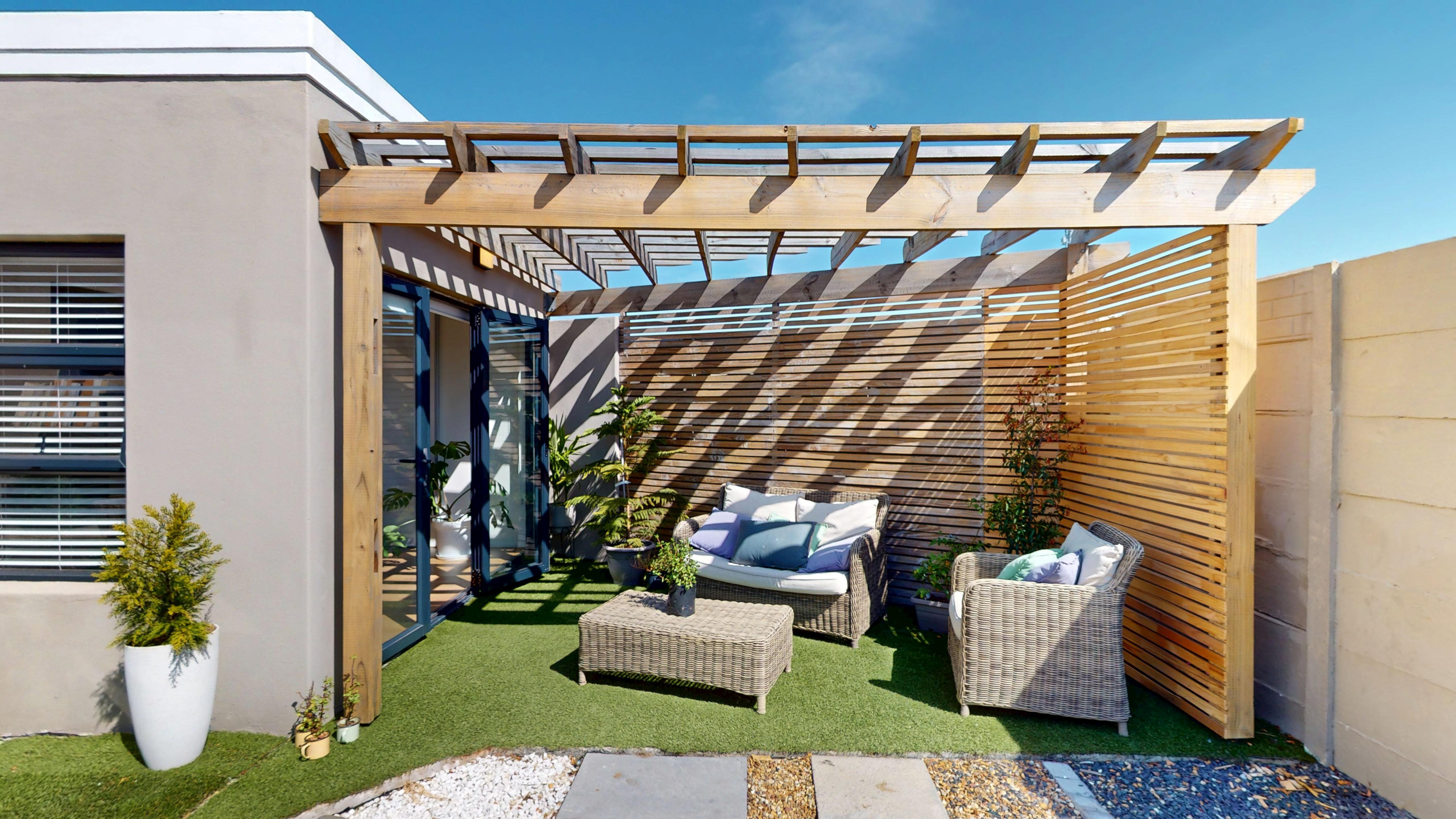 Step through the stacker doors to your own covered patio beneath a sleek pergola — a peaceful retreat for morning coffee or evening reflection.