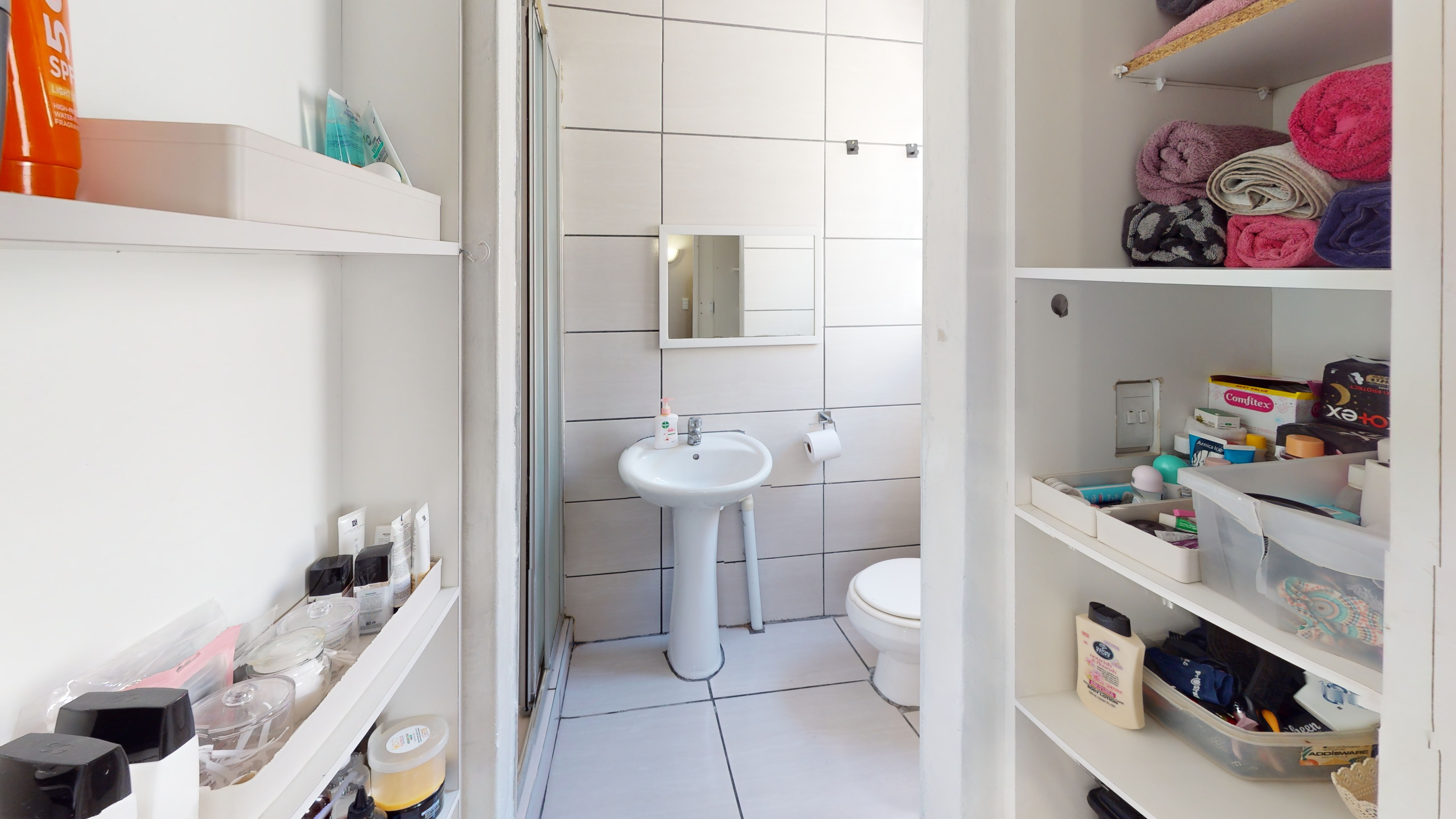 The property offers three bedrooms, including a spacious main bedroom with an en-suite bathroom fitted with a shower. The main and second bedrooms are generously sized, providing comfortable accommodation for family living. Flooring includes tiling in the main bedroom and laminated flooring in the second and third bedrooms.