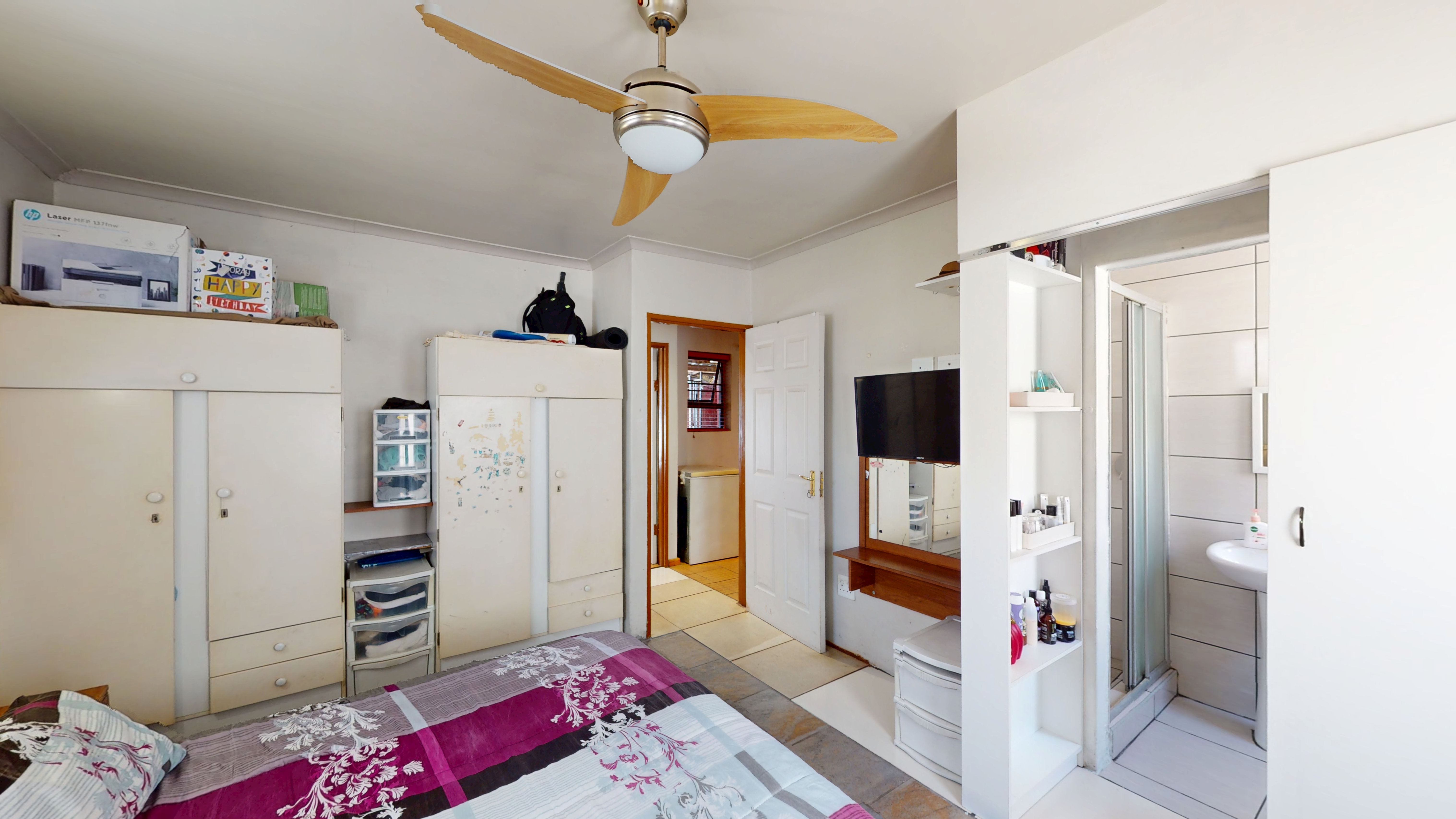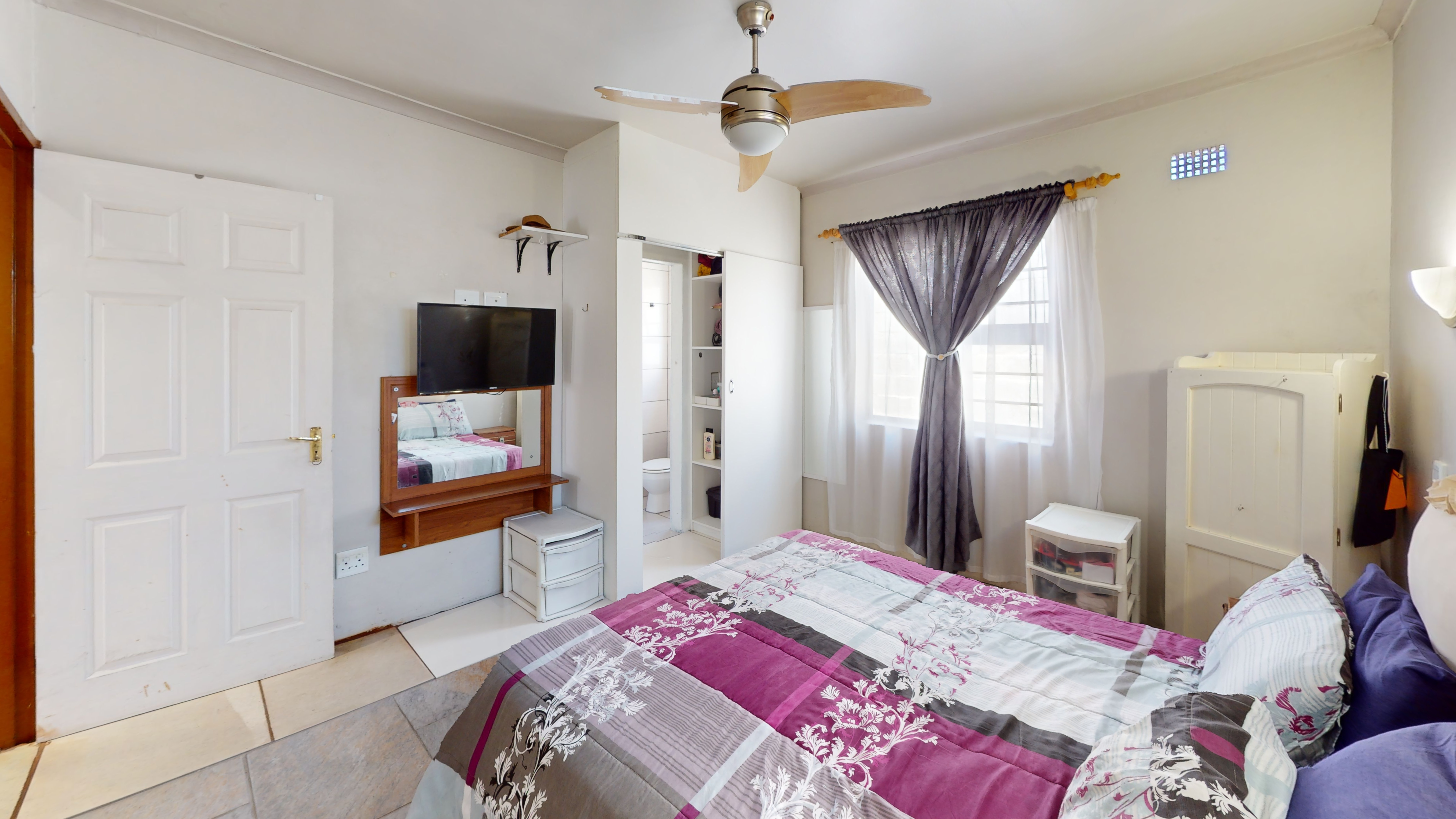 A major highlight of the property is the large motorized garage, accommodating up to four vehicles. The garage also includes a built-in braai, making it a functional space for entertaining or relaxed family gatherings.