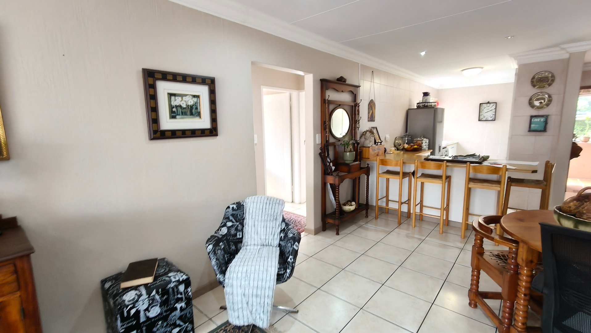 Situated in a well-maintained and sought-after complex in Roodekrans, this charming top-floor apartment offers space, privacy, and beautiful views — all wrapped into one exceptional opportunity. From the moment you enter the complex, the neat surroundings and tranquil atmosphere set the tone. As you make your way upstairs, you are welcomed into a spacious open-plan lounge and dining area that flows seamlessly into a quaint, yet functional kitchen positioned conveniently at the entrance.