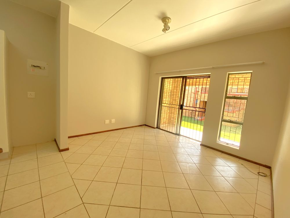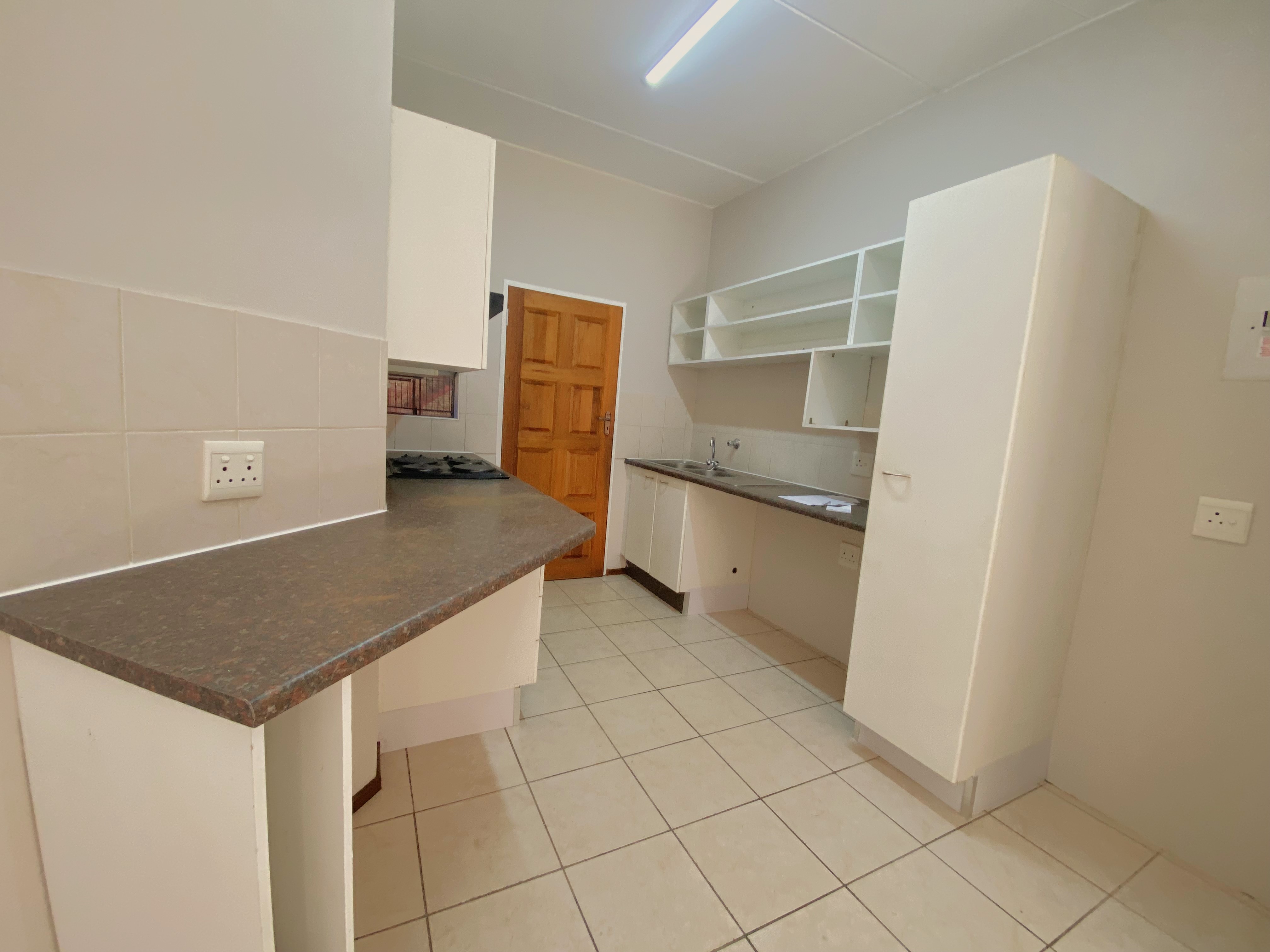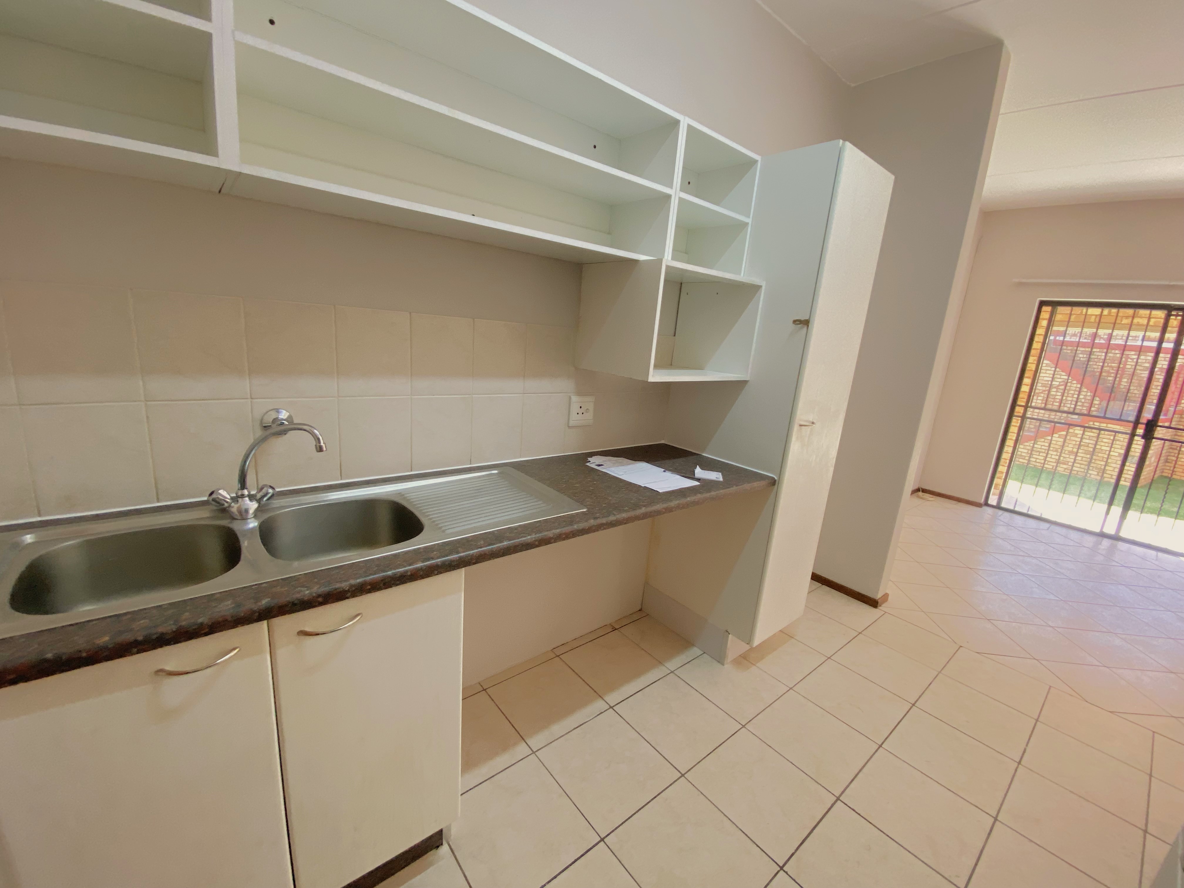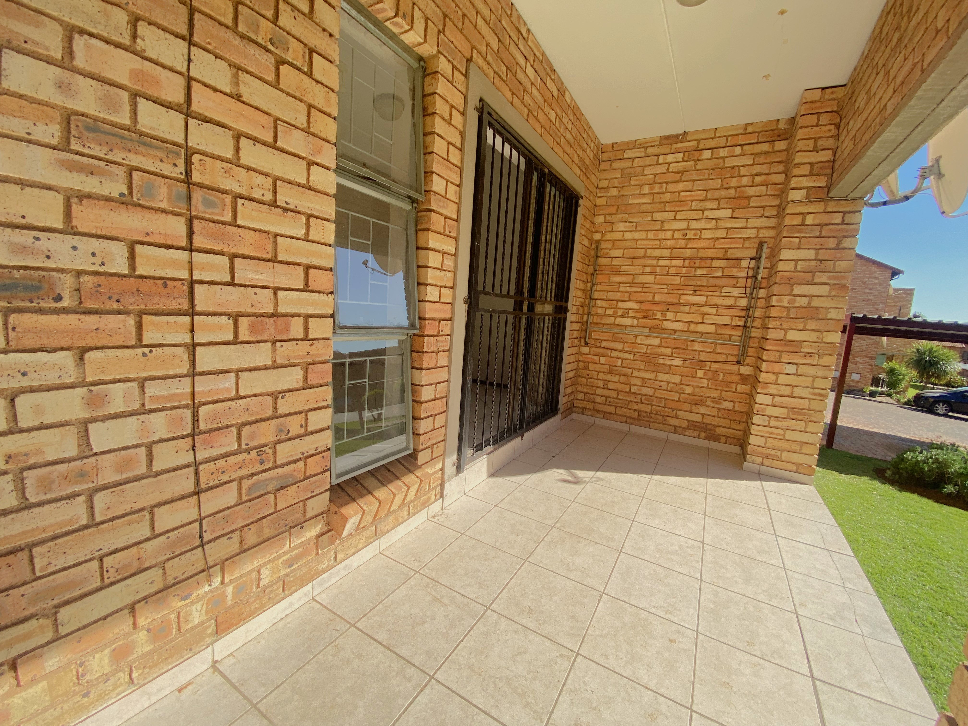 The unit entrance leads directly into the open plan kitchen with cupboards, breakfast nook and space for appliances. Spacious lounge with slider- & security door onto covered patio with washing lines.