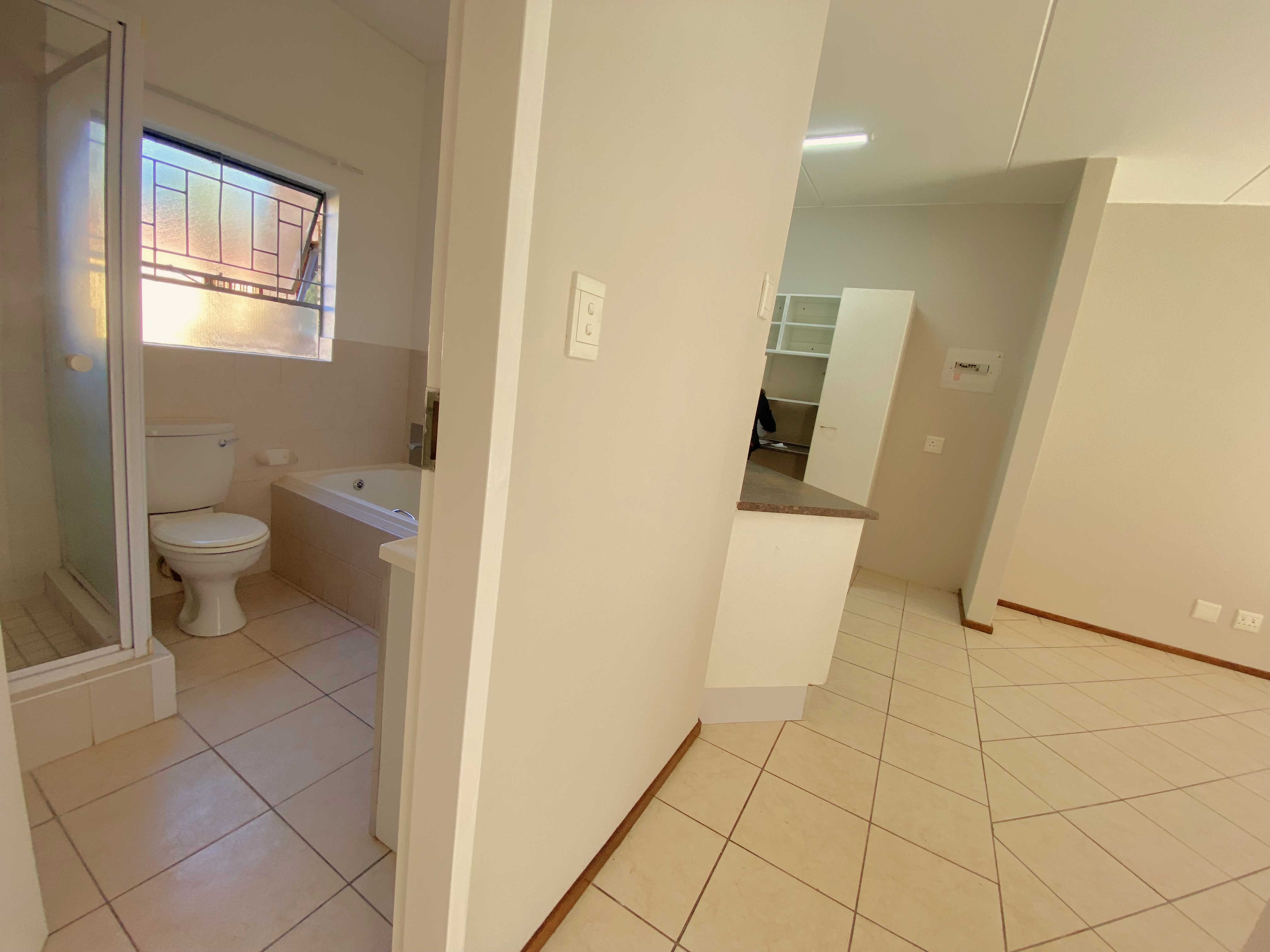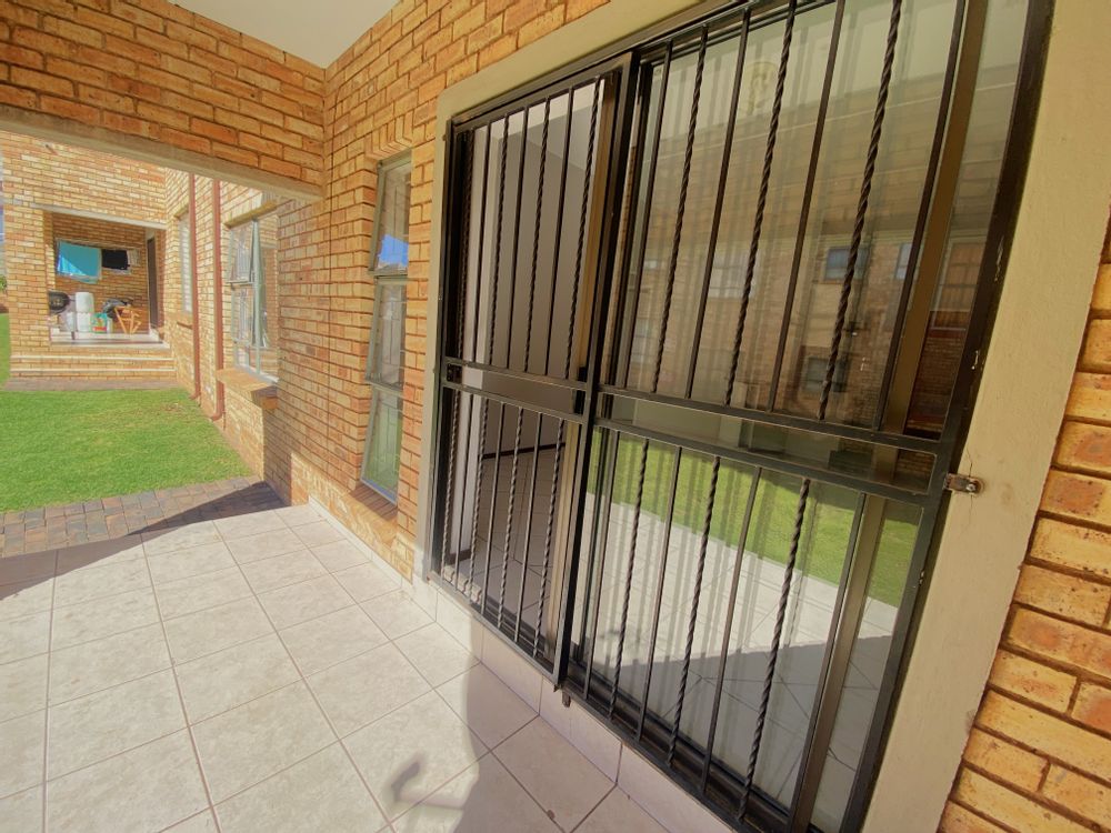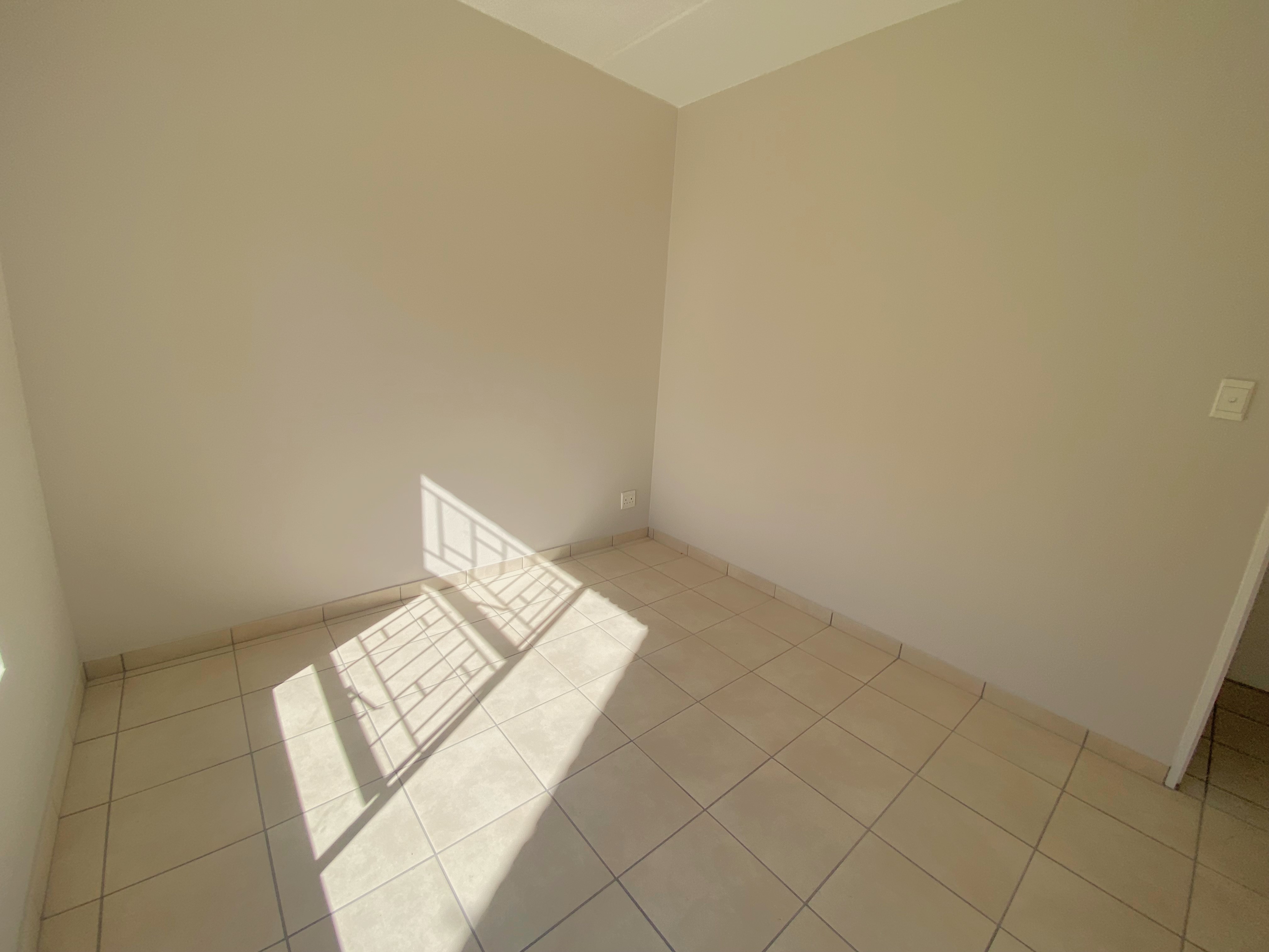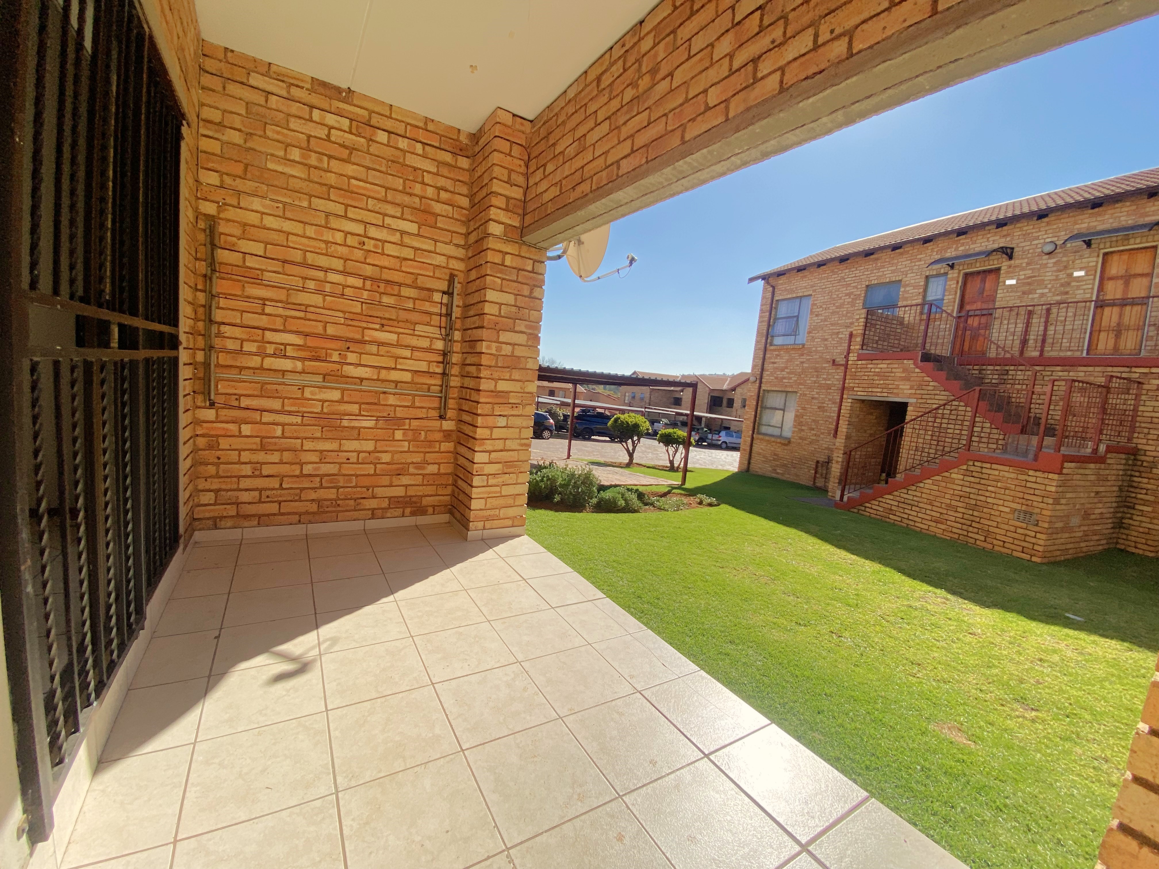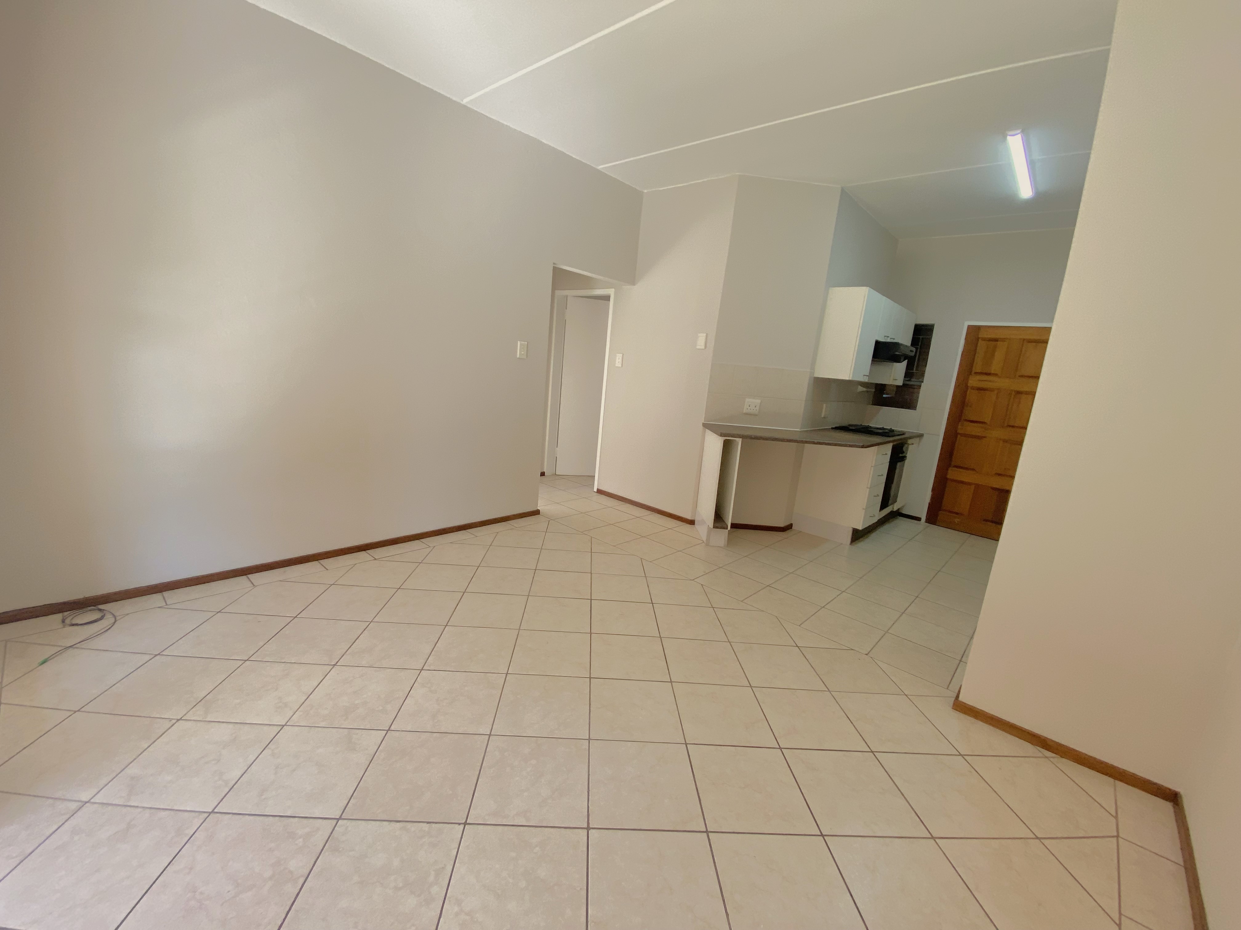 The unit entrance leads directly into the open plan kitchen with cupboards, breakfast nook and space for appliances. Spacious lounge with slider- & security door onto covered patio with washing lines.