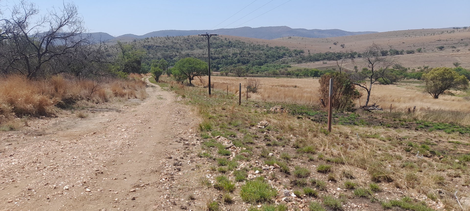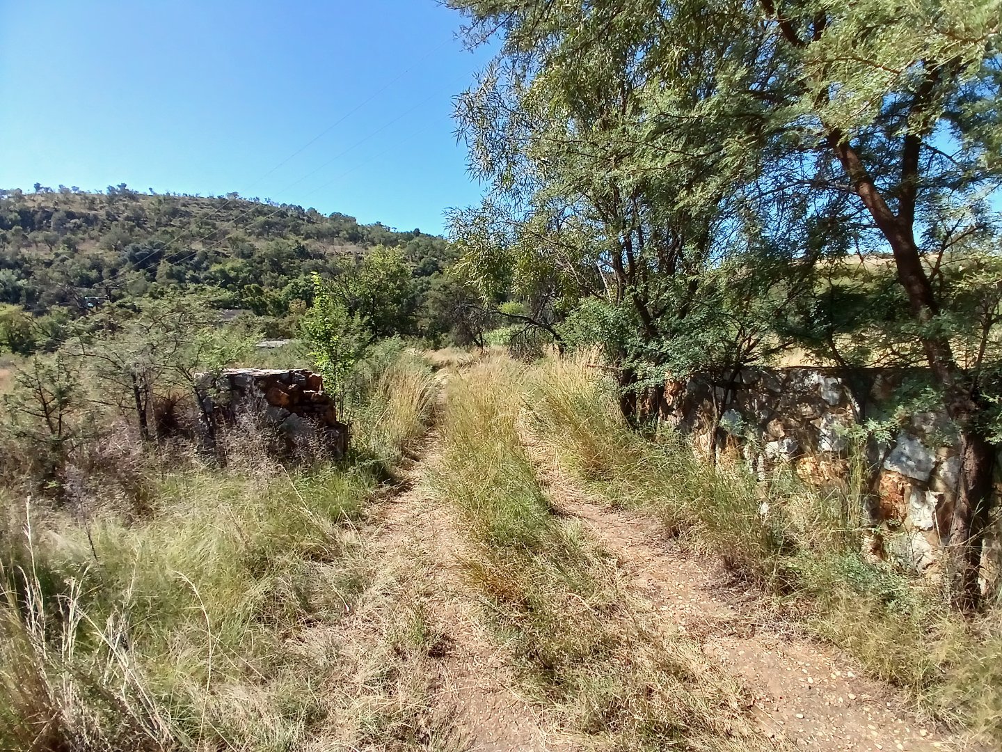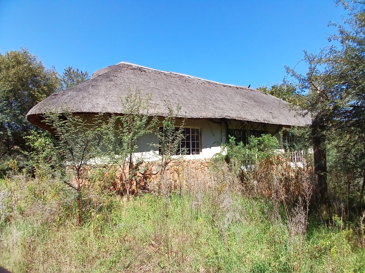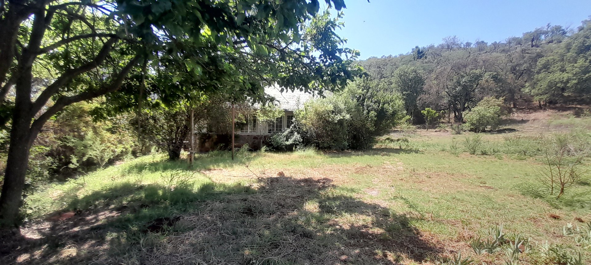 The 21 hectare property is at the end of a gravel road - very secluded. It has a large, well-treed level area and a glorious koppie, full of trees. The existing buildings are: