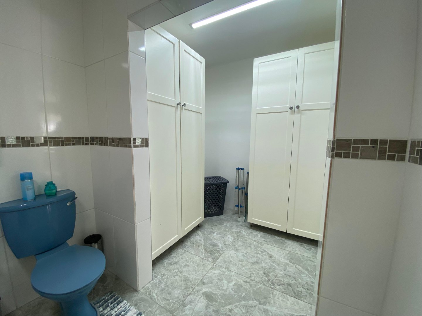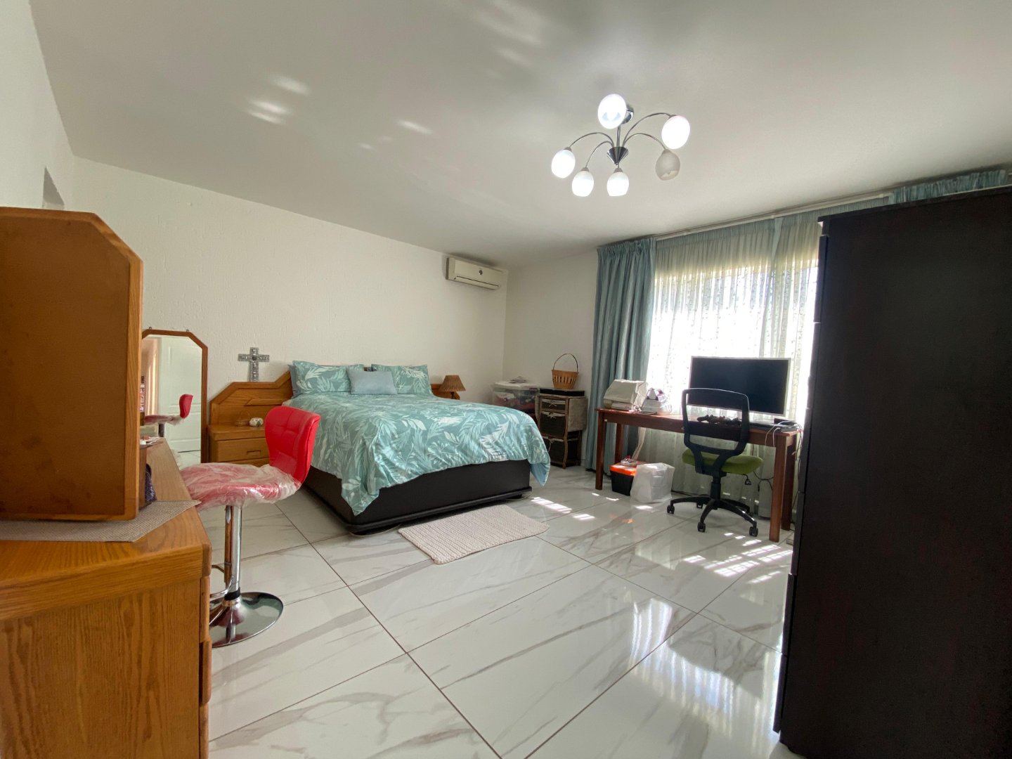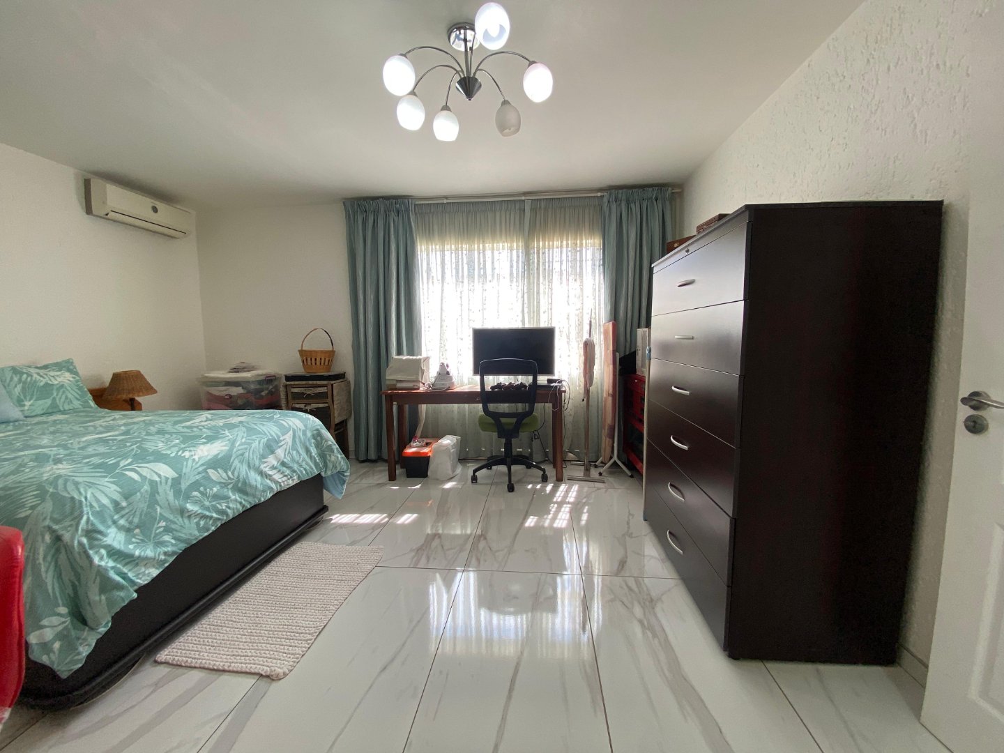 The front lawn offers ample space for children and pets to play. At the back, relax in the Jacuzzi room with a private bathroom, a storeroom, a domestic toilet, and a sparkling pool surrounded by palm trees—an entertainer’s dream.