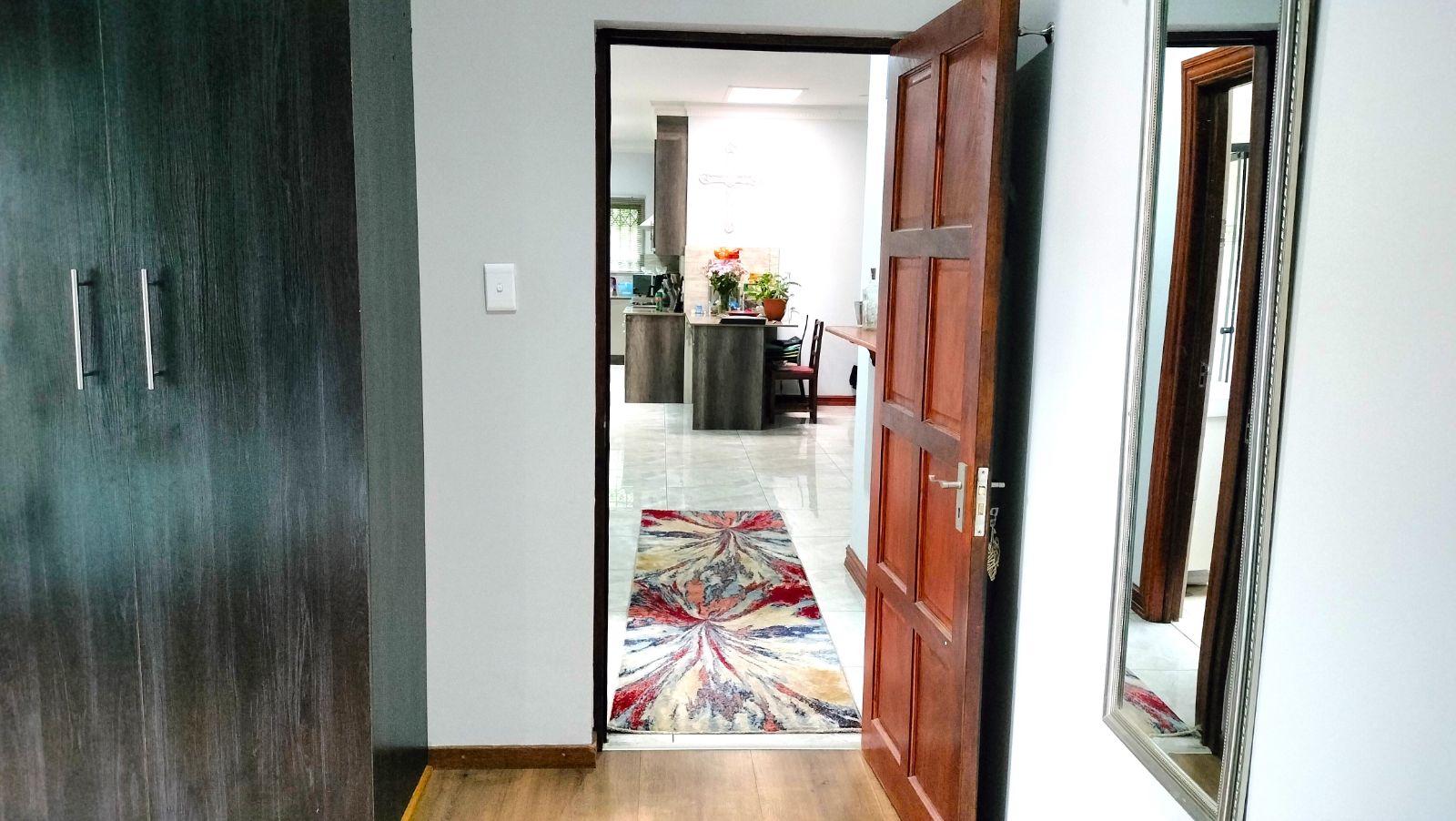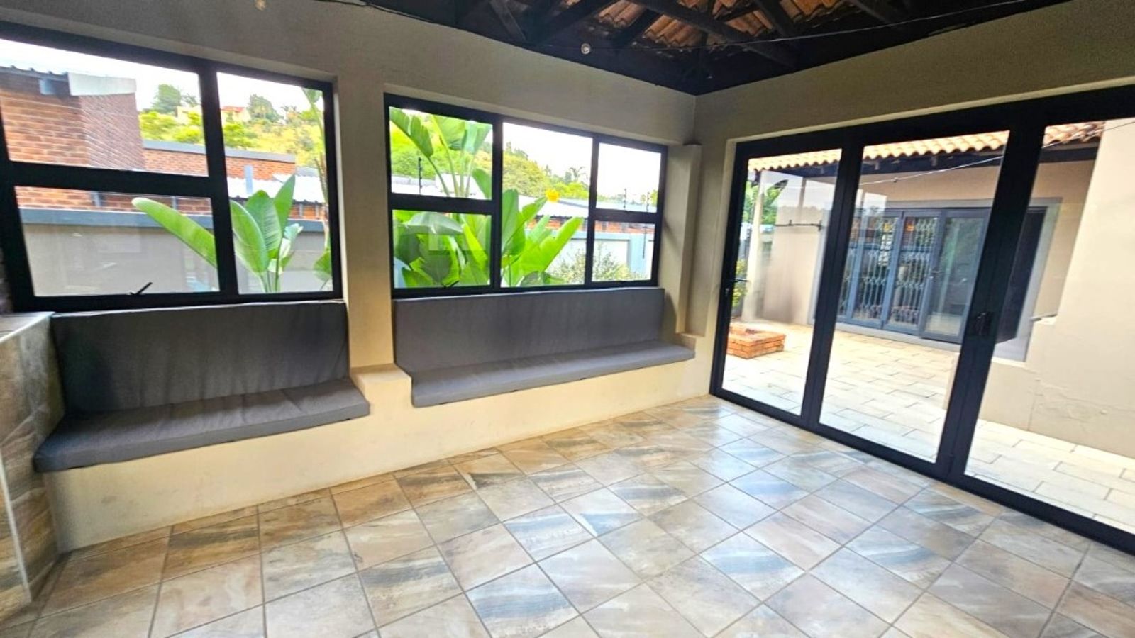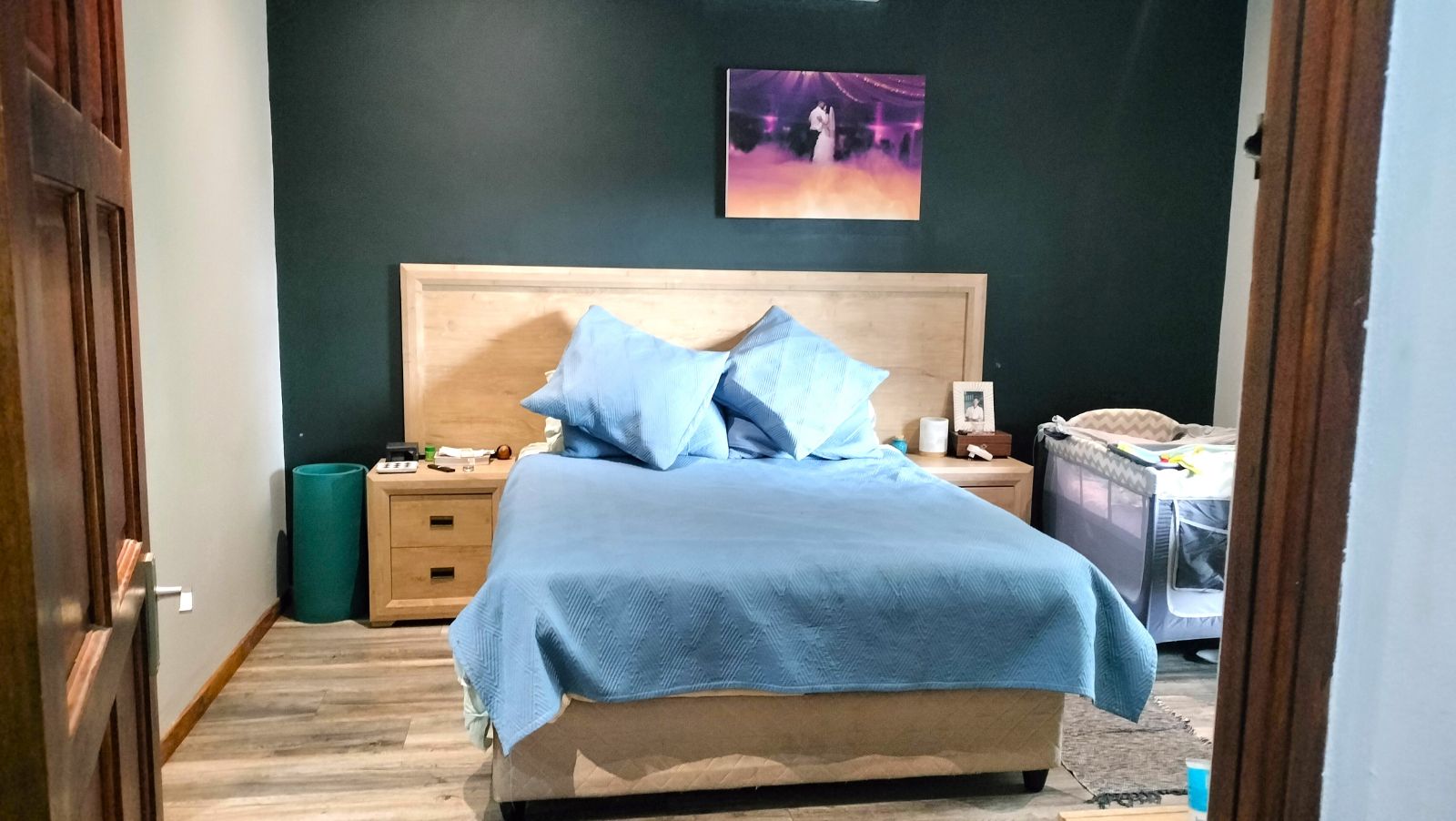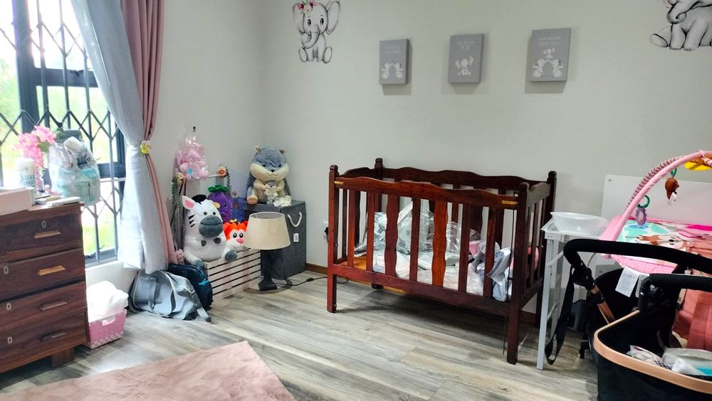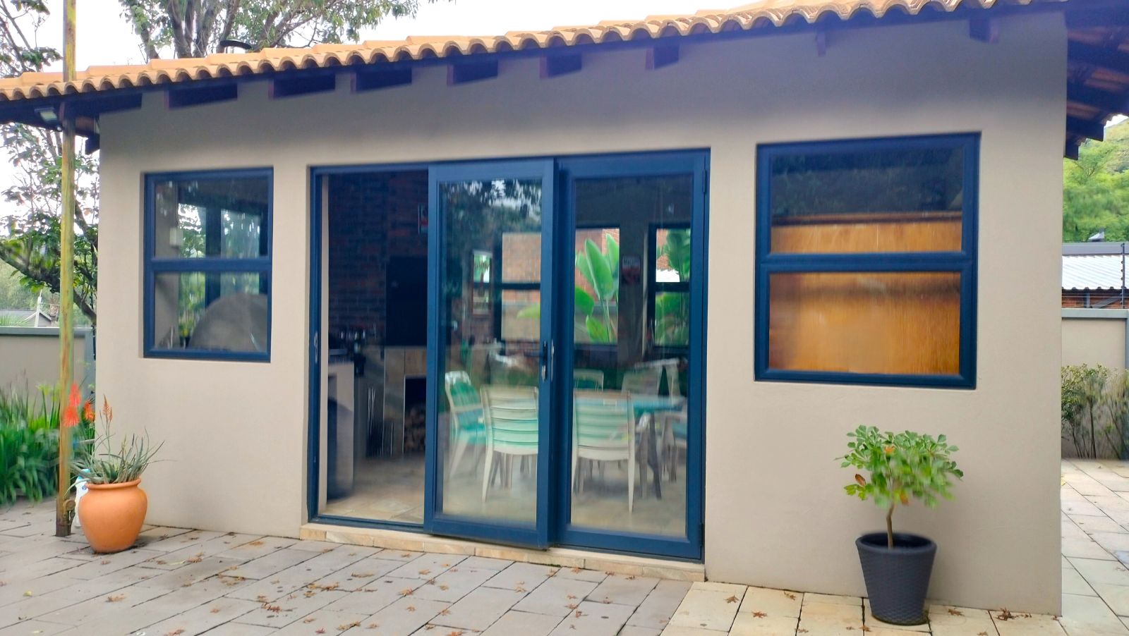 Entertain in style with an impressive indoor entertainment area that flows from the lounge. It features striking cement floors, a custom cement-built bar, and beautiful exposed wooden trusses in the ceiling. Sliding doors lead to a charming courtyard area and onward to the enclosed outdoor entertainment zone, complete with a built-in pizza oven, gas braai, and traditional braai – all overlooking a sparkling pool and a large, lush garden that’s perfect for children and pets.