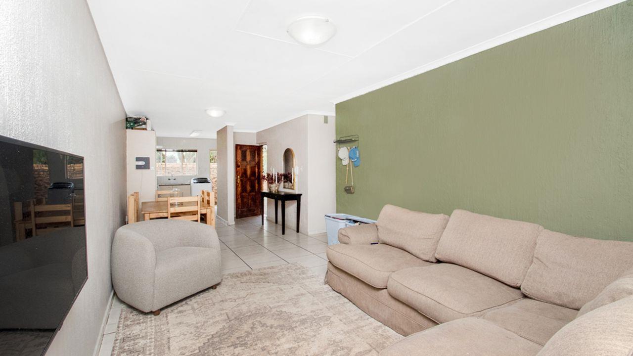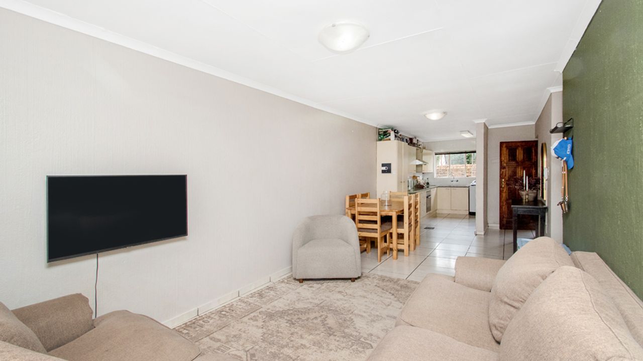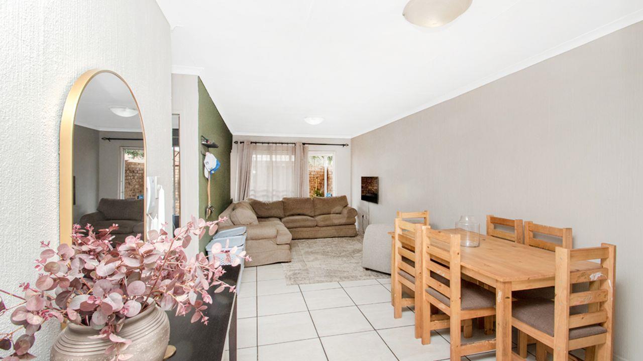 Welcome to this modern, neat, and spacious townhouse situated in the highly desirable Roodekrans area. This charming property boasts a generous open-plan living space, featuring a lounge, a dining area, and a beautifully upgraded kitchen.