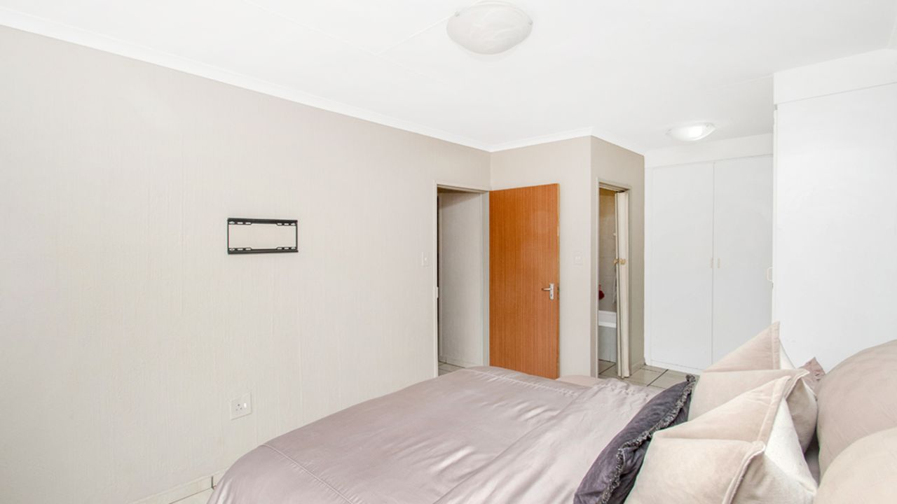 The property also includes a single garage, with ample open parking available. The complex is meticulously maintained and provides excellent security for its residents. It also offers a swimming pool area, fitted with braai facilities.