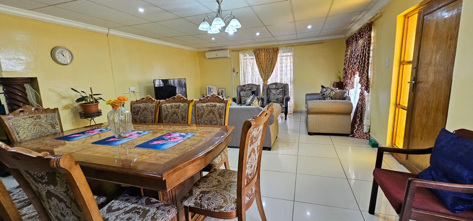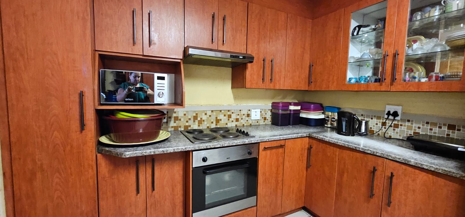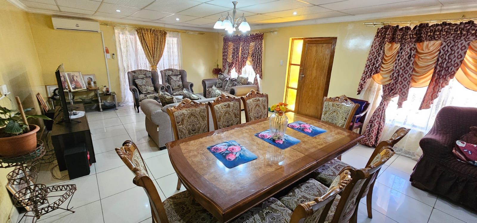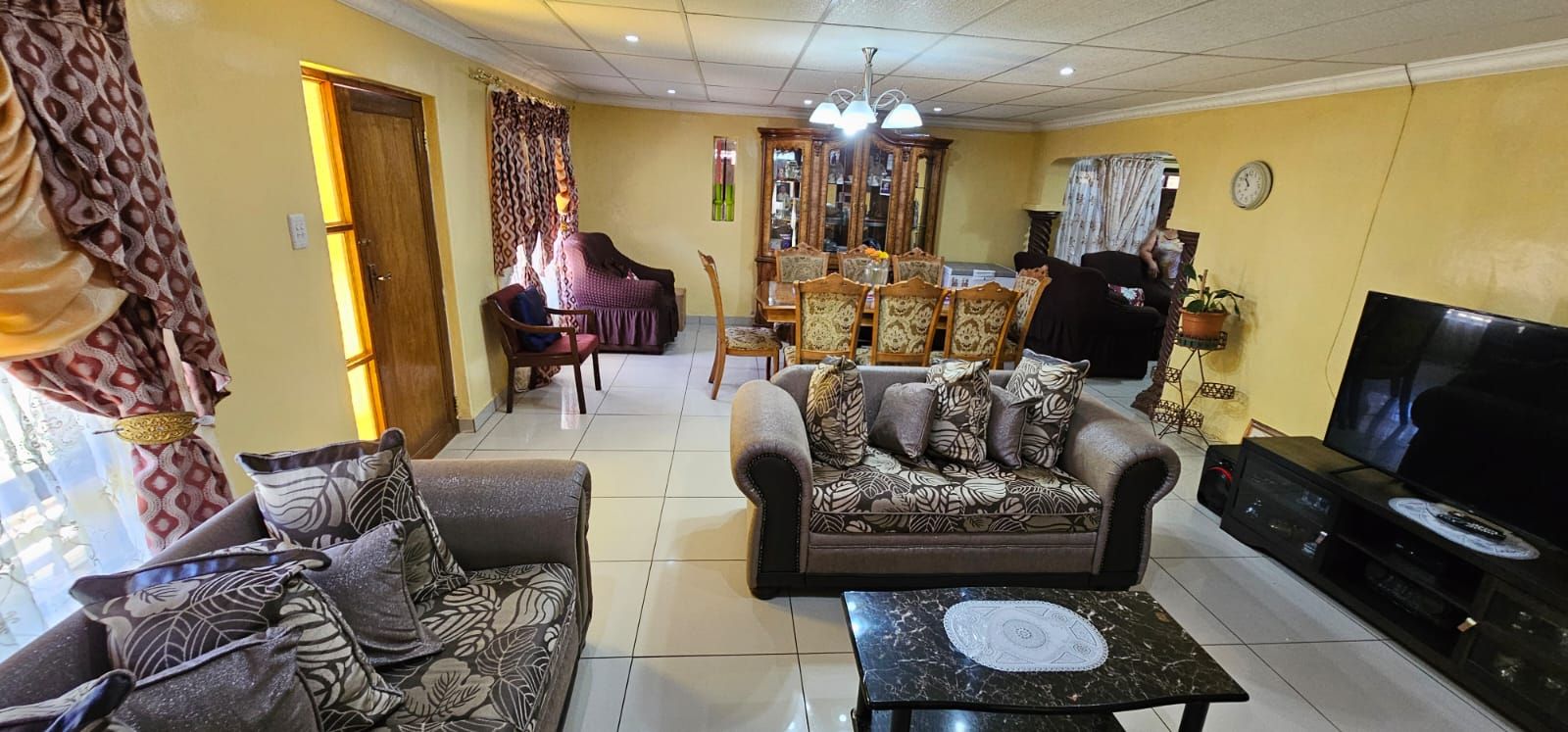This charming four-bedroom, two-bathroom family home is nestled in a well-established and sought-after neighborhood. Offering a comfortable and spacious layout, the home features a light-filled open-plan living area, combining the lounge, dining room, and family room, perfect for both relaxed living and entertaining. The modern kitchen is a true highlight, complete with built-in cupboards, an electric oven and hob, as well as an extractor fan, making meal preparation a breeze.
