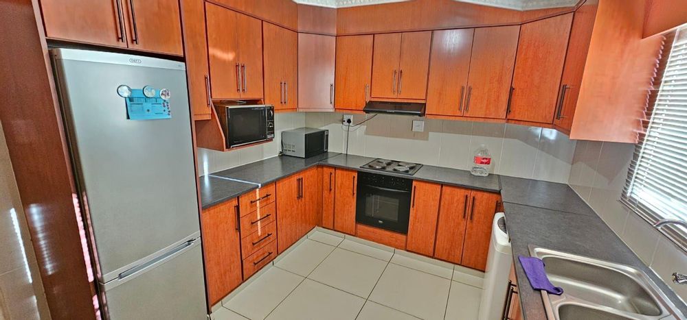 The inviting lounge offers a cozy space to relax and unwind, while the well-equipped kitchen boasts built-in cupboards, an under-counter oven with hob, and an extractor fan – making meal preparation a pleasure.