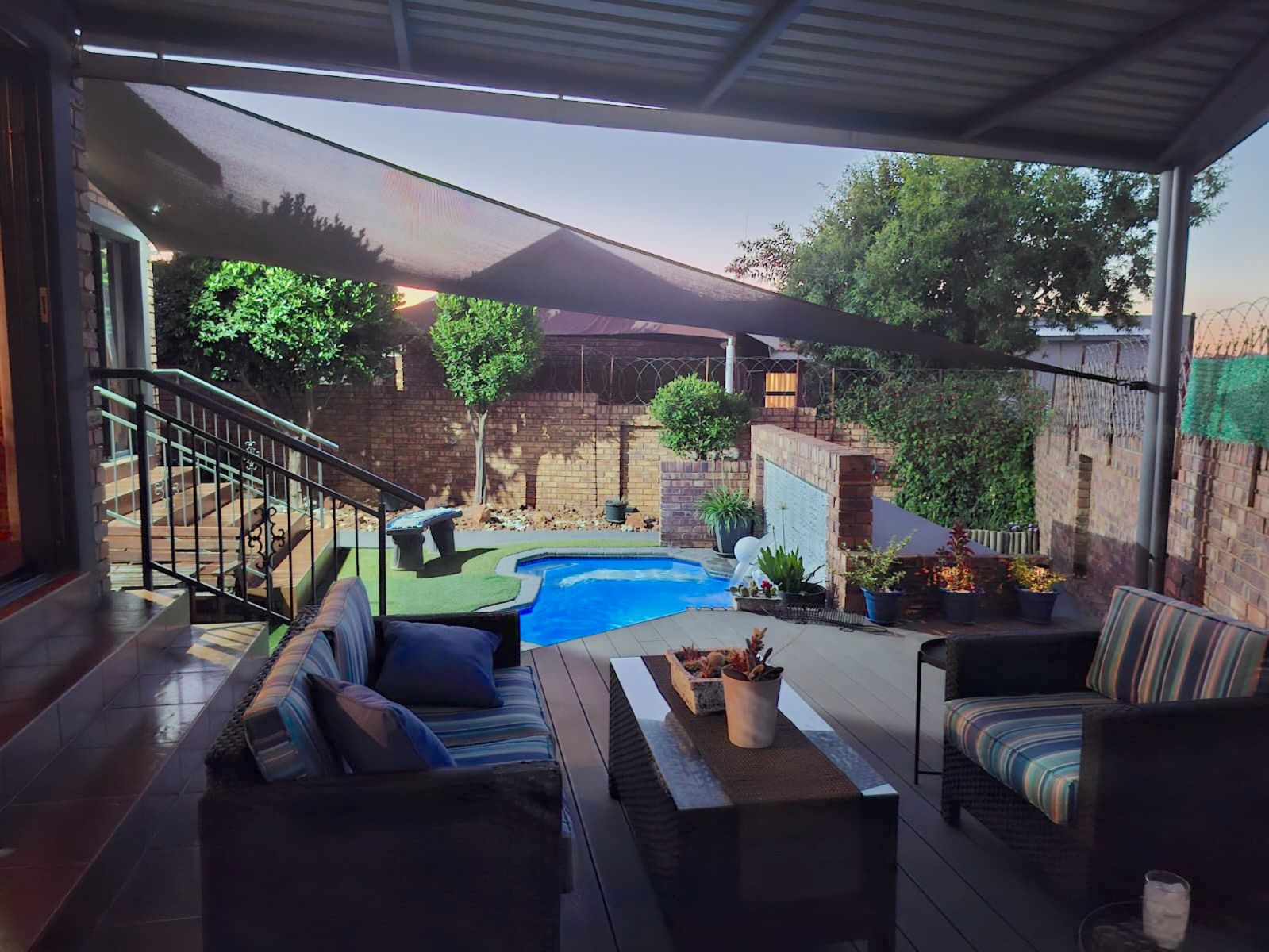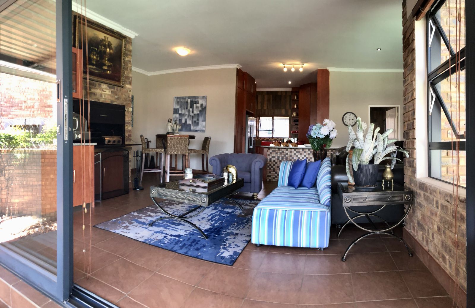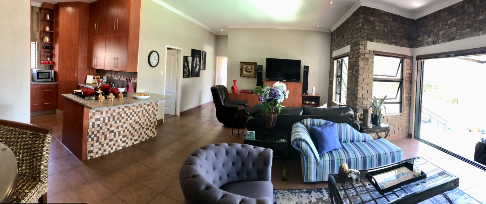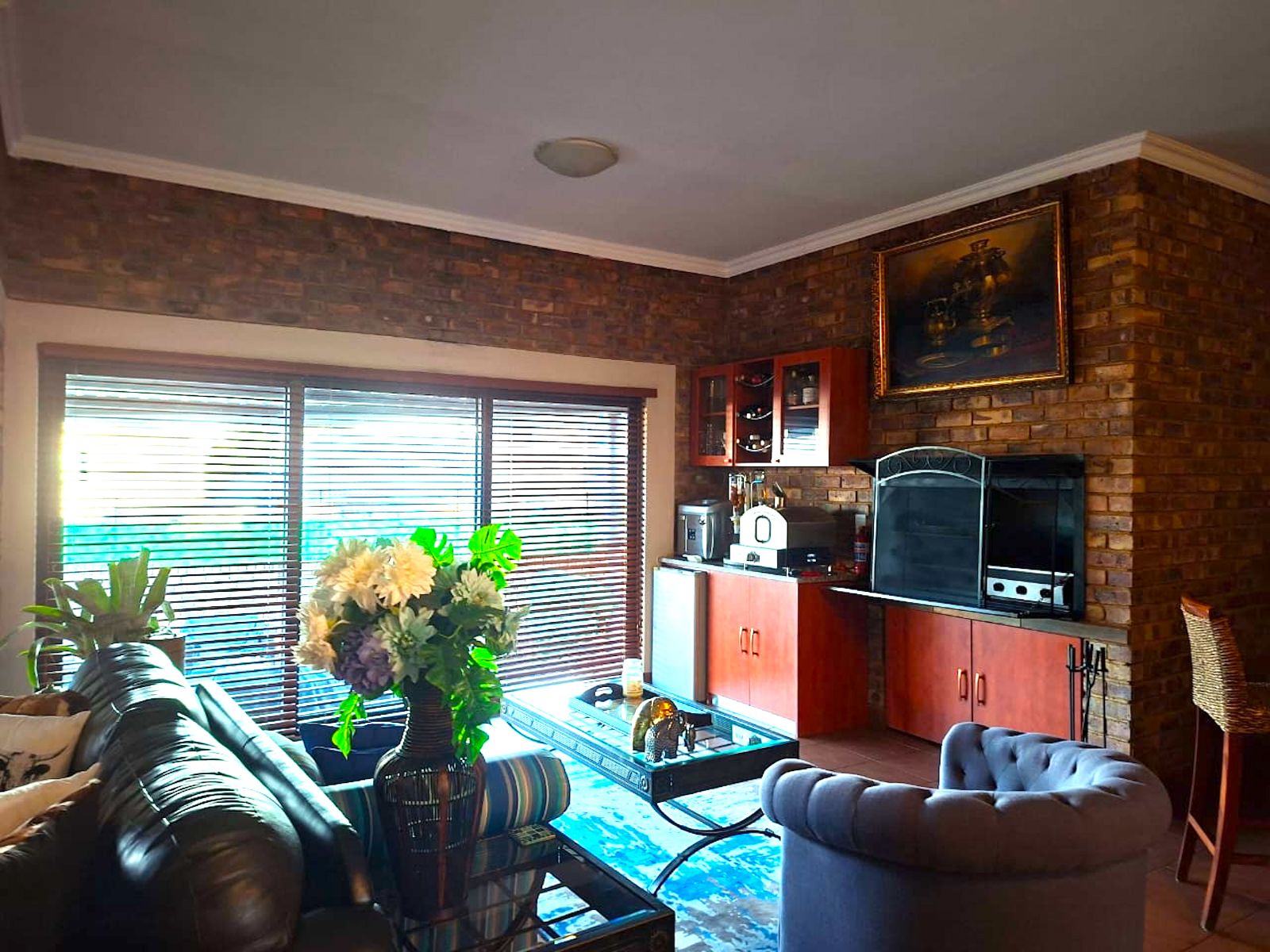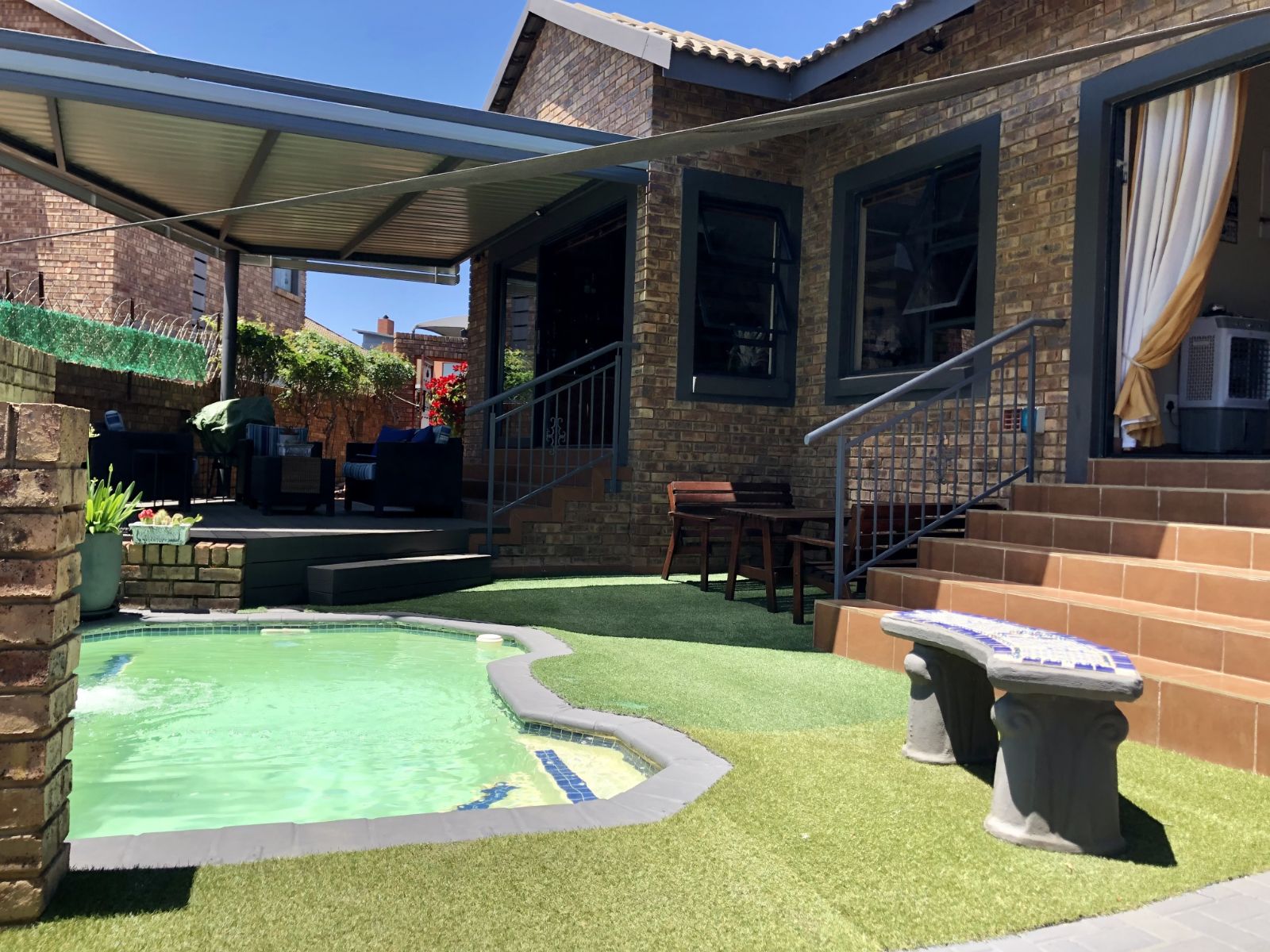 From the moment you enter, the tranquil ambience created by the sound of flowing water welcomes you. The deck overlooking the pool invites you to pause and want to stay. Large sliding doors connects the deck seamlessly with the open plan lounge-dining-indoor braai area, which further leads into the kitchen. To the side, where the 3rd bedroom would have been (and can easily be re-created), is the TV room which forms part of the greater open plan area. By optimising the space, a perfect environment has been created for entertaining guests and watching sports together.