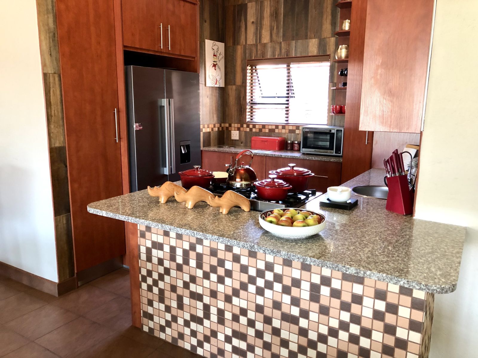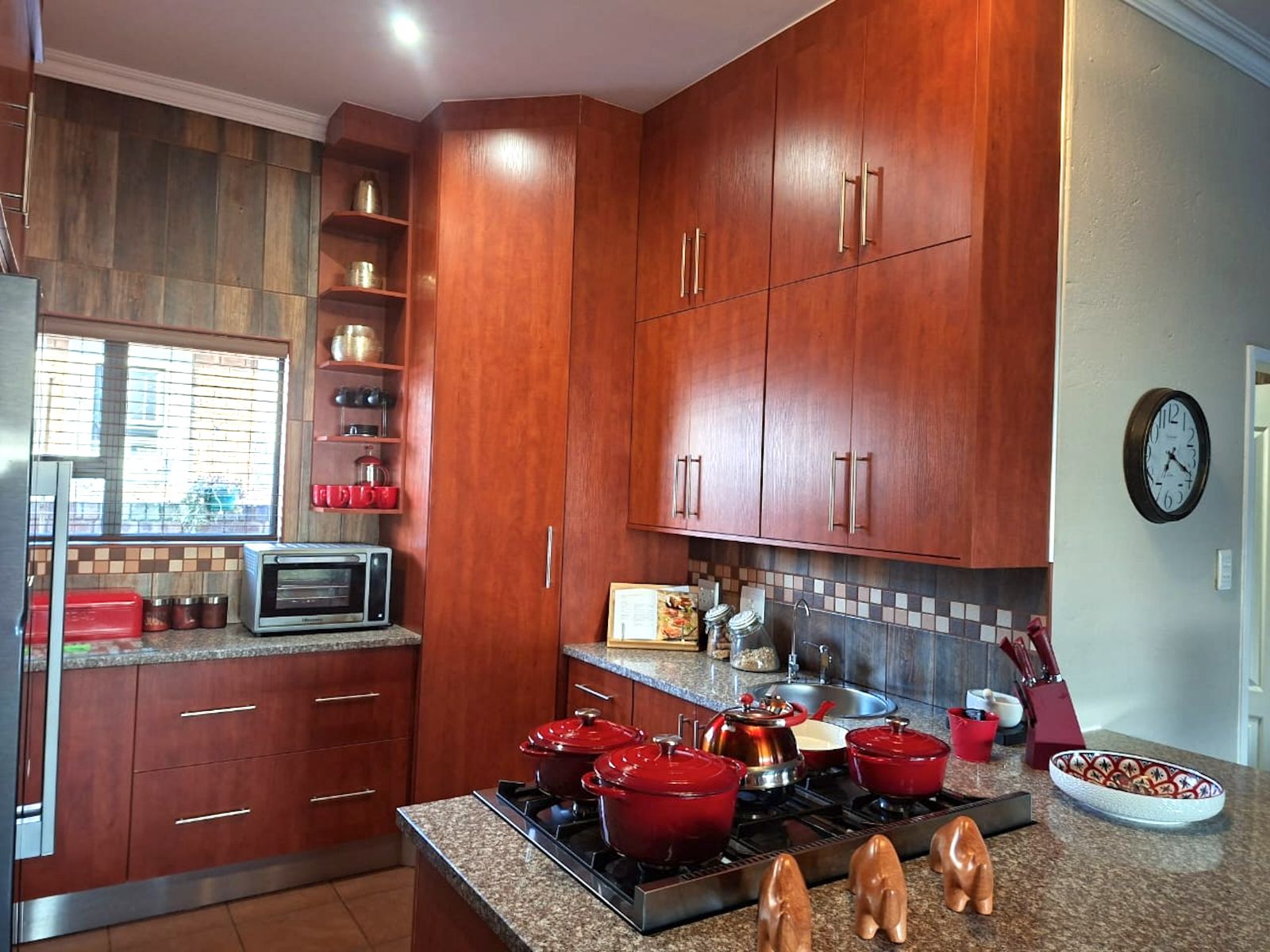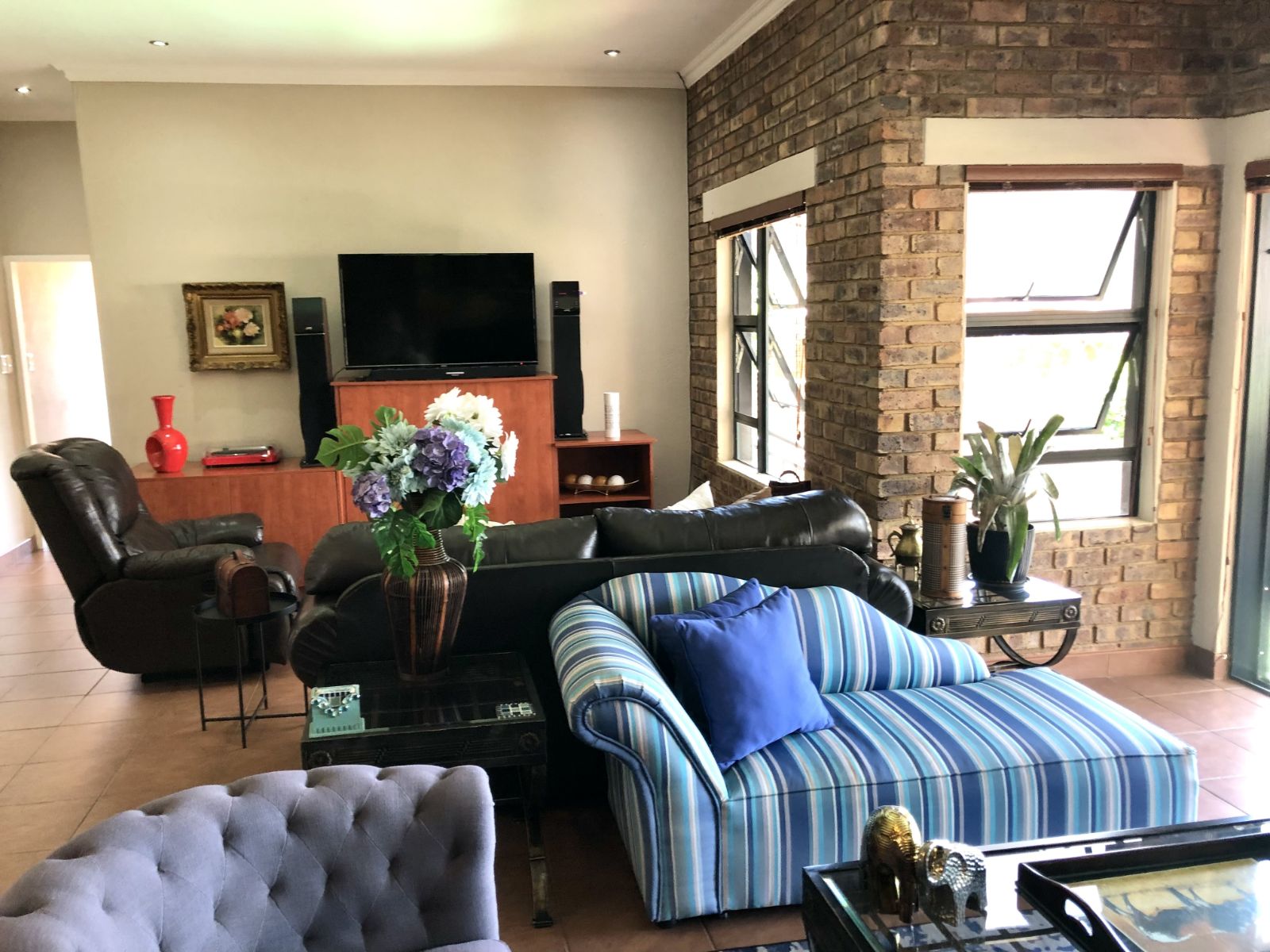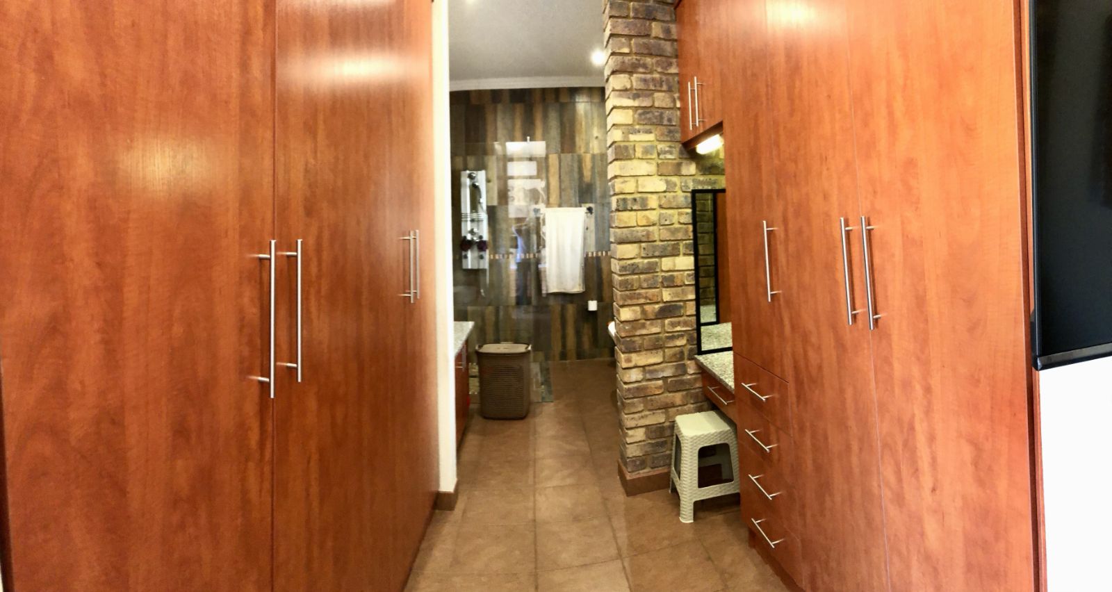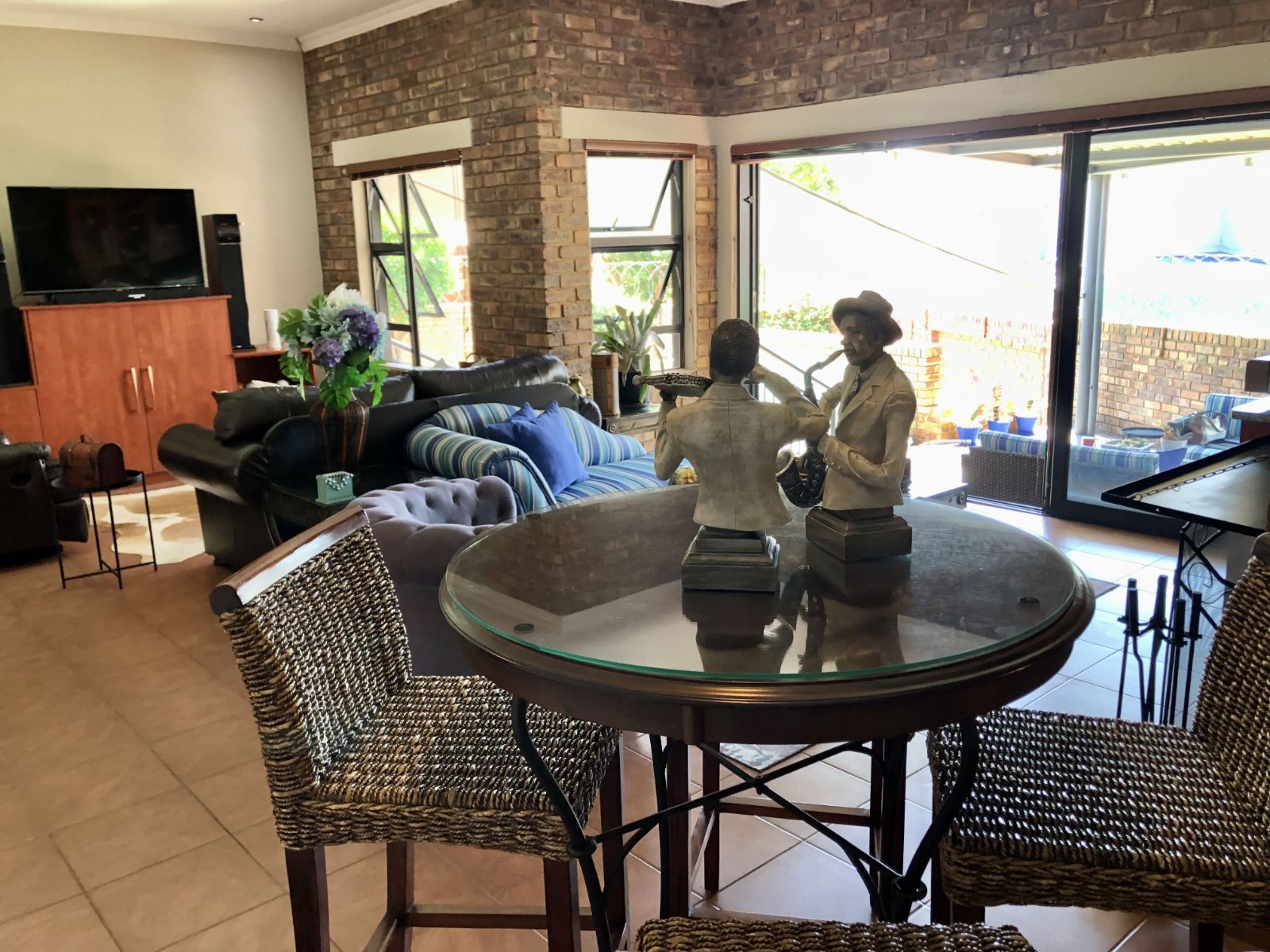 From the moment you enter, the tranquil ambience created by the sound of flowing water welcomes you. The deck overlooking the pool invites you to pause and want to stay. Large sliding doors connects the deck seamlessly with the open plan lounge-dining-indoor braai area, which further leads into the kitchen. To the side, where the 3rd bedroom would have been (and can easily be re-created), is the TV room which forms part of the greater open plan area. By optimising the space, a perfect environment has been created for entertaining guests and watching sports together.