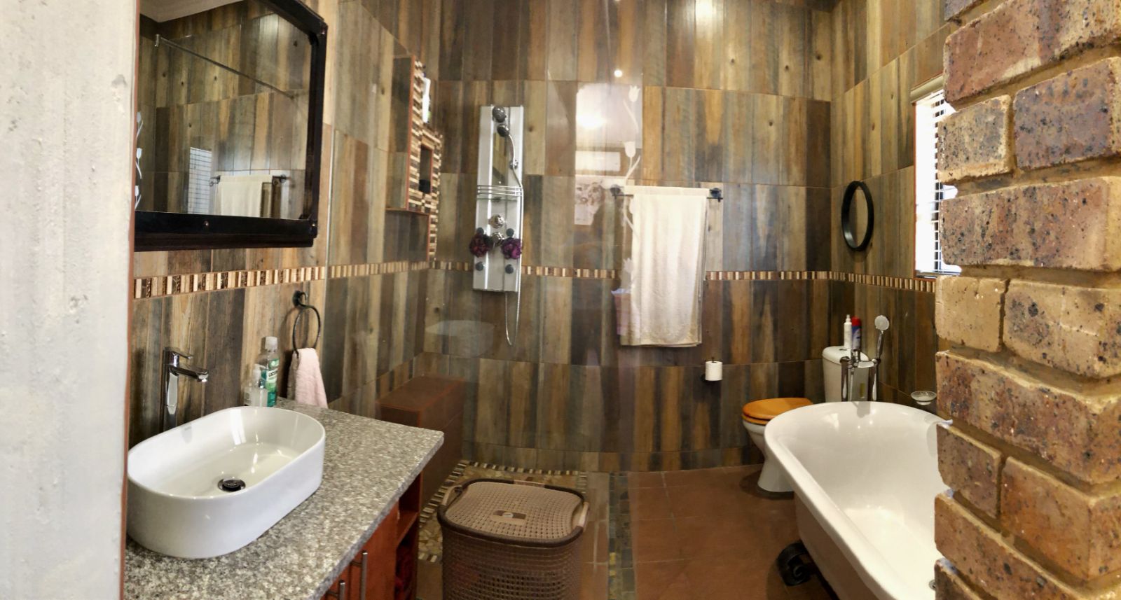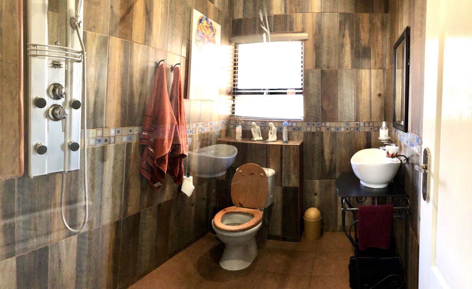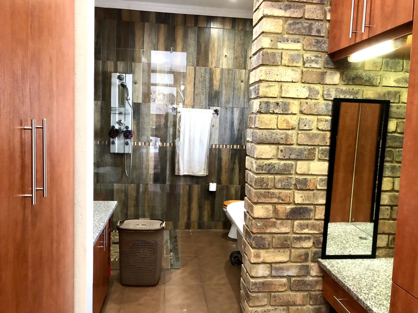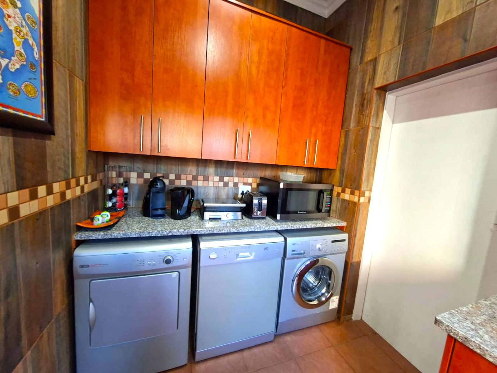 - Floor to ceiling tiles in kitchen and bathrooms
