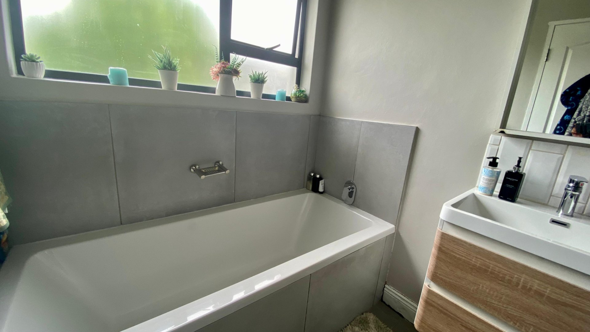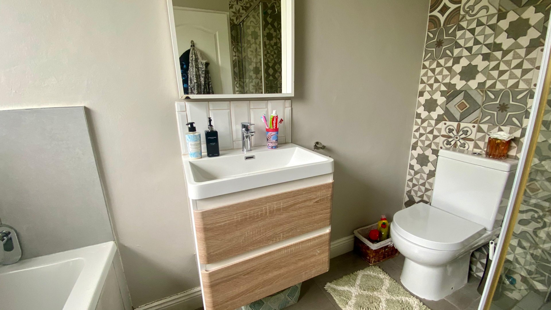 Upstairs, the main bedroom offers a luxurious en-suite bathroom and generous cupboard space, while two additional bedrooms share a modern family bathroom. A guest toilet is conveniently located on the ground floor, and the home includes a double garage for secure parking.