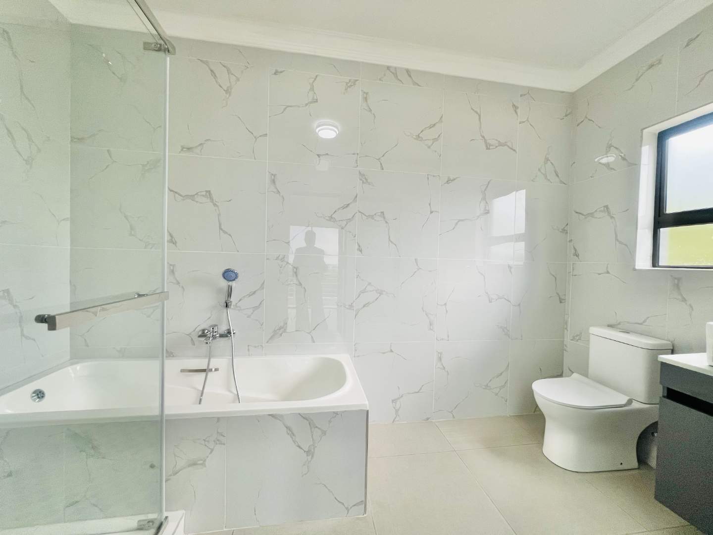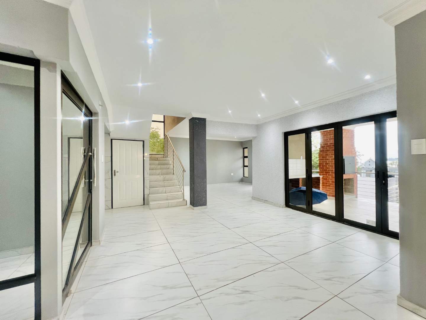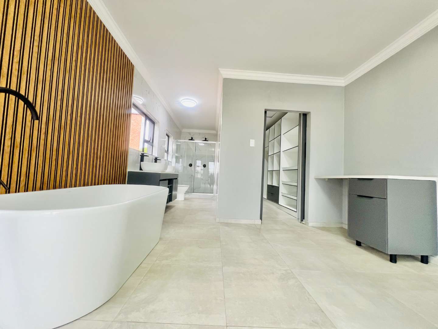 Step into contemporary luxury with this brand-new home set in a secure eco estate with free-roaming wildlife and premium lifestyle amenities. The light-filled open-plan design includes two spacious lounges, a modern kitchen with scullery, a downstairs bedroom with a full bathroom, and seamless flow to the built-in braai area and jacuzzi—perfect for relaxed entertaining.