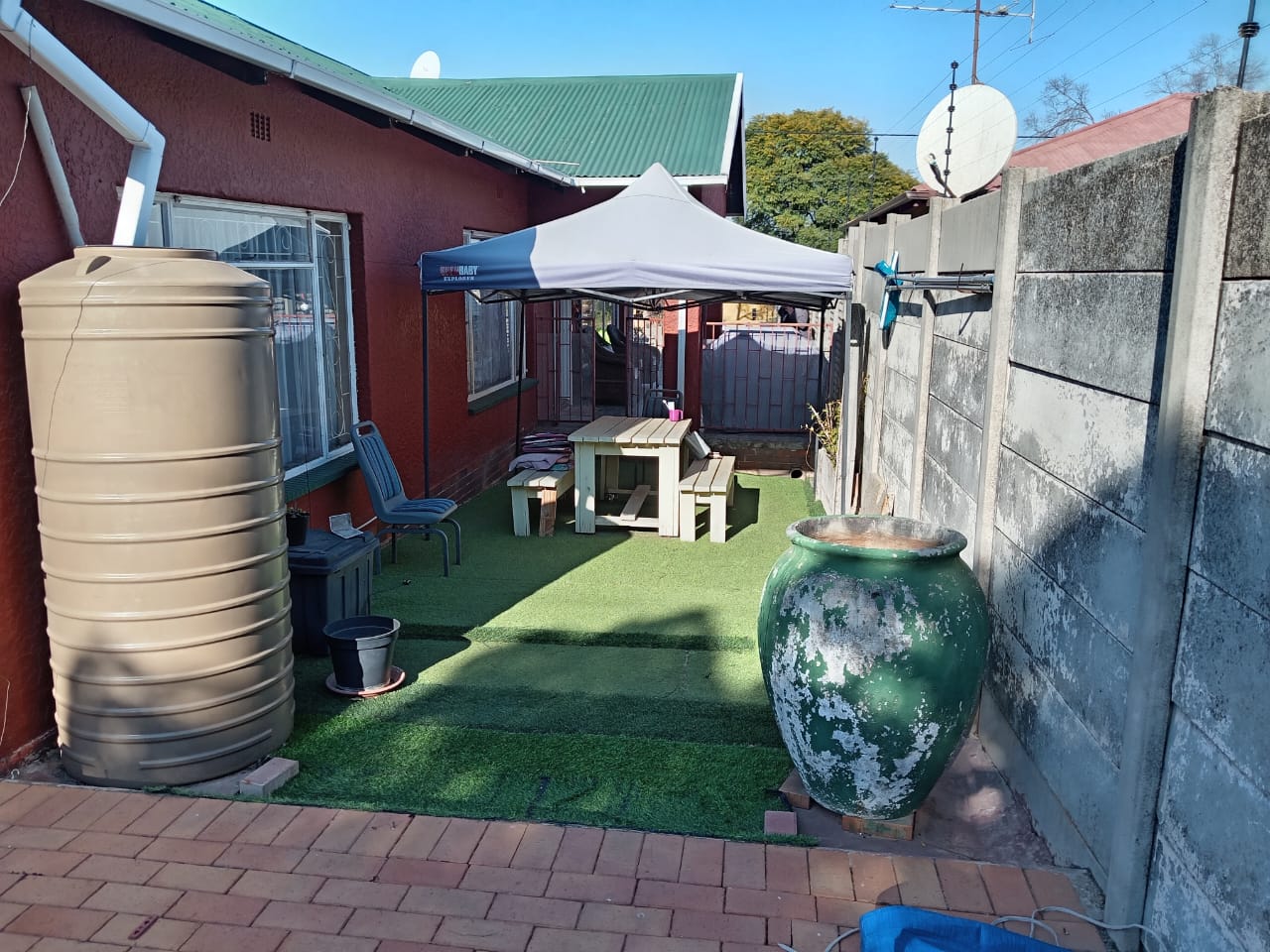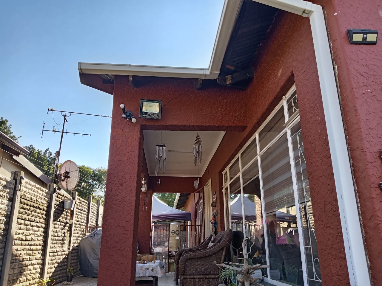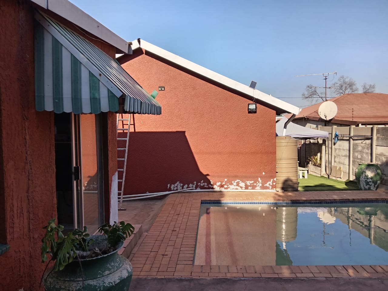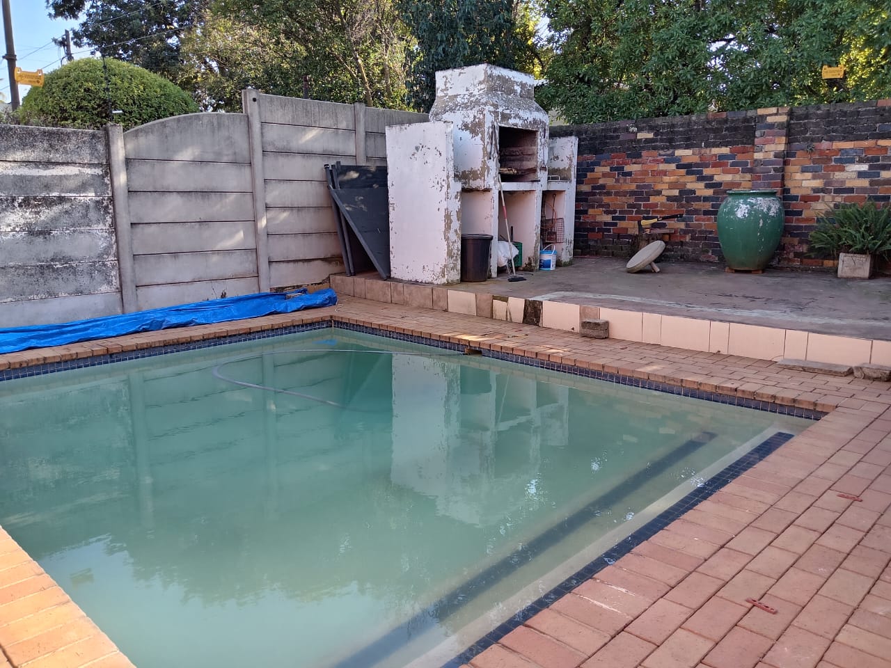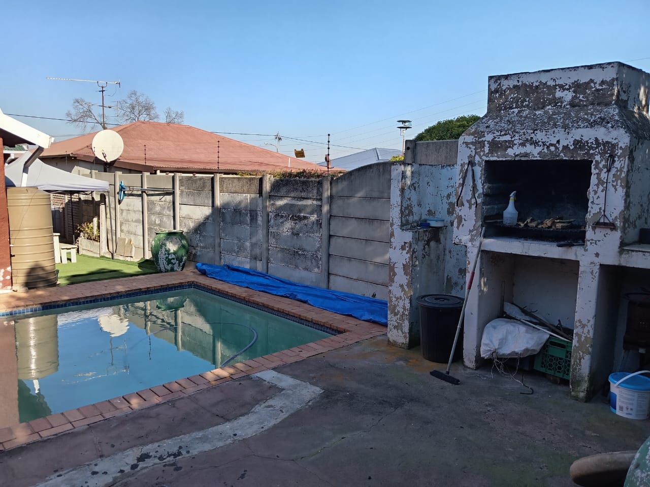 outside is a private swimming pool for you to unwind, complemented by a dedicated relaxing area perfect for lounging, a built in braai area for your braais, hosting and guest