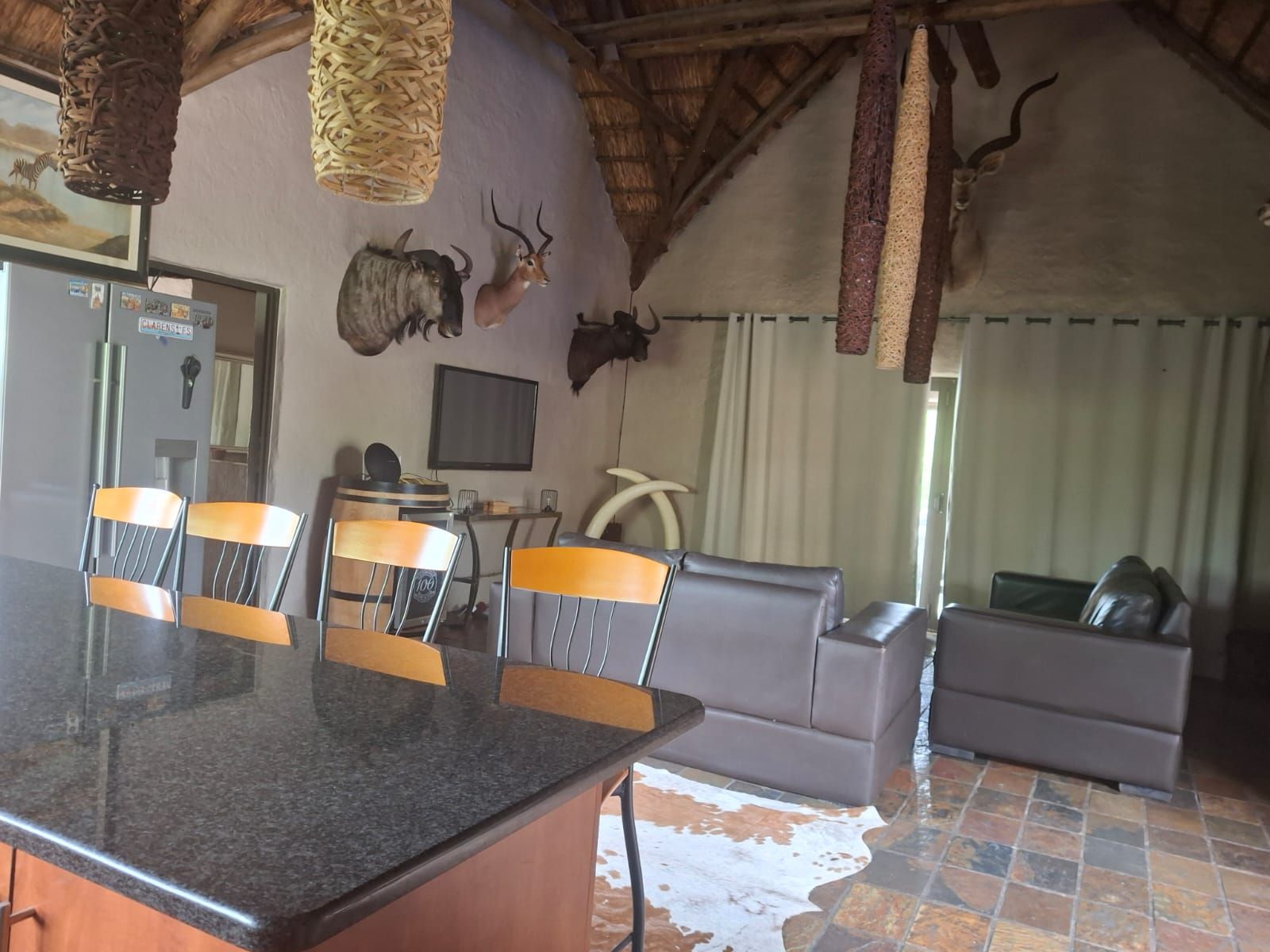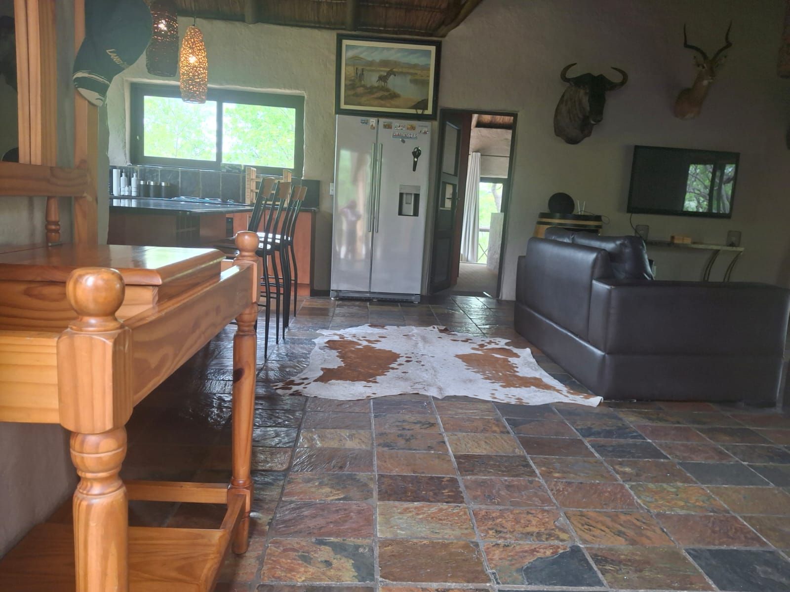 The 3 bedroom, 2 bathroom home offers an open plan flowing design with each room opening onto a patio giving an open plan flowing design leading to the patio and swimming pool. What a pleasant atmosphere for relaxing and enjoyment of the beautiful surroundings only a Bushveld farm can offers! Just imagine yourself...The Bushveld sunset...a log fire...the perfect get away from a busy and stressful lifestyle.