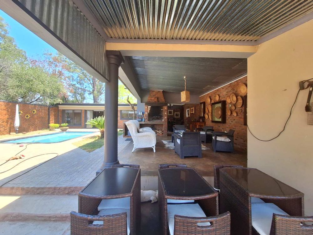 Step outside to discover an entertainment paradise. Enjoy a lush garden oasis complete with an invigorating swimming pool, an outside braai boma, and a separate entertainment building. This area offers a lounge with a built-in braai, an al fresco dining room, and an outside toilet, making it perfect for hosting gatherings.