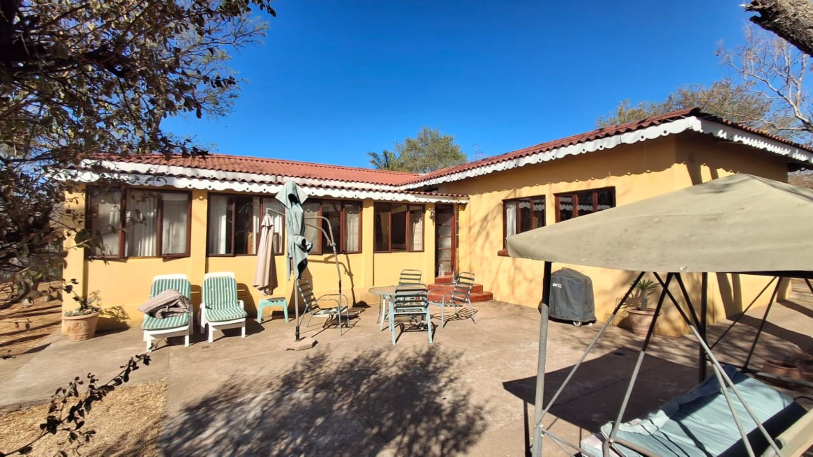 DELIGHTED to offer you a chance to slow down and simplify your life in this spacious 3 bedroom home with so much character. Apart from the 3 bedrooms, it has a study, lounge and dining room, extra built in cupboards and a real farm style kitchen with breakfast nook.. 2 Bathrooms, one inside and one outside plus a guest toilet. Outbuildings include staff accommodation and a single garage and a car port completes the picture. Enjoy lazy days and watch the real Bushveld sunset next to the sparkling pool.