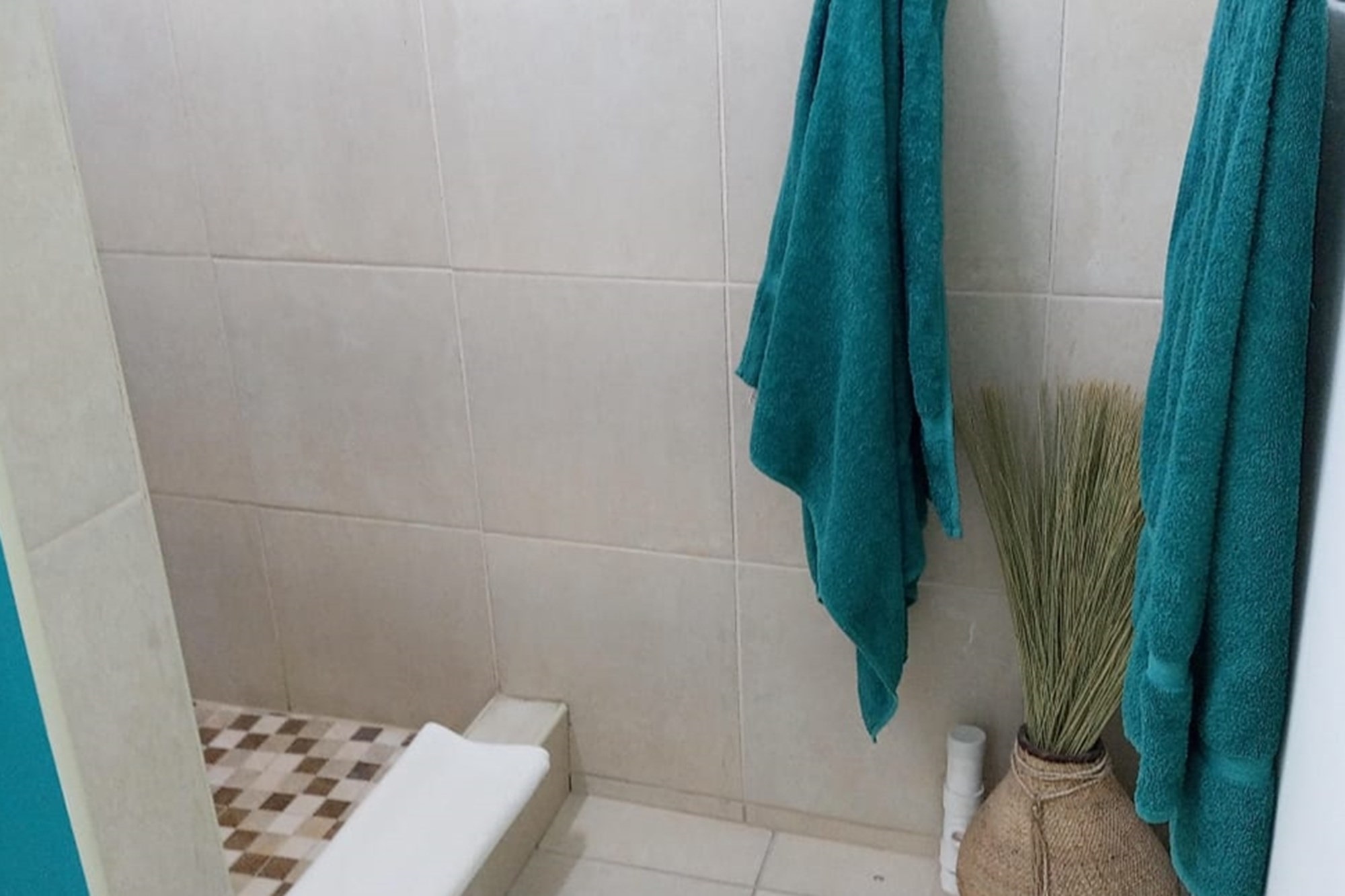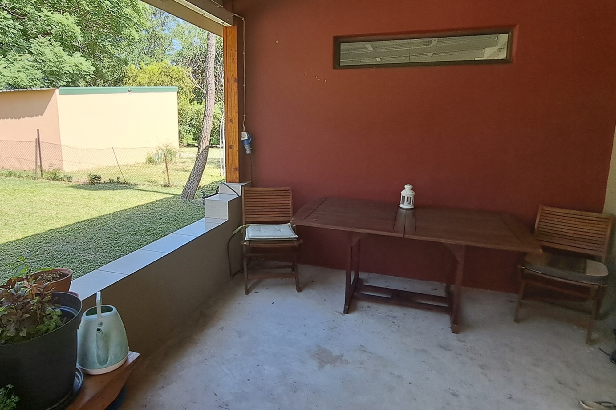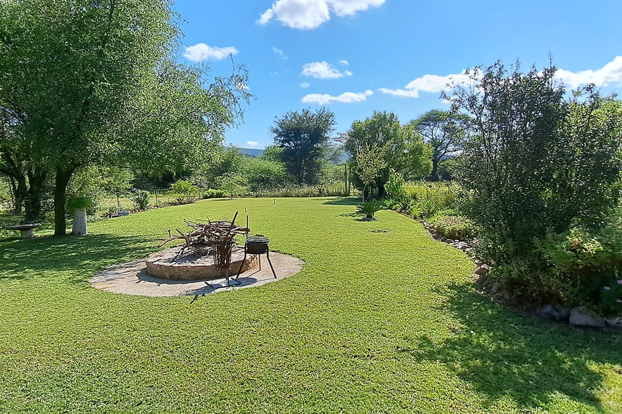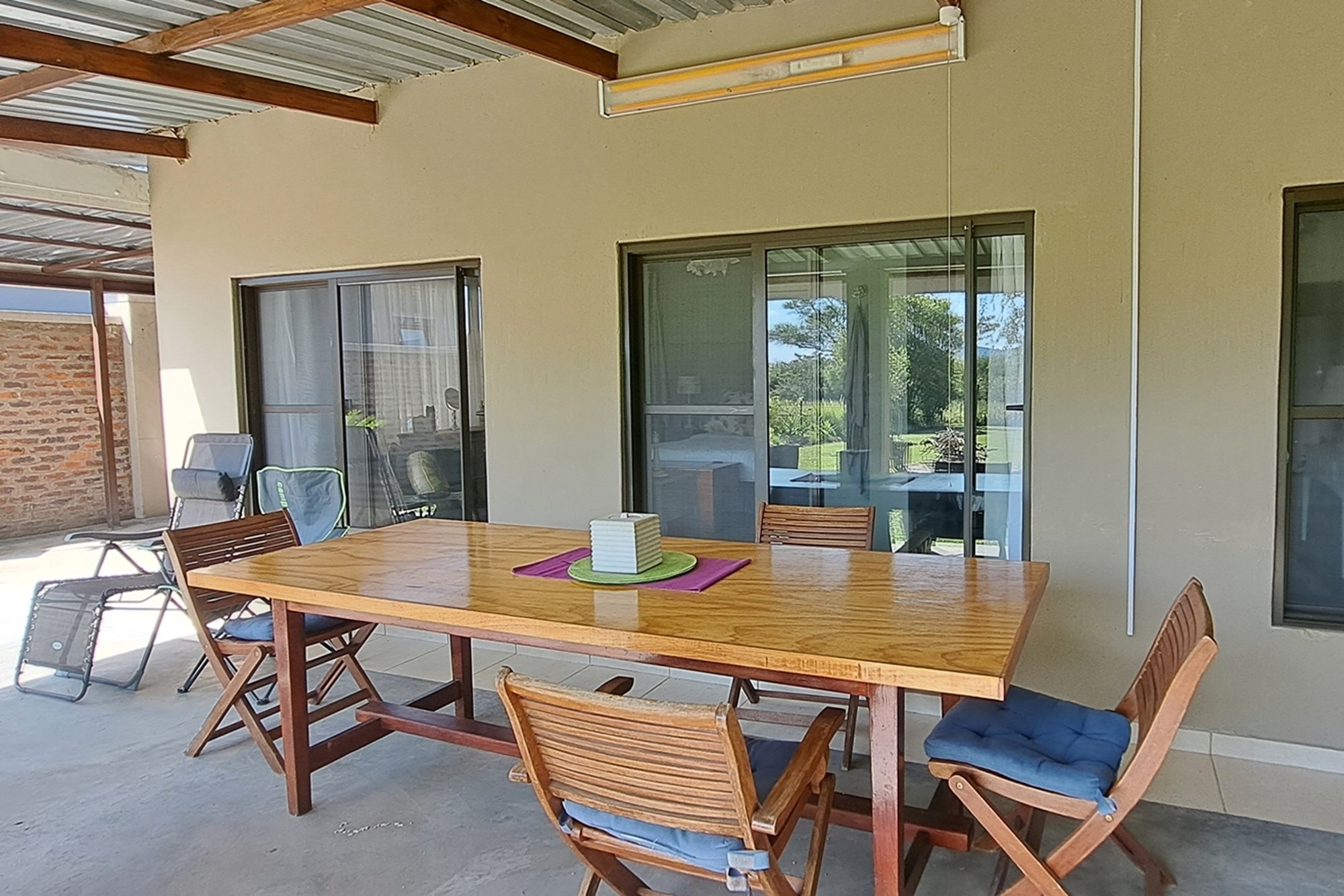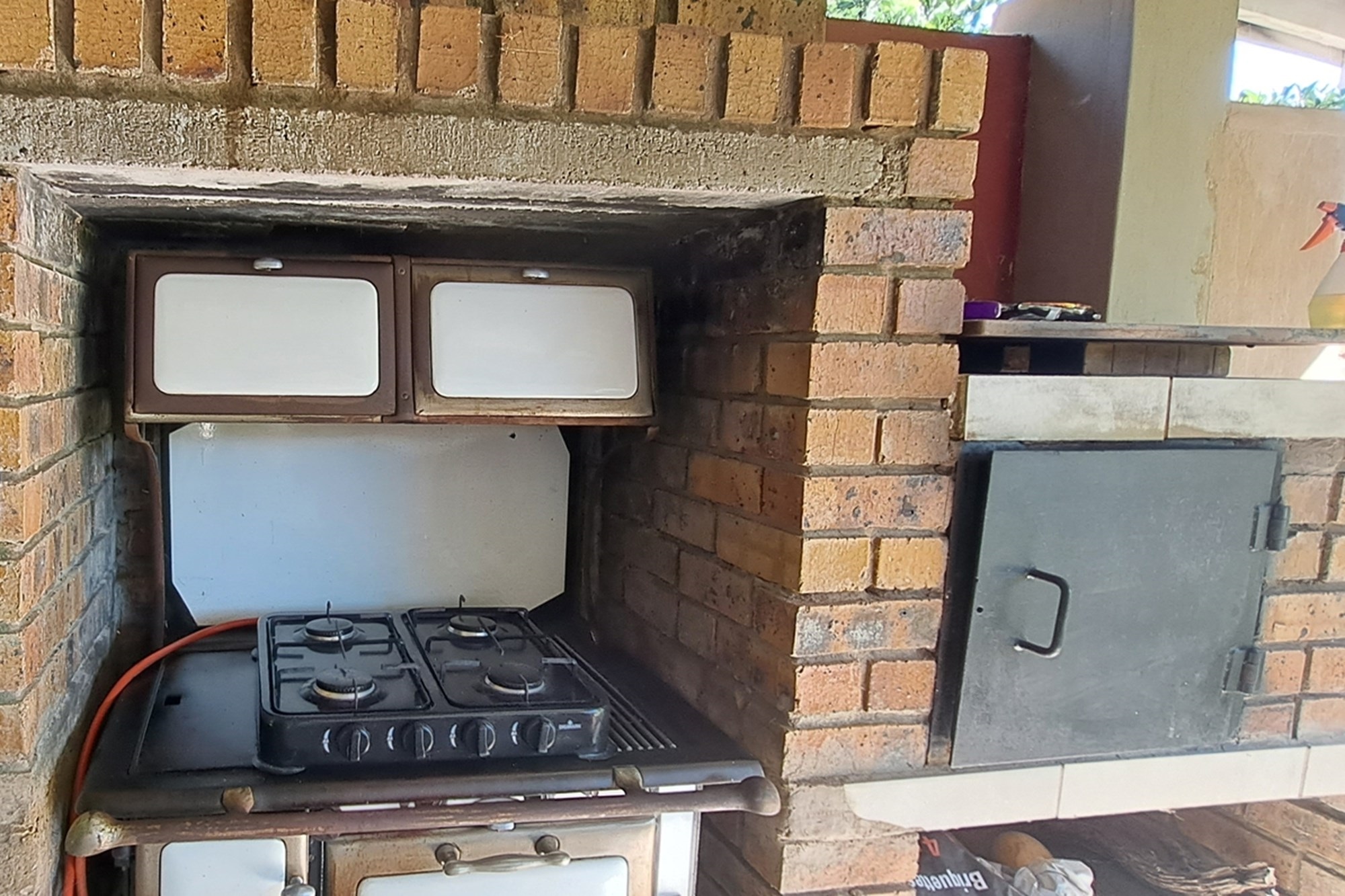 The outside underroof entertainment area with built-in braai and 4 plate gas plates, sink and enough workspace if you prefer to cook outside in nature with unparalleled views of the neighboring game farm.