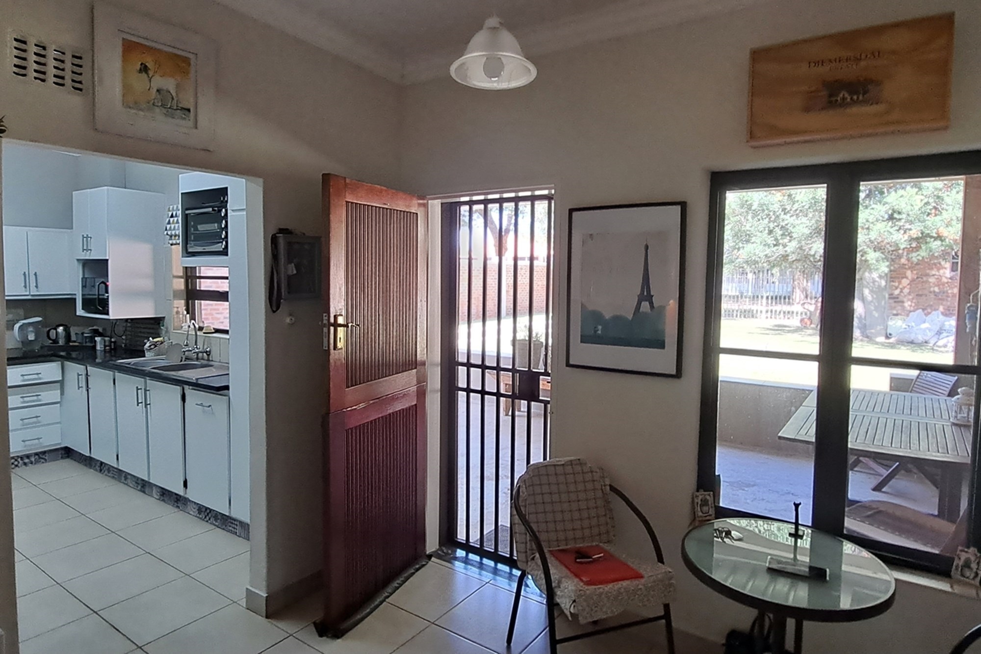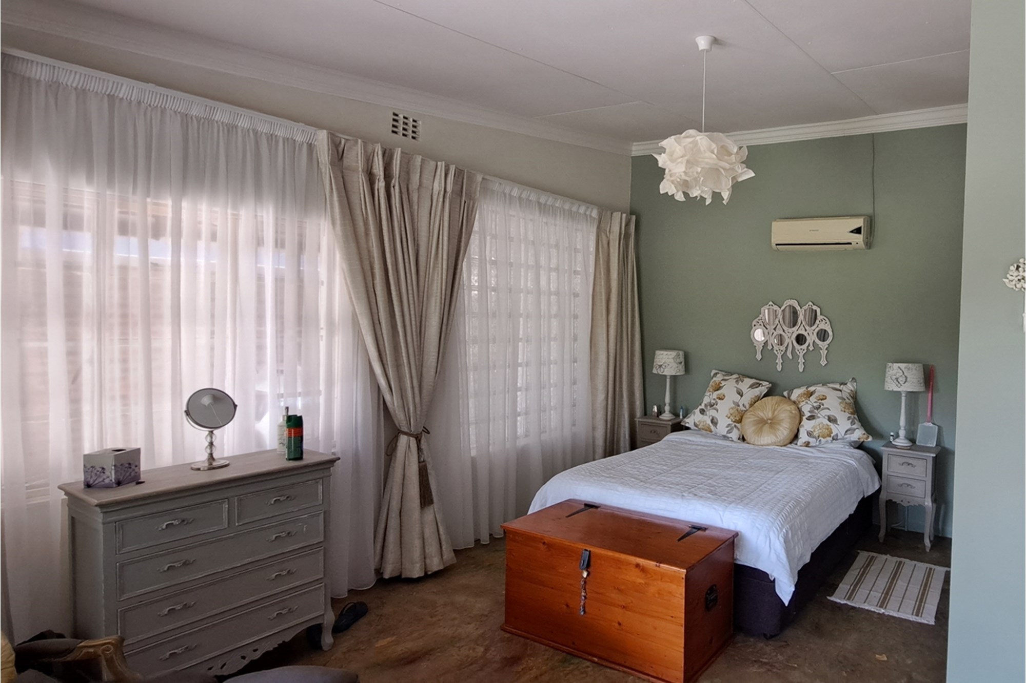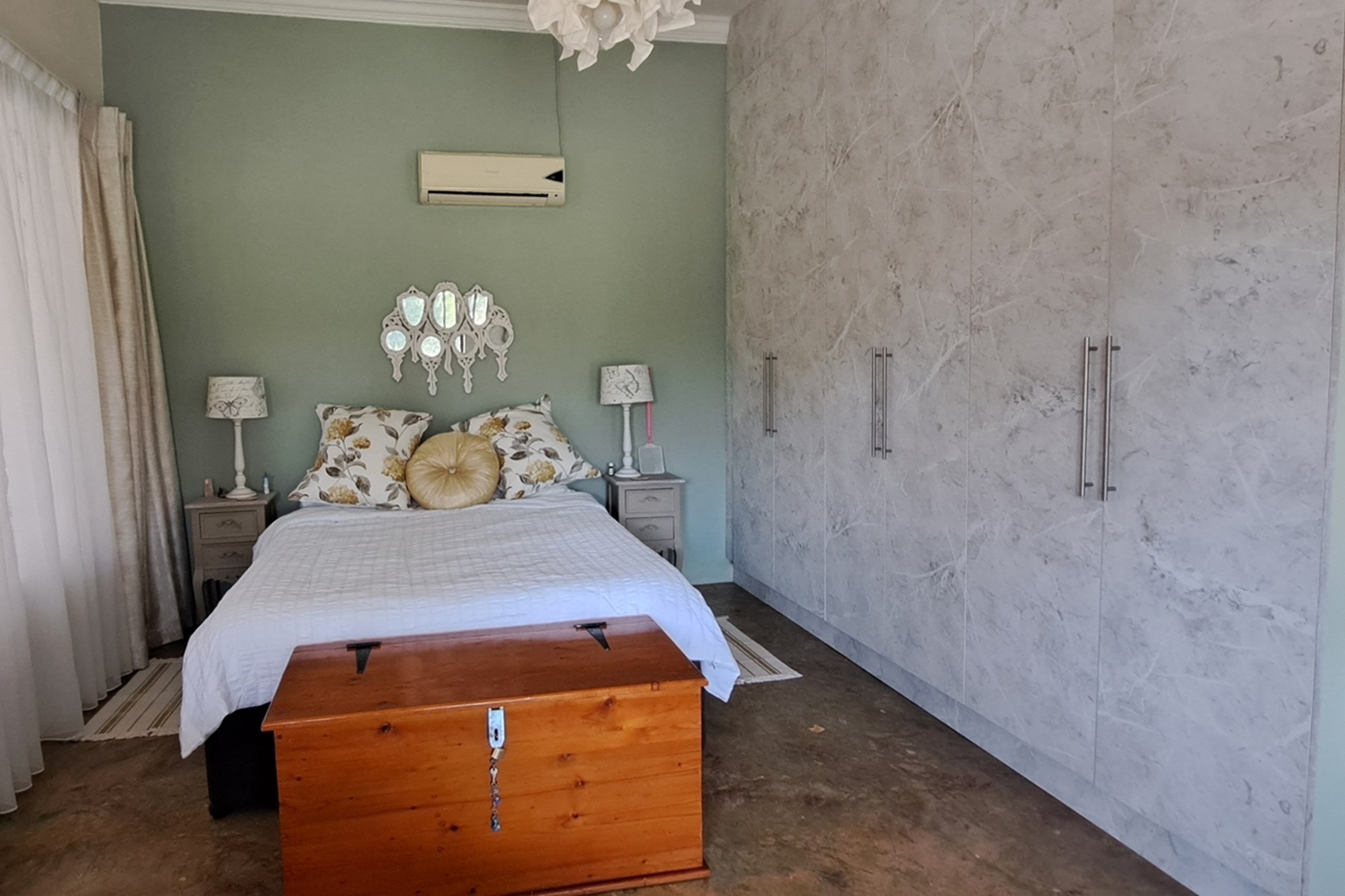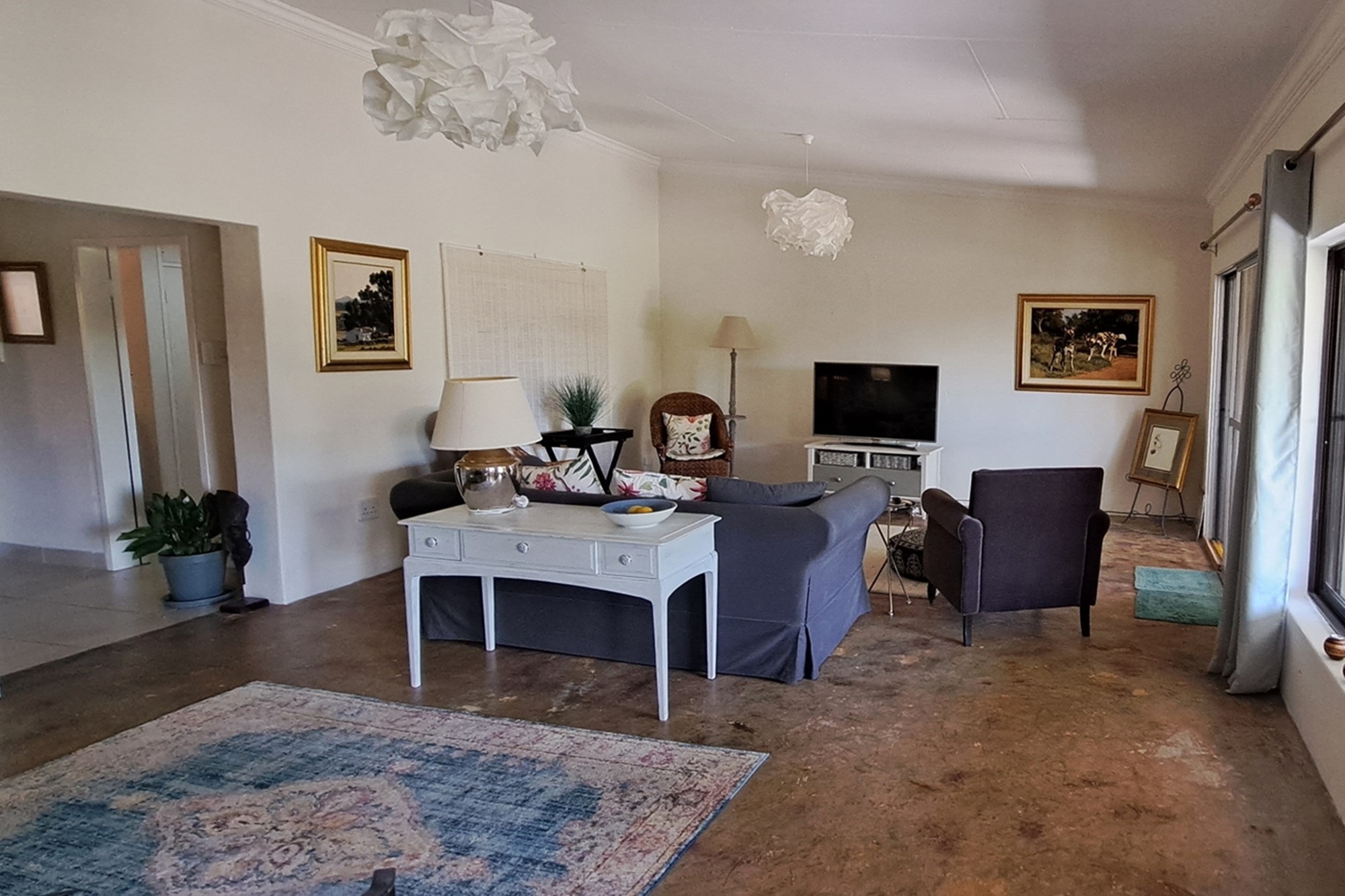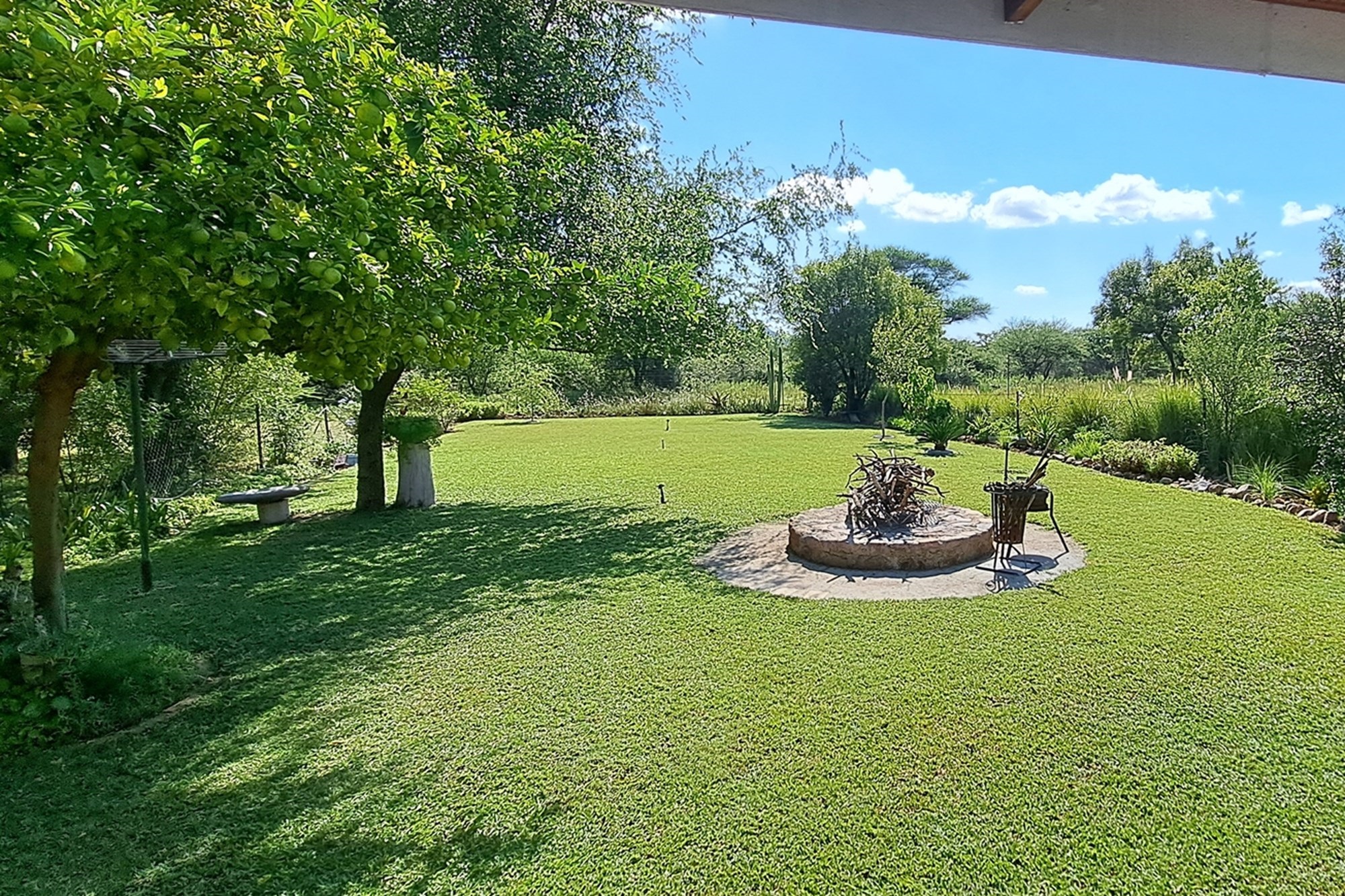 Sitting majestically on a generous 985-square-meter stand, this home boasts ample outdoor underroof entertainment space with a built-in braai and gas stove and offers unparalleled views of the neighboring game farm.