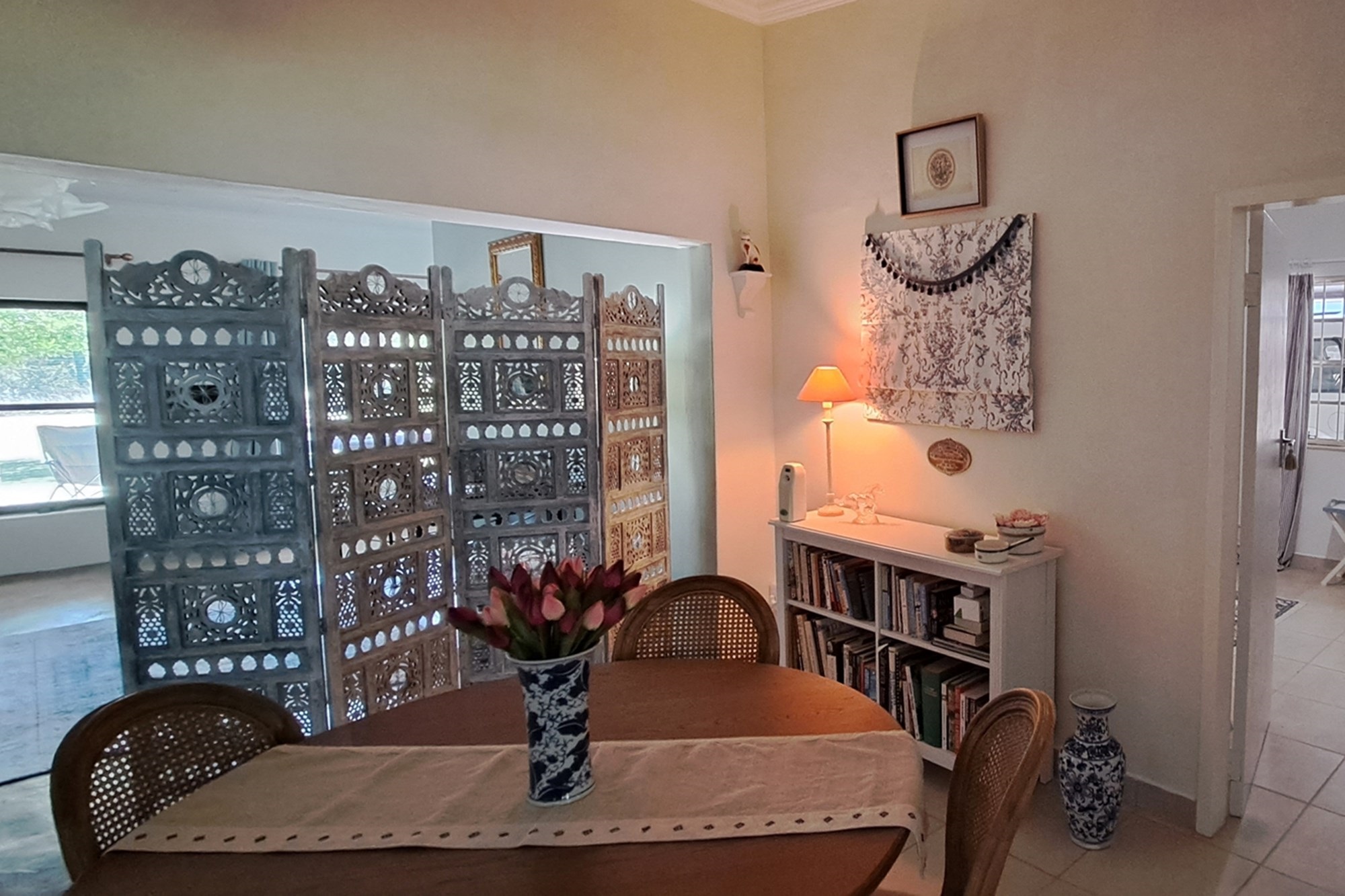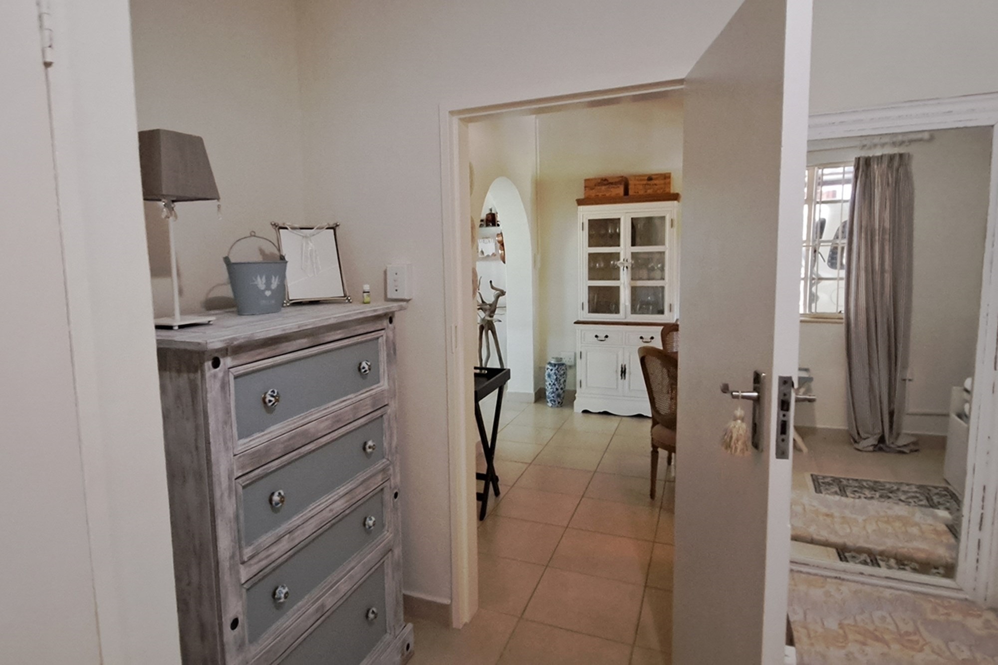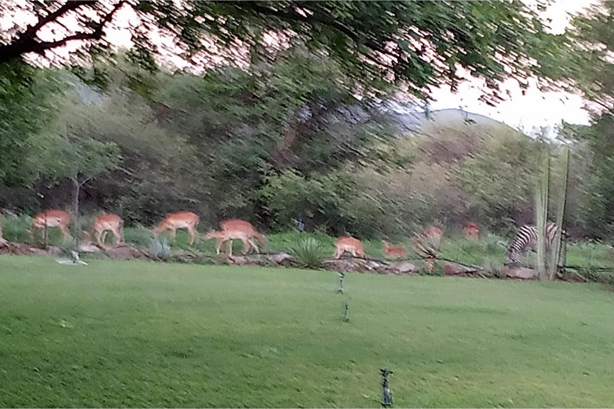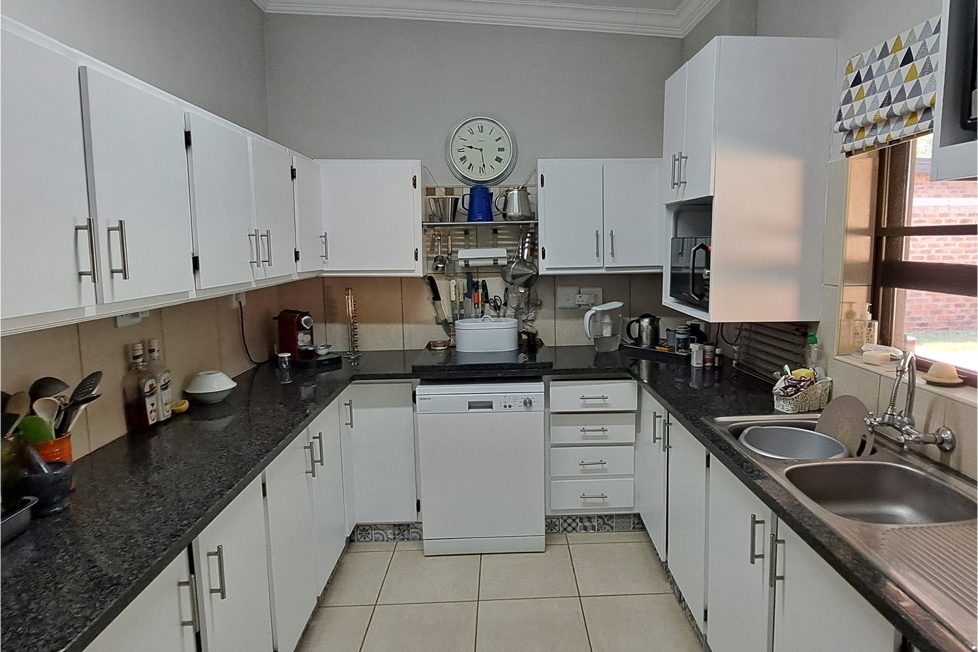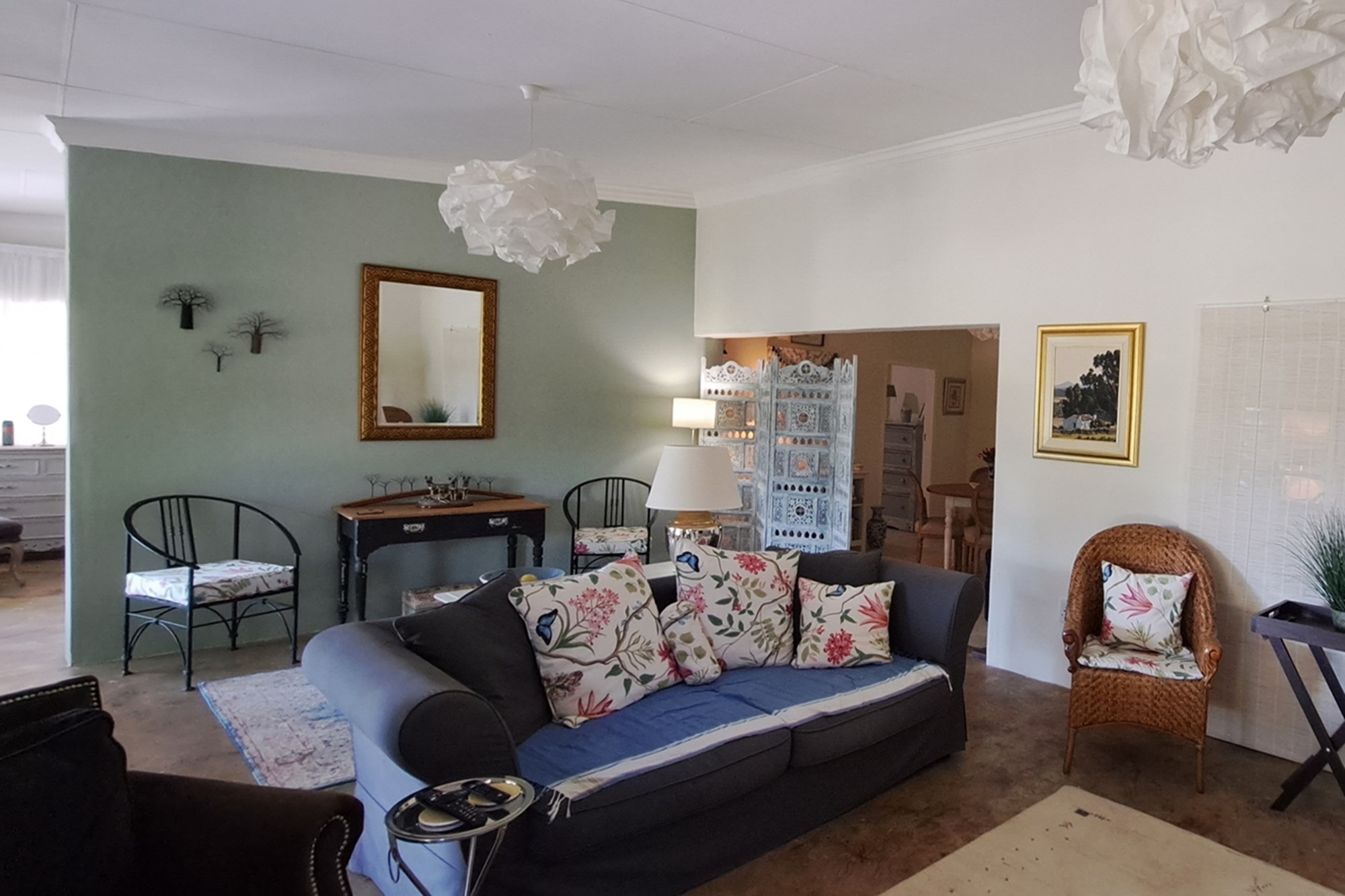 Sitting majestically on a generous 985-square-meter stand, this home boasts ample outdoor underroof entertainment space with a built-in braai and gas stove and offers unparalleled views of the neighboring game farm.