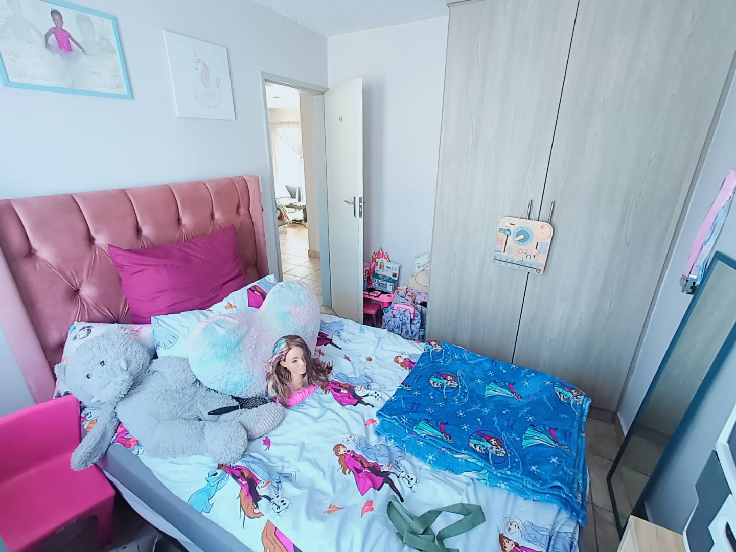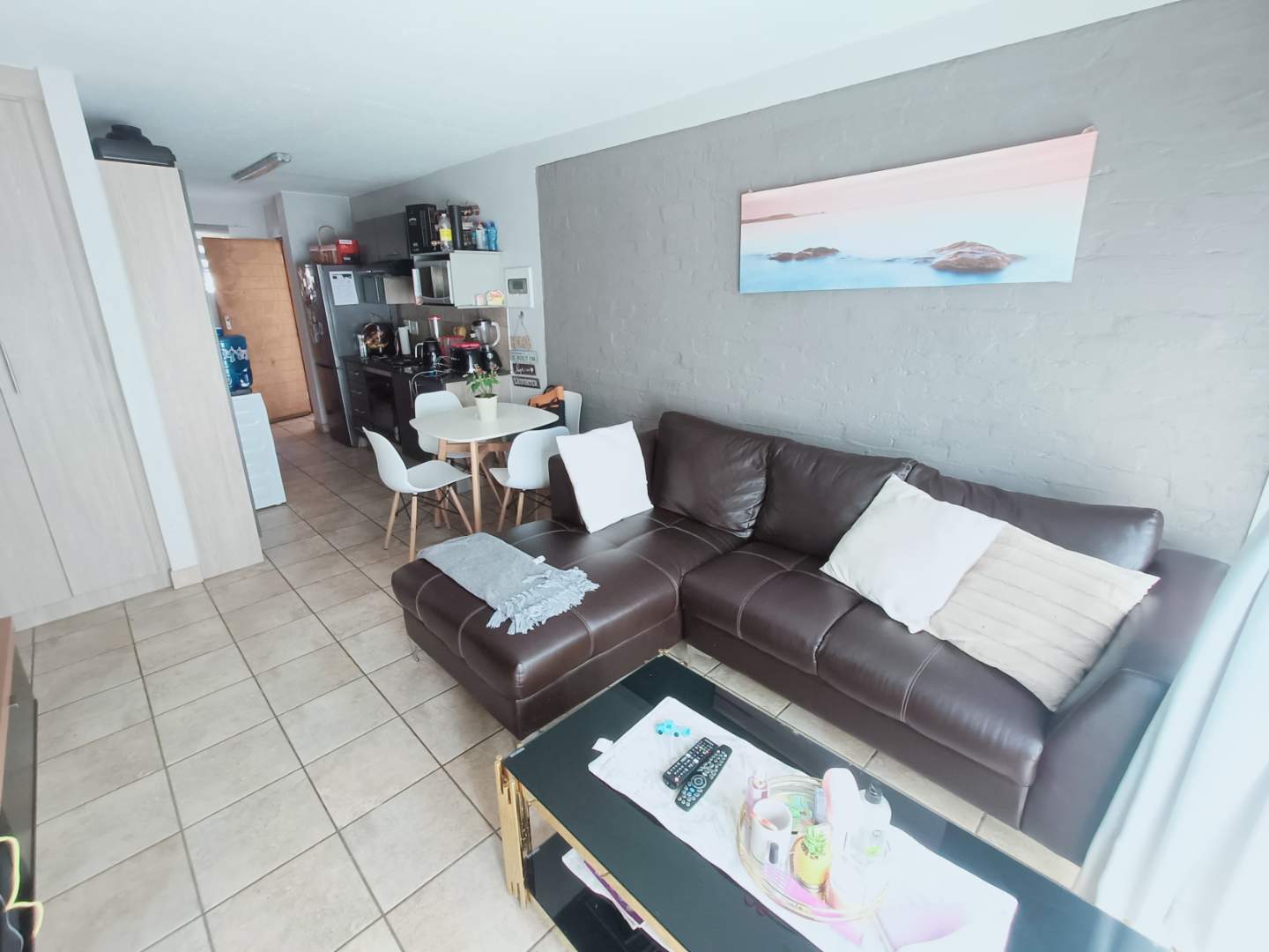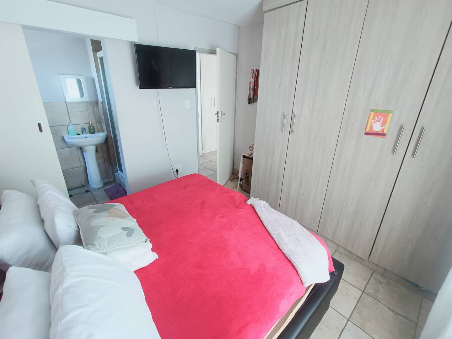 Step into the open-plan living area, where space and light come together to create an inviting atmosphere for relaxation and entertainment. The beautiful kitchen is a chef’s delight, offering ample cupboard space to meet all your storage needs.