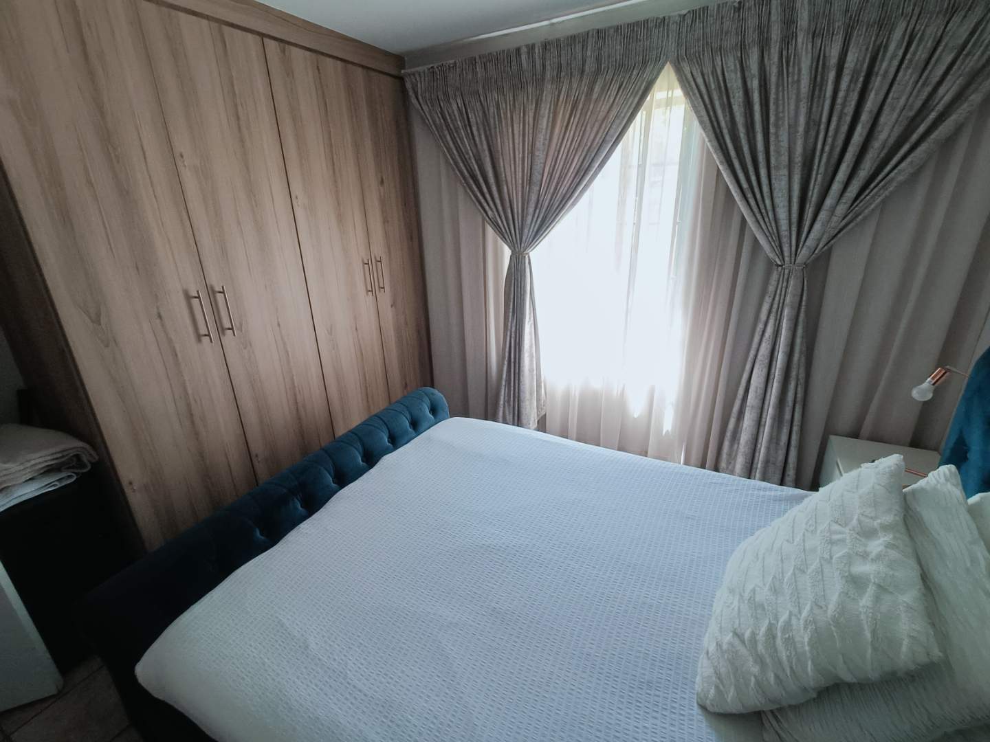 Step into the open-plan living area, where space and light come together to create an inviting atmosphere for relaxation and entertainment. The beautiful kitchen is a chef’s delight, offering ample cupboard space to meet all your storage needs.