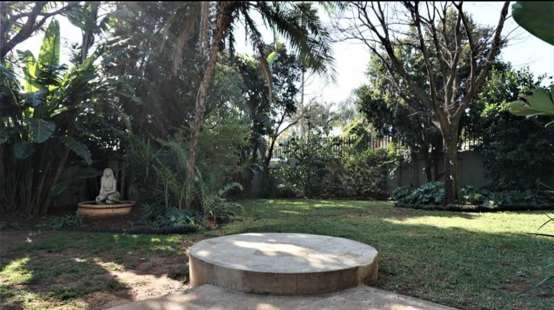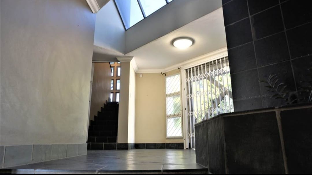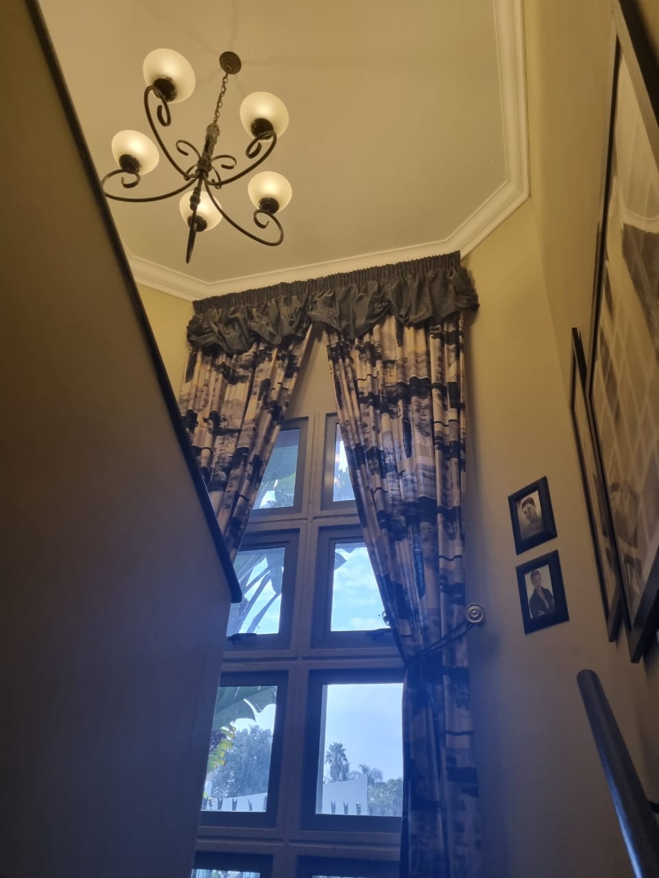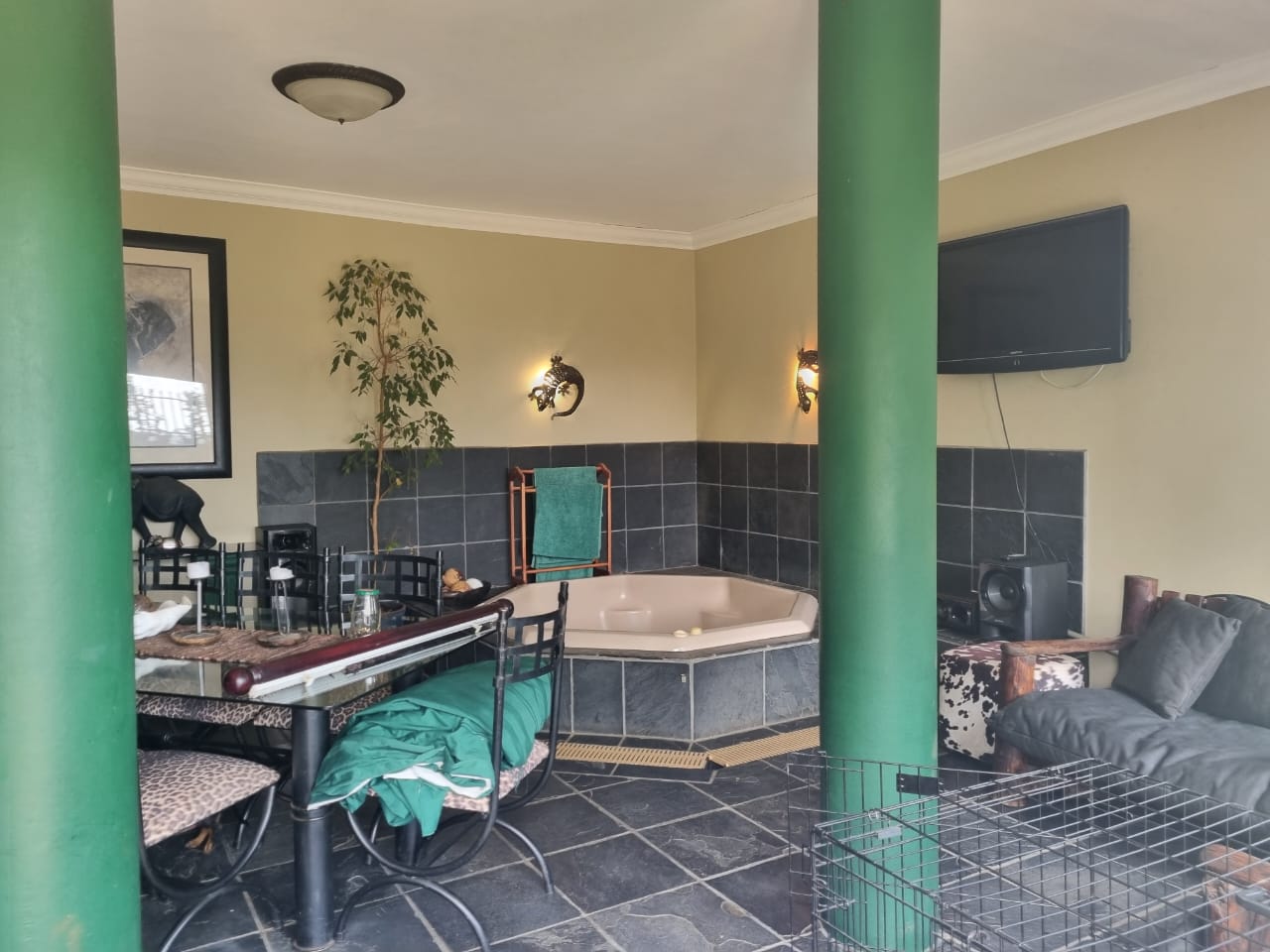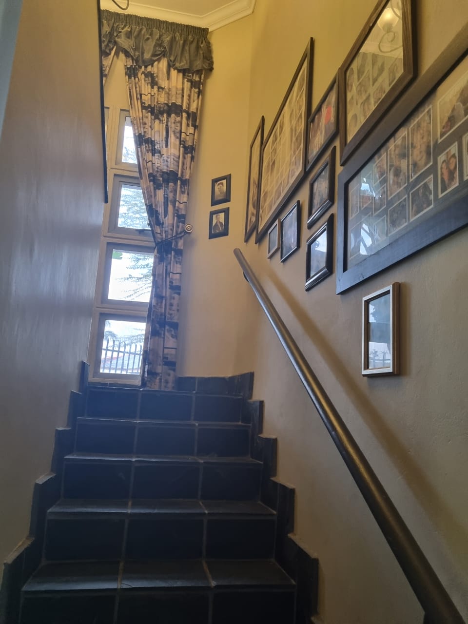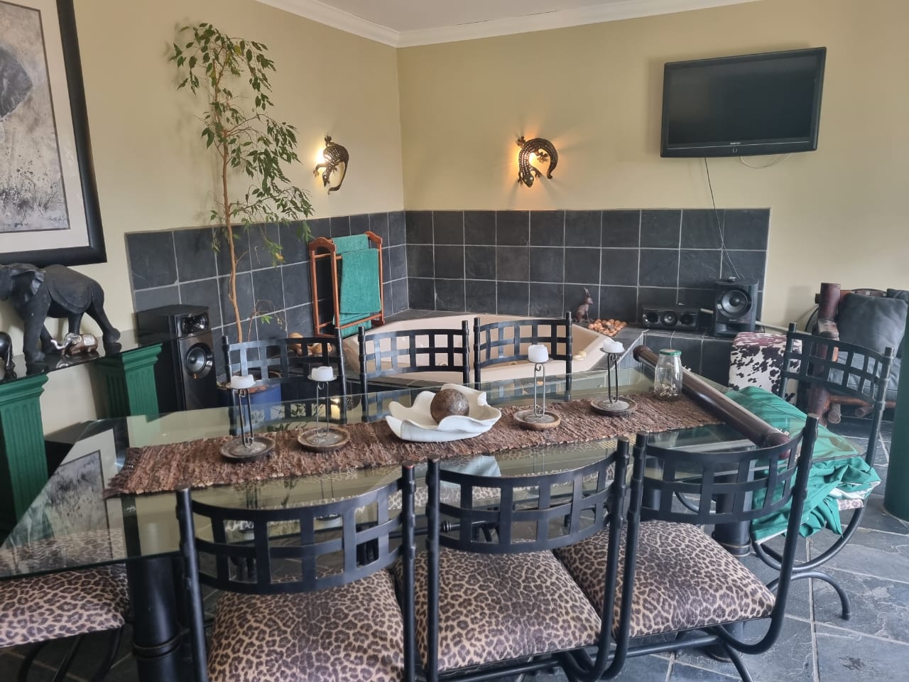 Luxurious 5-Bedroom Double Storey Mansion Experience opulence and grandeur in this stunning 5- bedroom double storey mansion. Perfect for those seeking luxurious lifestyle. Boasting top class quality finishes. The generous reception area with glass pivot door gives you access to this entertainers dream, ideal for a large family. When entering the property you are met by a guest toilet to your left and slate tiled floors throughout the house. Downstairs: Downstairs to your right you will find the prestigious wine cellar with its expert design and construction of custom built mahogany wine racks to solve your wine storage and display needs. There is a private large study that can be used for Home office, neatly carpeted with three perfectly fitted workstations made from Mahogany wood- ideal for the work from home family. There are two formal lounges with luxurious tiling rails. There is an entertainment area equipped with a built in braai, granite tops, slate tiles, jacuzzi and glass sliding doors opening up onto the beautiful, well designed back yard with a covered patio overlooking the well designed koi pond with its natural stone water feature. There is a bar area with solid beech wood finishes. There is a large dinning area adjacent to the kitchen for convenience in serving guests. There is a modern kitchen consisting of a semi-gas and electrical hob and oven, space for double door fridge, modern cupboards, ivory fantasy granite tops, soft closing cupboard doors and drawers, space for a microwave and blinds. The kitchen further offers a scullery with a walk in Pantry, double basin and space for 3 undercounter appliances. Upstairs: There are 5 large bedrooms upstairs, two full bathrooms, Master bedroom is en-suite. Two of the five bedrooms have their own balcony, the master bedroom has an air condition. Four of the bedrooms are carpeted with 100% wool carpets and all bedroom have ample built in cupboards. There is a one bedroom Flatlet, with its own entrance and Carport. The flat consists of one spacious bedroom with en-suite bathroom and ample built in cupboards, a lovely living area and a neat little kitchen. Security features at the house includes an alarm system, motorized security gate, burglar bars, beams, CCTV treli-doors in front of all outside doors. Other features include TV ports in all the rooms and an irrigation system with rain detector. Discover the cosmopolitan convenience and friendly atmosphere of this leafy home.. Extra Features Jacuzzi Gym, koi pond Scenic views from upper floors Ample Parking Ideal for: Large families High end Executives Those seeking luxury and exclusivity Schedule a viewing today and indulge in the finer things in life! This magnificent property has lots to offer seeing is believing, Please book sometime to view this property before its too late.