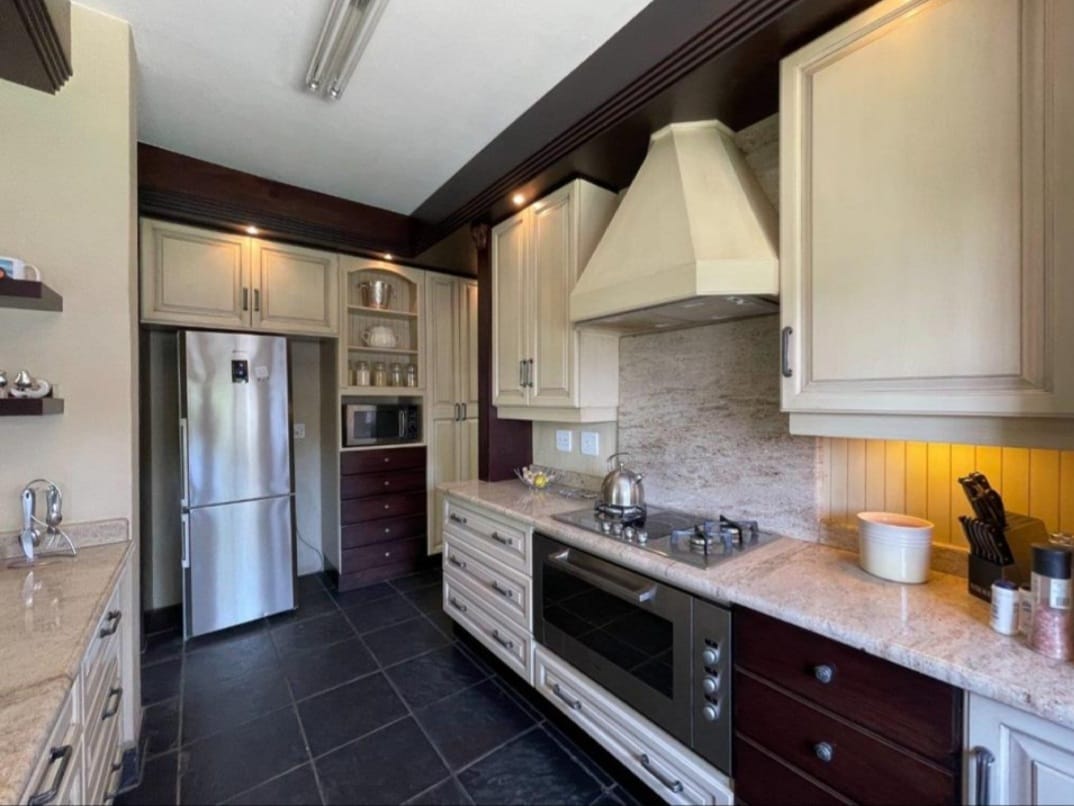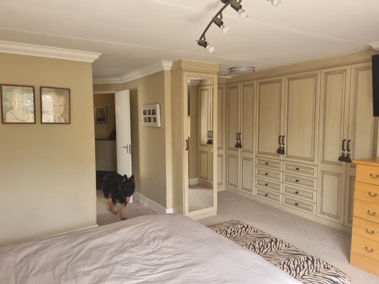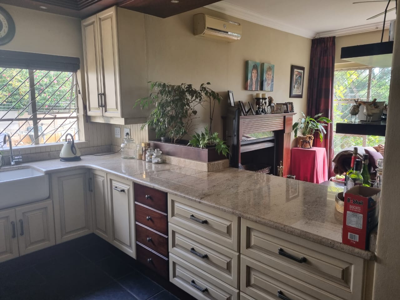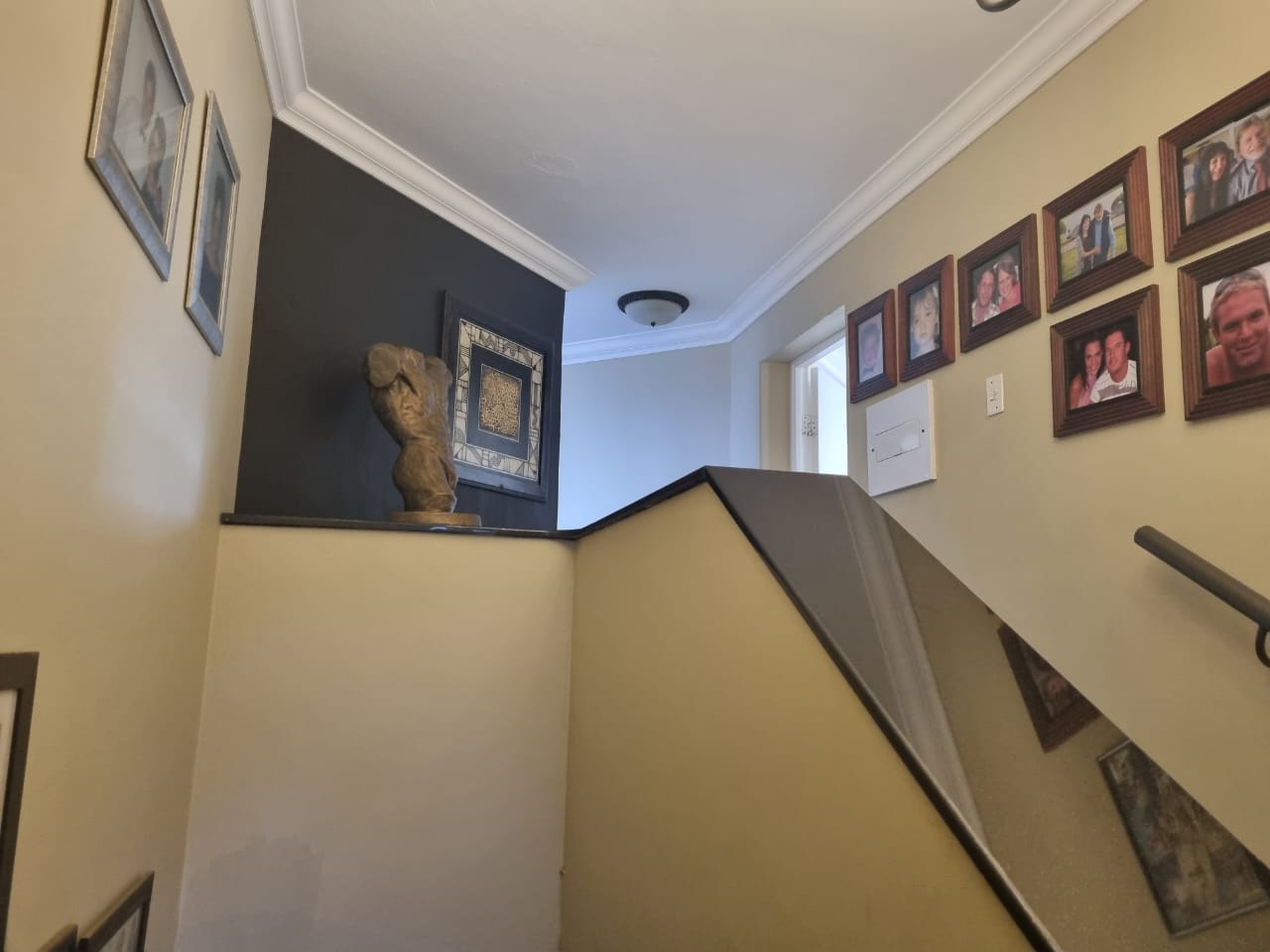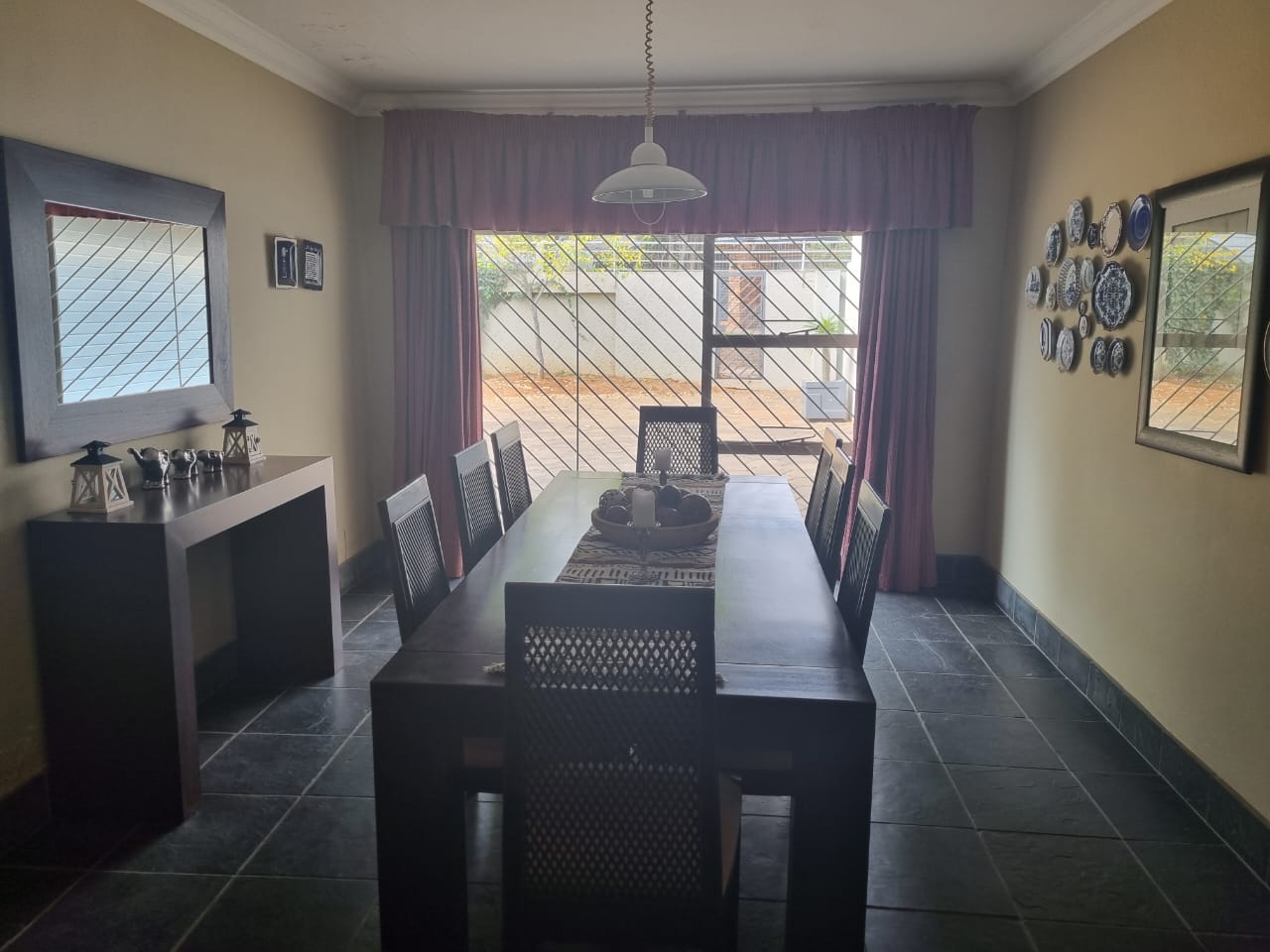 Luxurious 5-Bedroom Double Storey Mansion Experience opulence and grandeur in this stunning 5- bedroom double storey mansion. Perfect for those seeking luxurious lifestyle. Boasting top class quality finishes. The generous reception area with glass pivot door gives you access to this entertainers dream, ideal for a large family. When entering the property you are met by a guest toilet to your left and slate tiled floors throughout the house. Downstairs: Downstairs to your right you will find the prestigious wine cellar with its expert design and construction of custom built mahogany wine racks to solve your wine storage and display needs. There is a private large study that can be used for Home office, neatly carpeted with three perfectly fitted workstations made from Mahogany wood- ideal for the work from home family. There are two formal lounges with luxurious tiling rails. There is an entertainment area equipped with a built in braai, granite tops, slate tiles, jacuzzi and glass sliding doors opening up onto the beautiful, well designed back yard with a covered patio overlooking the well designed koi pond with its natural stone water feature. There is a bar area with solid beech wood finishes. There is a large dinning area adjacent to the kitchen for convenience in serving guests. There is a modern kitchen consisting of a semi-gas and electrical hob and oven, space for double door fridge, modern cupboards, ivory fantasy granite tops, soft closing cupboard doors and drawers, space for a microwave and blinds. The kitchen further offers a scullery with a walk in Pantry, double basin and space for 3 undercounter appliances. Upstairs: There are 5 large bedrooms upstairs, two full bathrooms, Master bedroom is en-suite. Two of the five bedrooms have their own balcony, the master bedroom has an air condition. Four of the bedrooms are carpeted with 100% wool carpets and all bedroom have ample built in cupboards. There is a one bedroom Flatlet, with its own entrance and Carport. The flat consists of one spacious bedroom with en-suite bathroom and ample built in cupboards, a lovely living area and a neat little kitchen. Security features at the house includes an alarm system, motorized security gate, burglar bars, beams, CCTV treli-doors in front of all outside doors. Other features include TV ports in all the rooms and an irrigation system with rain detector. Discover the cosmopolitan convenience and friendly atmosphere of this leafy home.. Extra Features Jacuzzi Gym, koi pond Scenic views from upper floors Ample Parking Ideal for: Large families High end Executives Those seeking luxury and exclusivity Schedule a viewing today and indulge in the finer things in life! This magnificent property has lots to offer seeing is believing, Please book sometime to view this property before its too late.