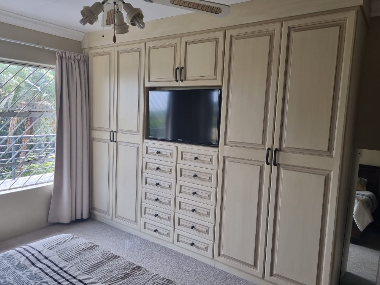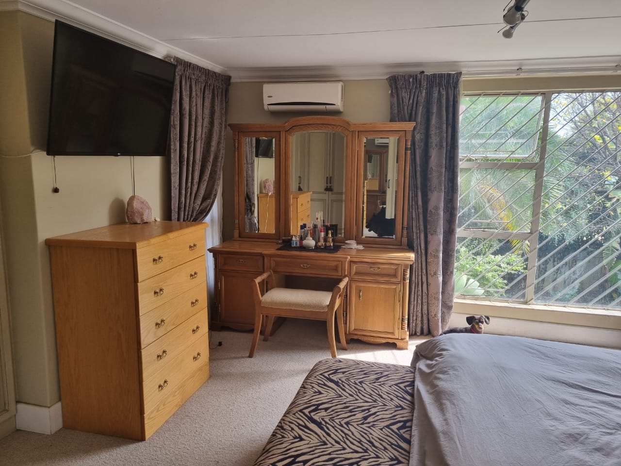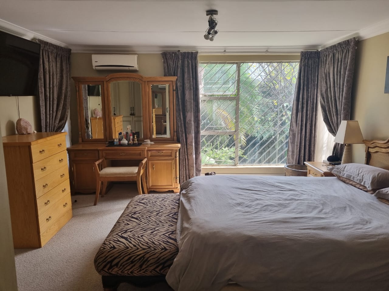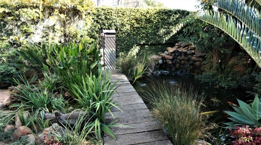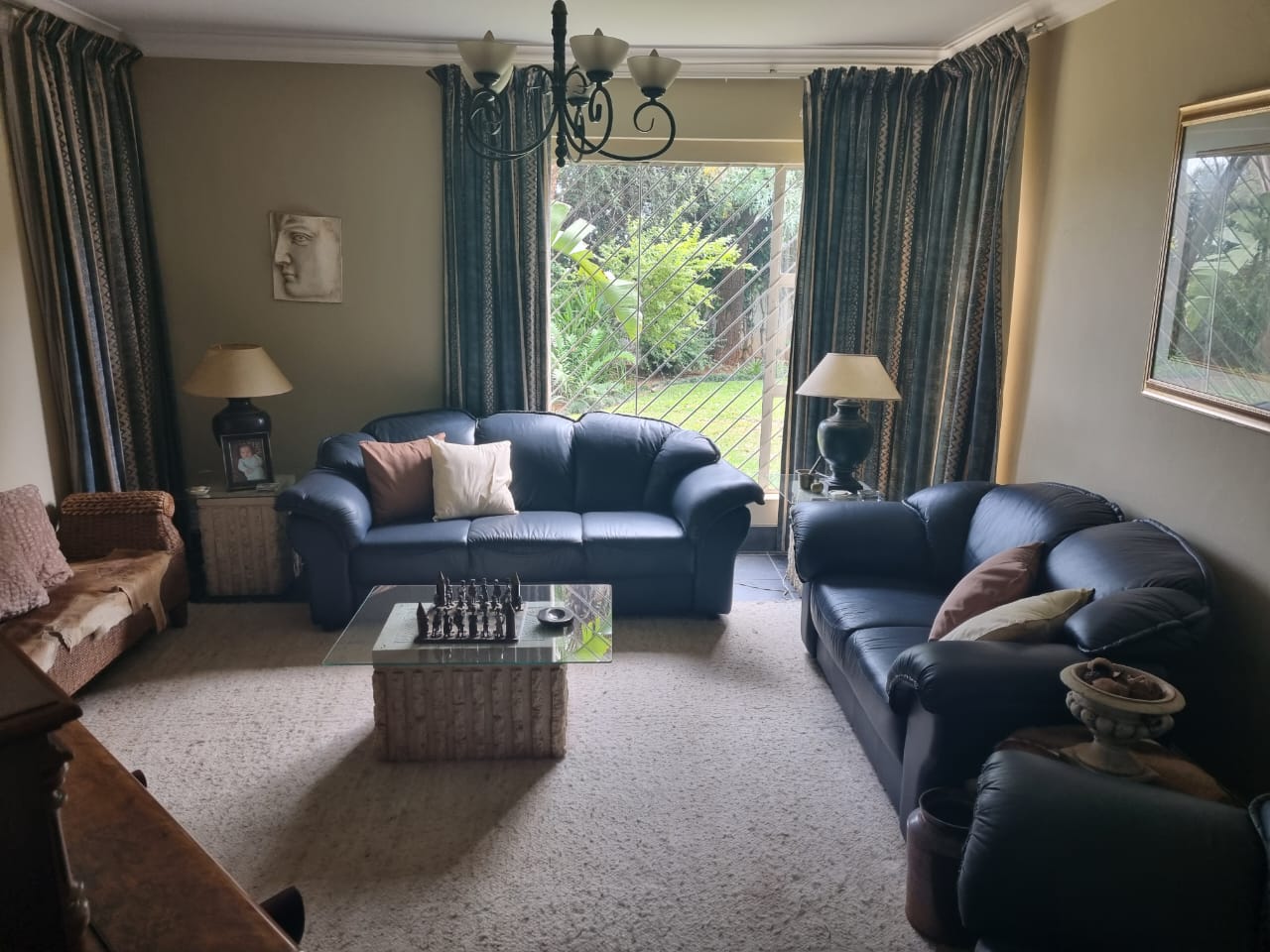 Luxurious 5-Bedroom Double Storey Mansion Experience opulence and grandeur in this stunning 5- bedroom double storey mansion. Perfect for those seeking luxurious lifestyle. Boasting top class quality finishes. The generous reception area with glass pivot door gives you access to this entertainers dream, ideal for a large family. When entering the property you are met by a guest toilet to your left and slate tiled floors throughout the house. Downstairs: Downstairs to your right you will find the prestigious wine cellar with its expert design and construction of custom built mahogany wine racks to solve your wine storage and display needs. There is a private large study that can be used for Home office, neatly carpeted with three perfectly fitted workstations made from Mahogany wood- ideal for the work from home family. There are two formal lounges with luxurious tiling rails. There is an entertainment area equipped with a built in braai, granite tops, slate tiles, jacuzzi and glass sliding doors opening up onto the beautiful, well designed back yard with a covered patio overlooking the well designed koi pond with its natural stone water feature. There is a bar area with solid beech wood finishes. There is a large dinning area adjacent to the kitchen for convenience in serving guests. There is a modern kitchen consisting of a semi-gas and electrical hob and oven, space for double door fridge, modern cupboards, ivory fantasy granite tops, soft closing cupboard doors and drawers, space for a microwave and blinds. The kitchen further offers a scullery with a walk in Pantry, double basin and space for 3 undercounter appliances. Upstairs: There are 5 large bedrooms upstairs, two full bathrooms, Master bedroom is en-suite. Two of the five bedrooms have their own balcony, the master bedroom has an air condition. Four of the bedrooms are carpeted with 100% wool carpets and all bedroom have ample built in cupboards. There is a one bedroom Flatlet, with its own entrance and Carport. The flat consists of one spacious bedroom with en-suite bathroom and ample built in cupboards, a lovely living area and a neat little kitchen. Security features at the house includes an alarm system, motorized security gate, burglar bars, beams, CCTV treli-doors in front of all outside doors. Other features include TV ports in all the rooms and an irrigation system with rain detector. Discover the cosmopolitan convenience and friendly atmosphere of this leafy home.. Extra Features Jacuzzi Gym, koi pond Scenic views from upper floors Ample Parking Ideal for: Large families High end Executives Those seeking luxury and exclusivity Schedule a viewing today and indulge in the finer things in life! This magnificent property has lots to offer seeing is believing, Please book sometime to view this property before its too late.