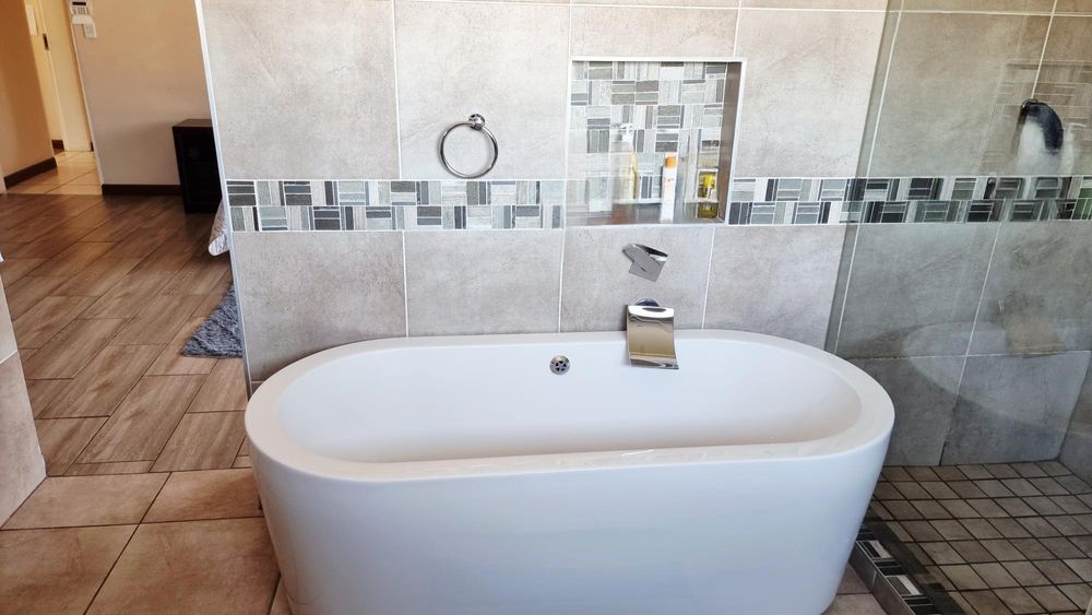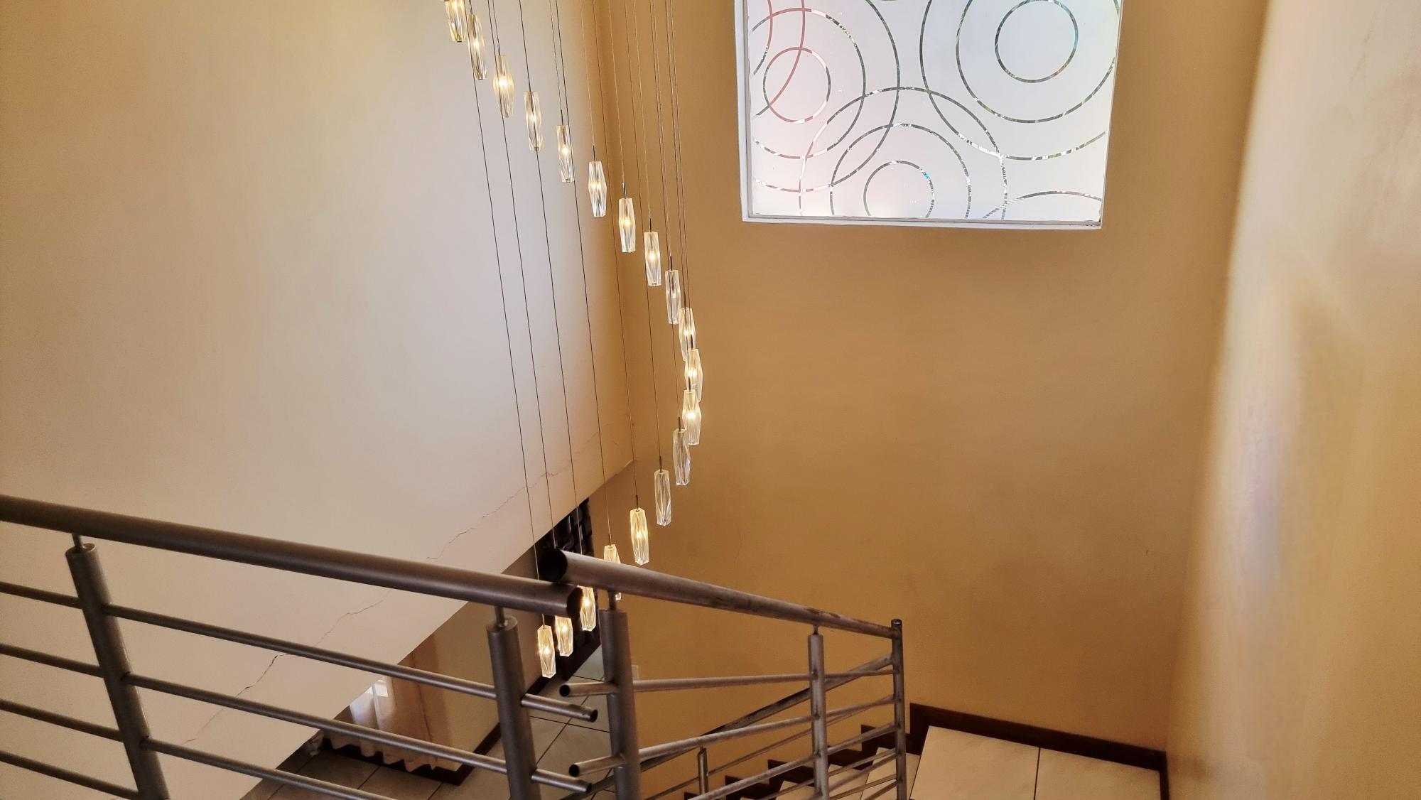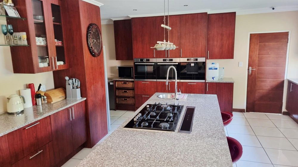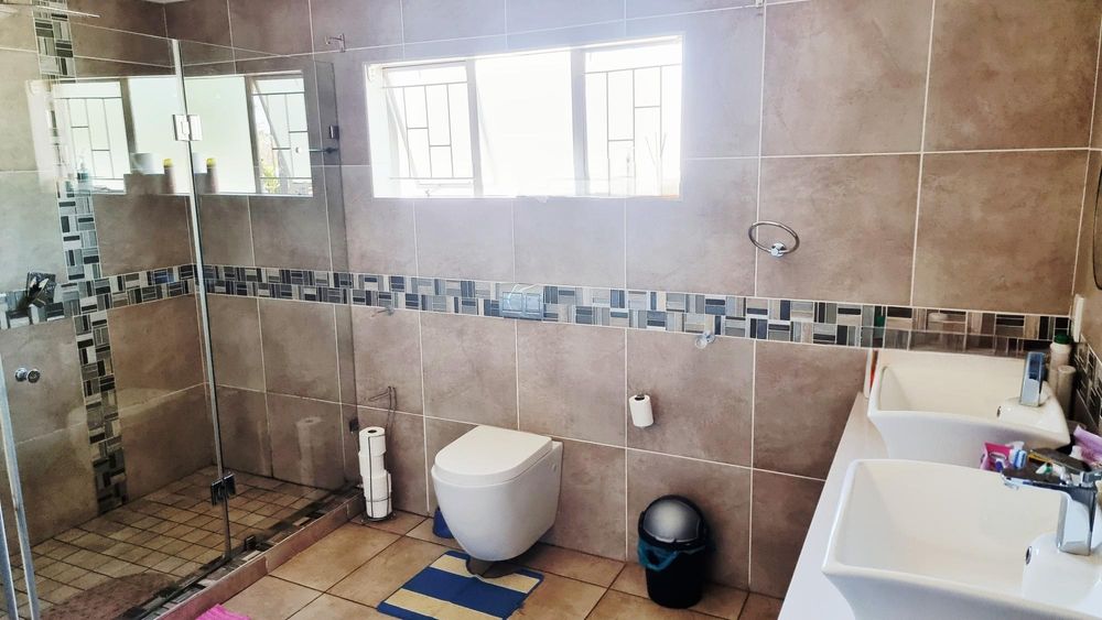 This spacious freestanding property is located in the amazing suburb of Rooihuiskraal. It is most suitable for a relatively large family who's looking for comfort, safety and convienience. The property has a very good surveillance system to keep everyone safe. The property's unique features include 2 bedrooms and 1 bathroom downstairs. The main bedroom is located upstairs and a spacious en-suite bathroom with a free-standing bathtub, double showers and his-and-hers basins. The front bedroom also located upstairs has a beautiful balcony to enjoy the sunset and the front garden view. There is another bedroom upstairs with a bathroom of just a shower. There is an open-plan kitchen with a gas stove and a walk-in pantry. The spacious scullery can have up to 4 appliances. The dining room and lounge is open-plan and spacious. The double garage has direct access to the house. The house has additional features such as a JoJo Tank, a large back garden and it is pet-friendly.