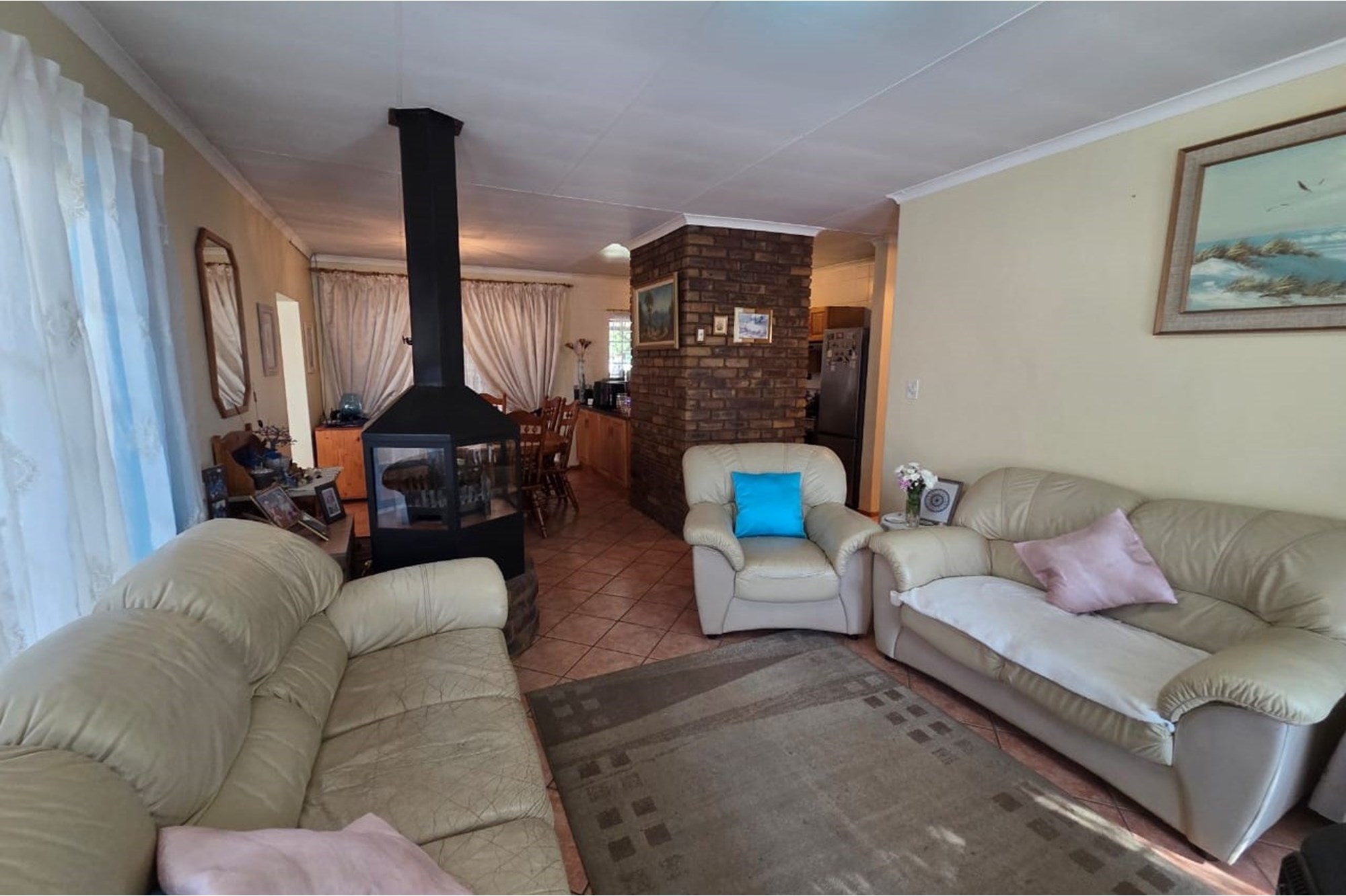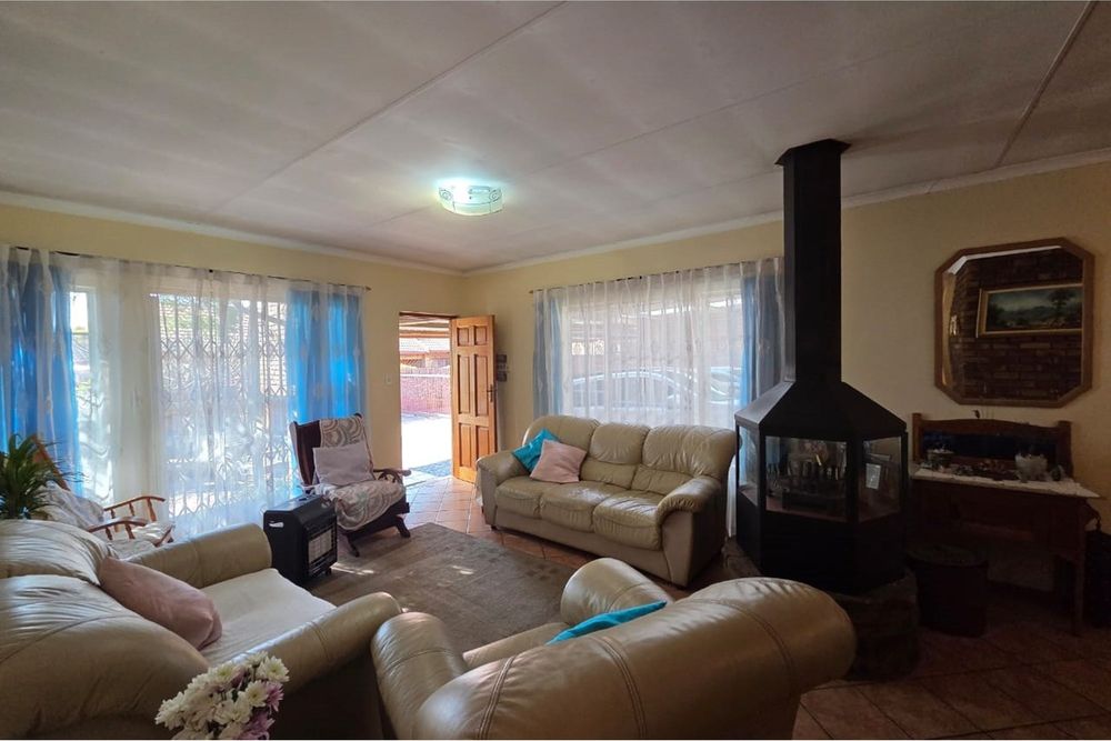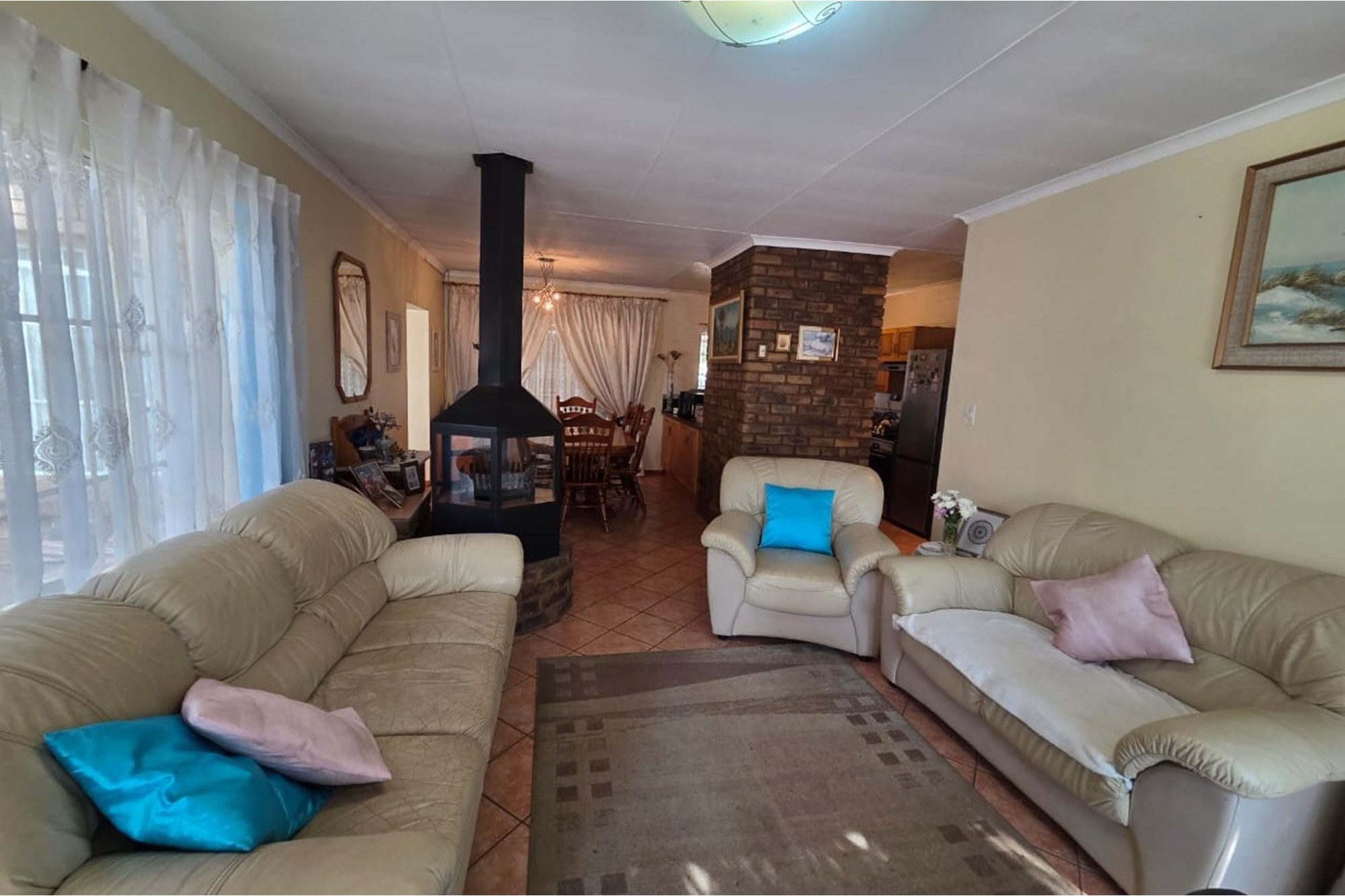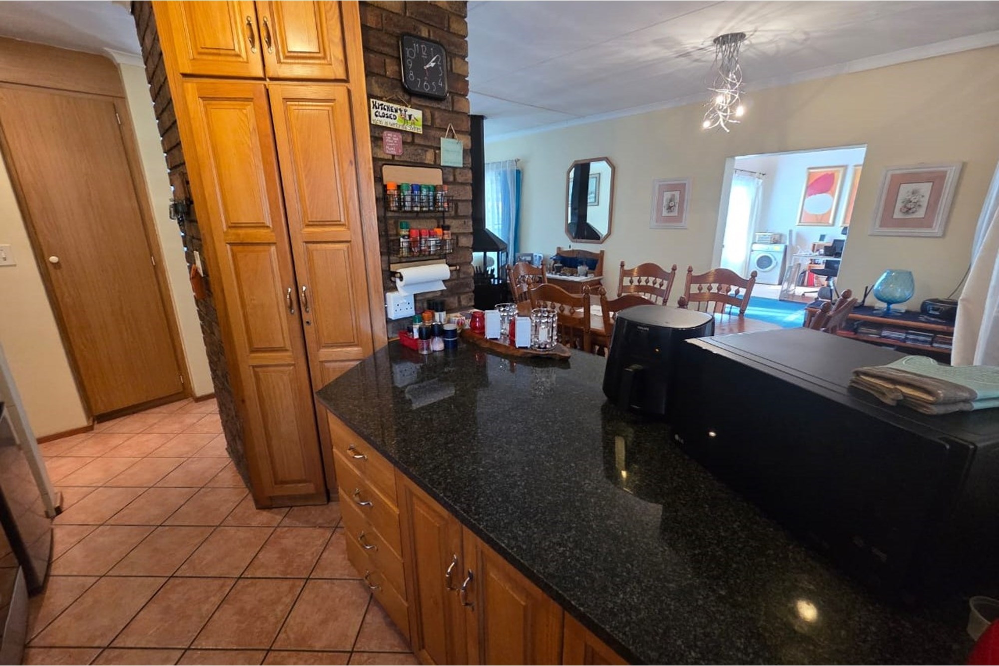 The lounge opens with a sliding door to the well-established garden and entertainment area with built in braai.