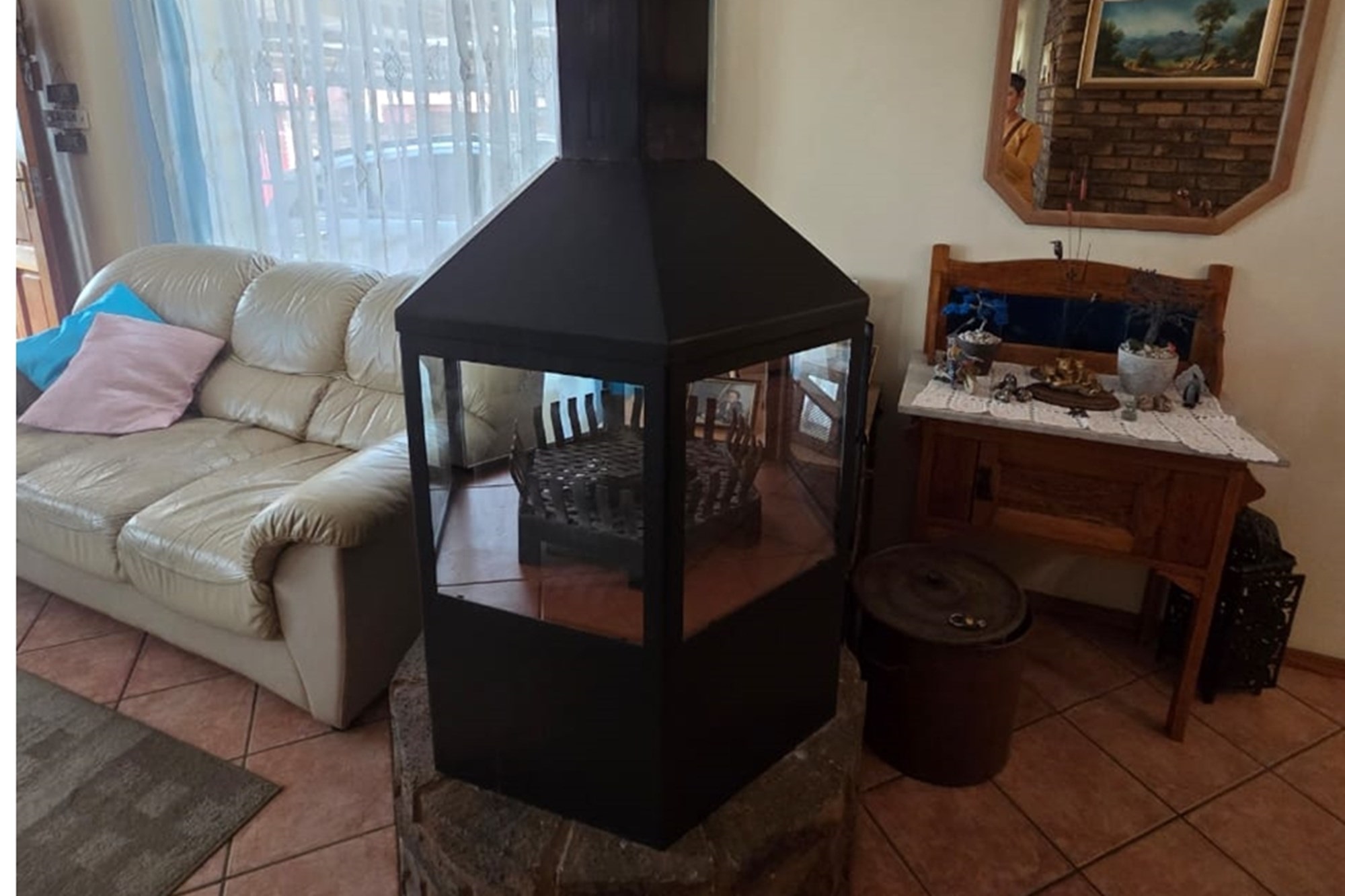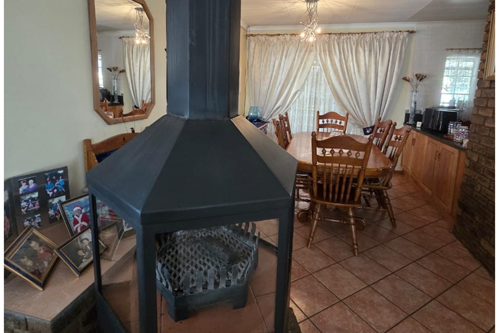 The open plan layout of the lounge, dining room, and kitchen creates a warm and inviting atmosphere. The round fireplace between the dining room and lounge creates heat throughout the whole home allowing you to have a warm home in the winter.