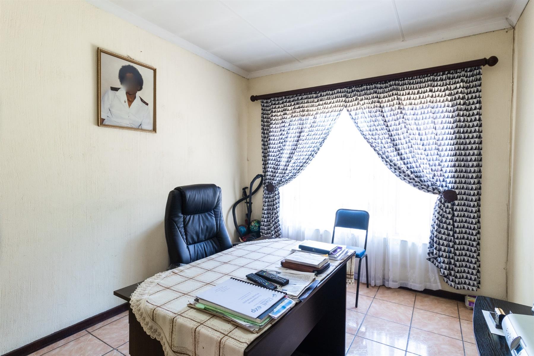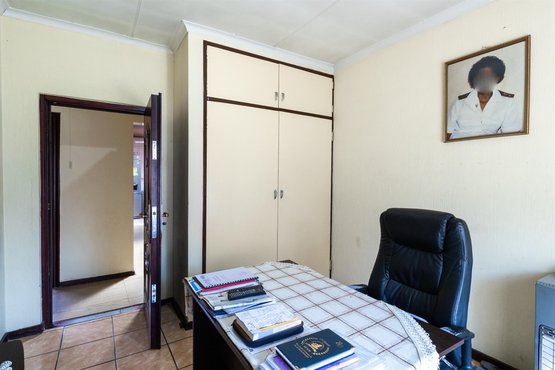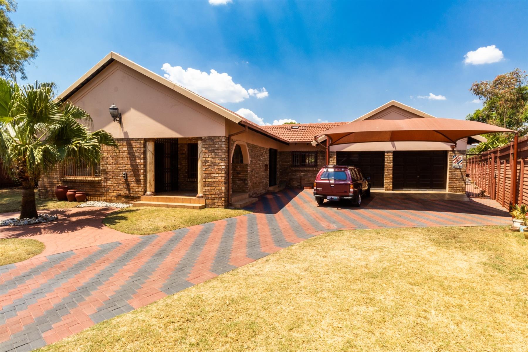 At the rear of the home, you’ll find a swimming pool, thatched lapa, and a spacious garden—perfect for outdoor entertaining and family enjoyment.