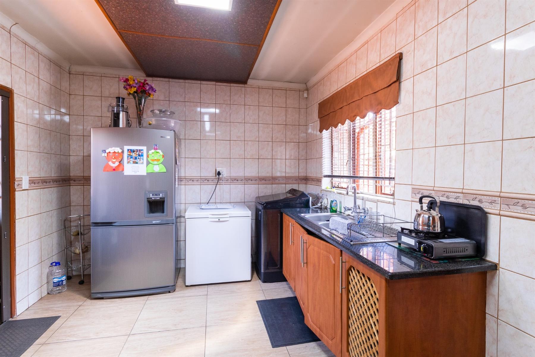 The modern kitchen boasts ample cupboard space, granite countertops, and a separate scullery and laundry area for added practicality.
