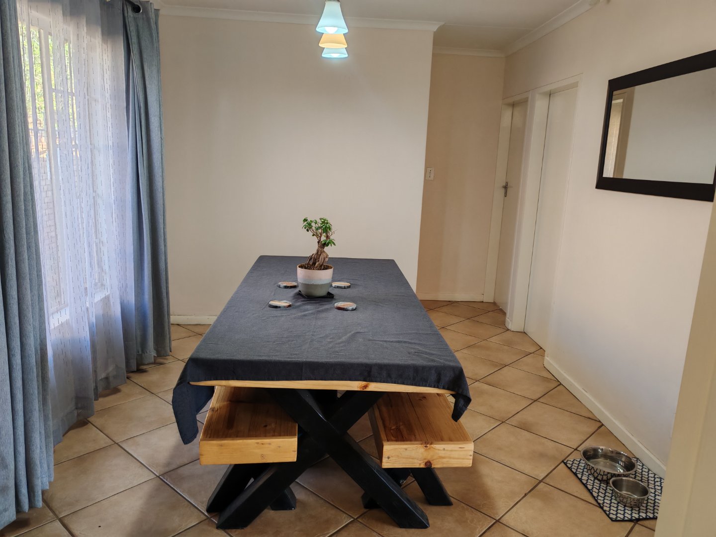The townhouse is situated in a peaceful well maintained complex with a swimming pool and braai area. Also perfectly designed for modern living this lovely townhouse offers 2 large size bedrooms , both with built in cupboards , a spacious full bathroom with a shower , bath, toilet and basin.