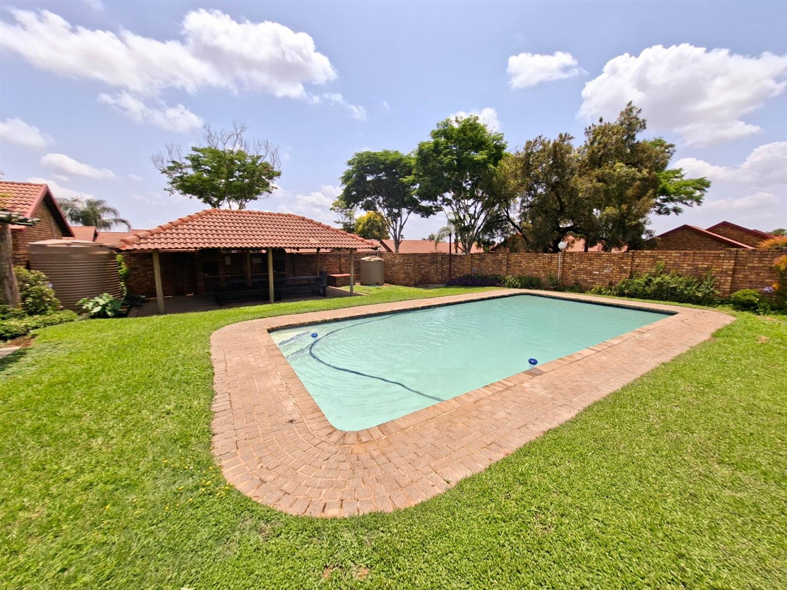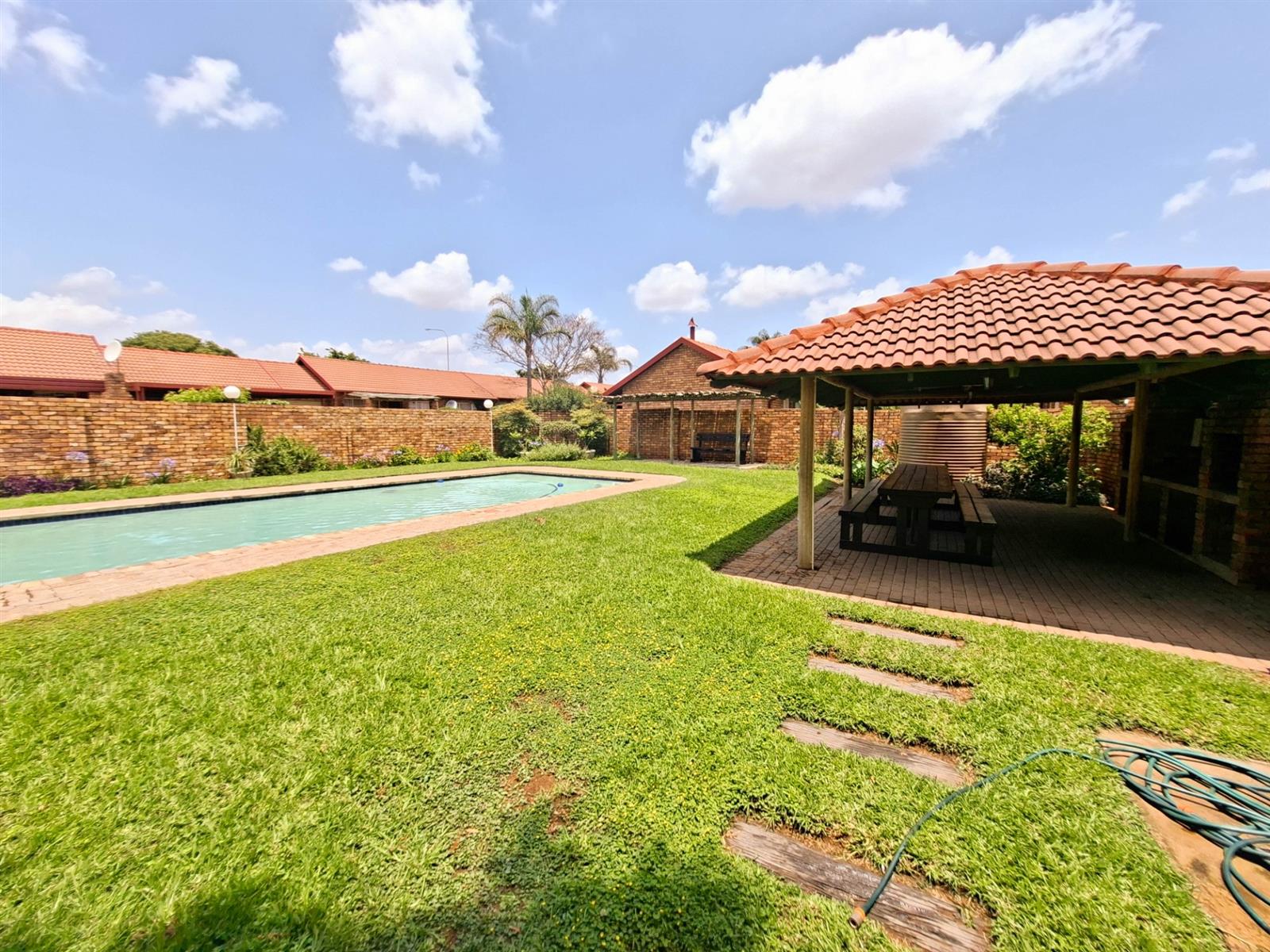 The complex offers a large swimming pool, lapa, and braai area that can be booked