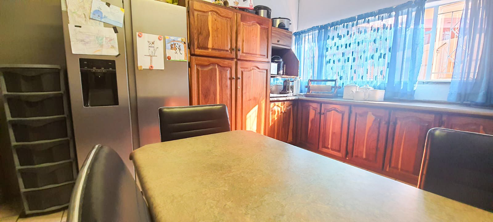 This spacious home is ideal for families seeking comfort and convenience in the heart of Roosheuwel. Enjoy a welcoming open-plan living room with both an air-conditioner and a cosy fireplace, perfect for year-round comfort. The adjoining dining room and versatile study—complete with built-in cupboards—offer flexibility, easily converting into a fourth bedroom or family room to suit your needs.