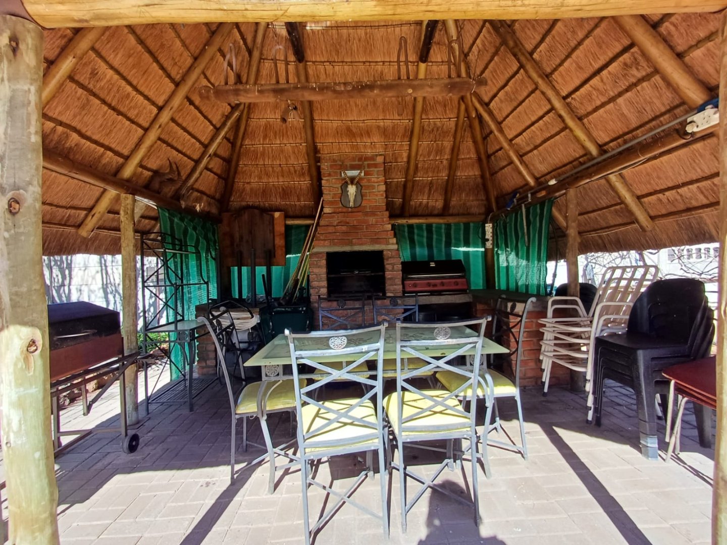 Outdoors, the beautifully landscaped garden is equipped with an irrigation system to keep it green and thriving. Children will love the jungle gym, while the lapa, complete with a second built-in braai, overlooks a sparkling swimming pool—an entertainer’s paradise and the perfect place to unwind.