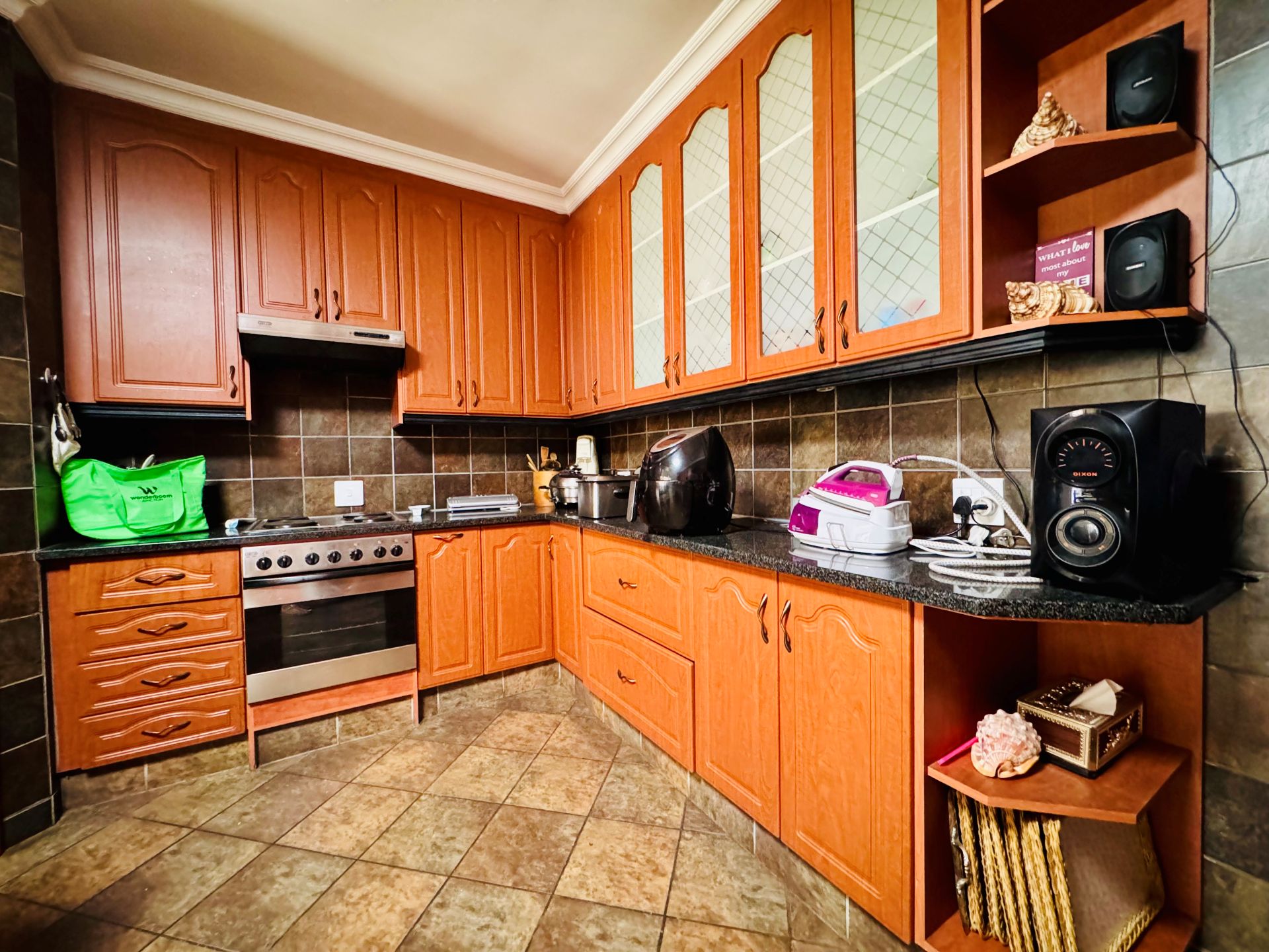 The modern kitchen offers ample storage with granite countertops and a separate scullery that provides space for all your appliances, keeping your main kitchen area tidy and organized.
