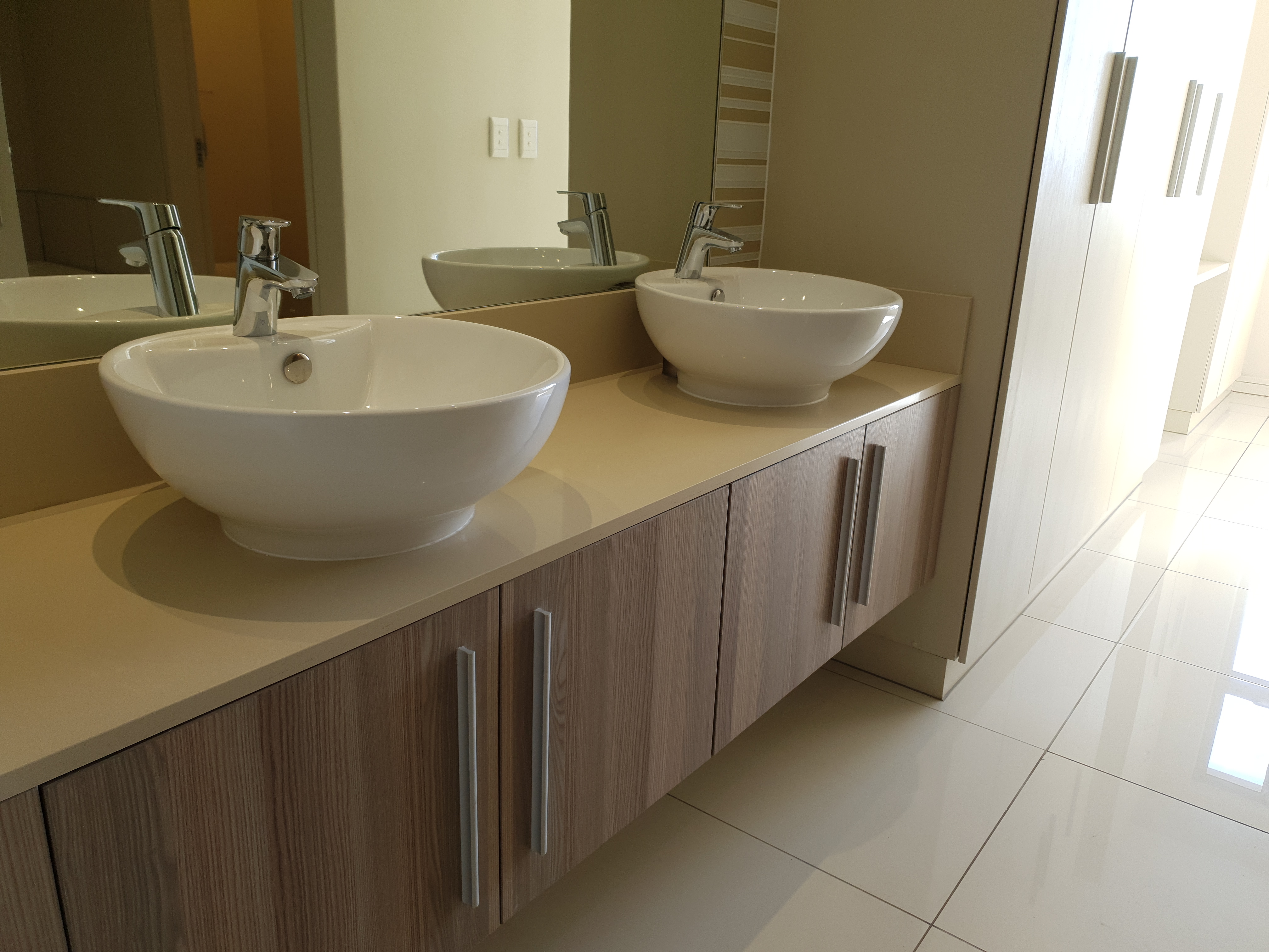 Open plan living with space for two appliances in the kitchen, granite tops and gas hobs.