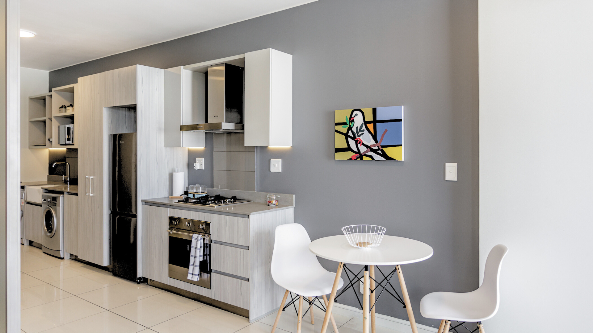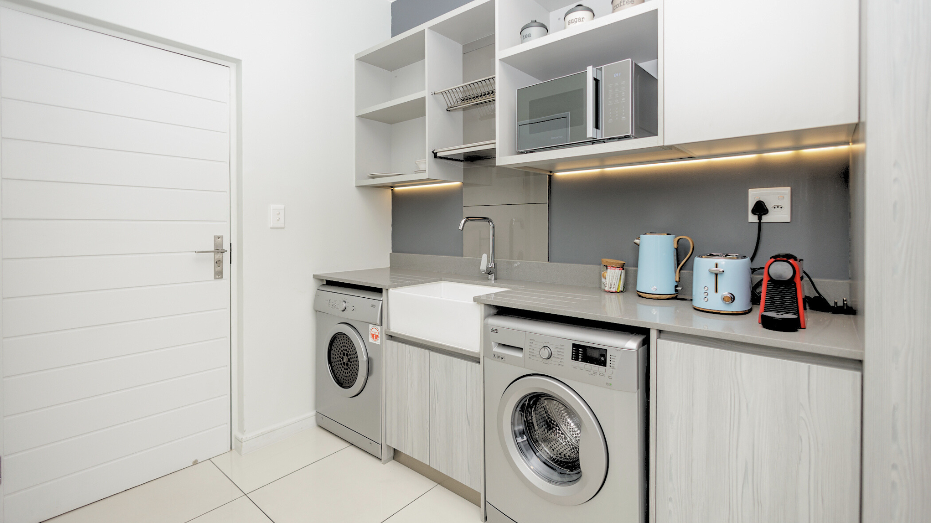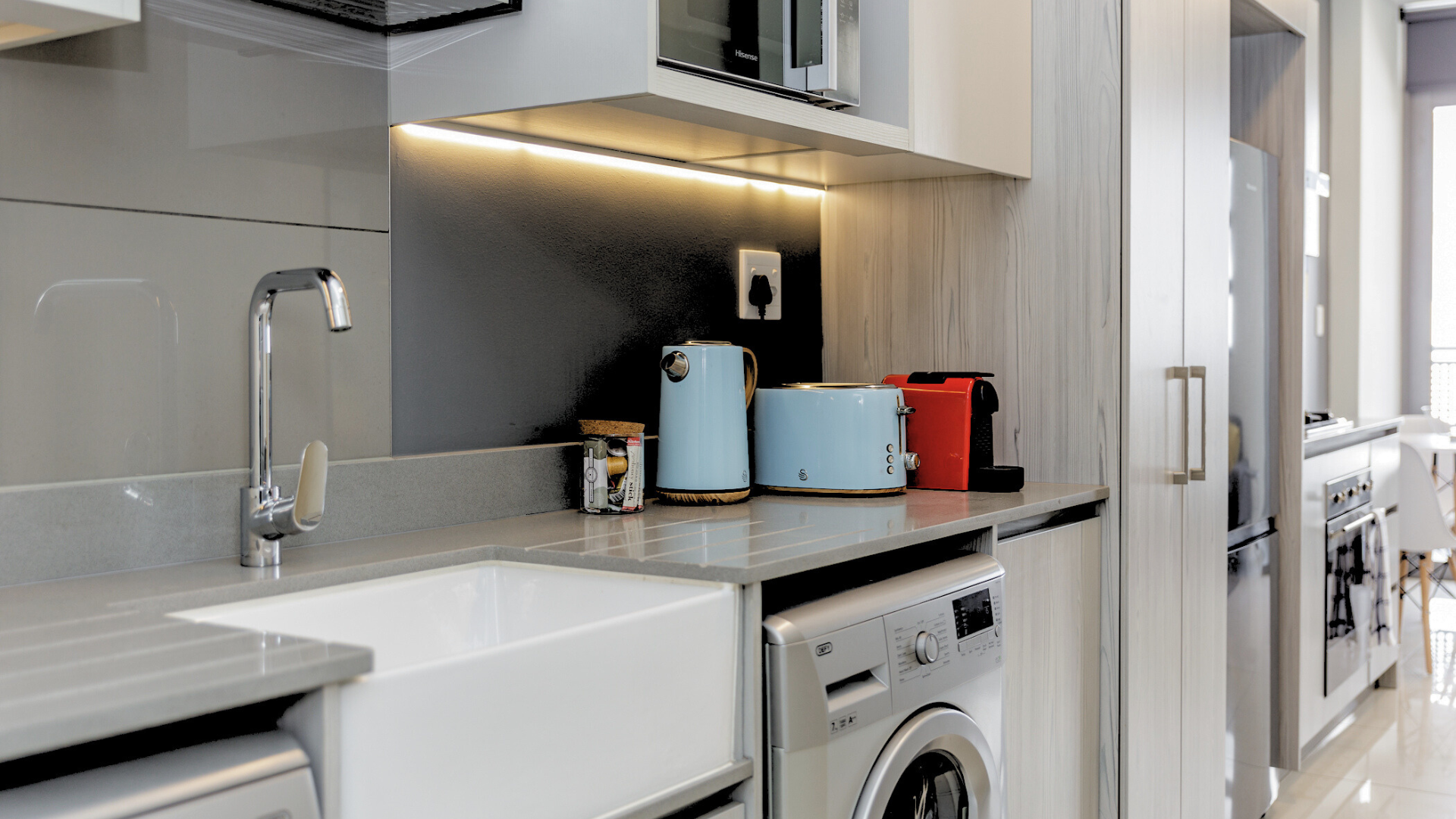- GAS hob, stone counter tops, space for 2 appliances
