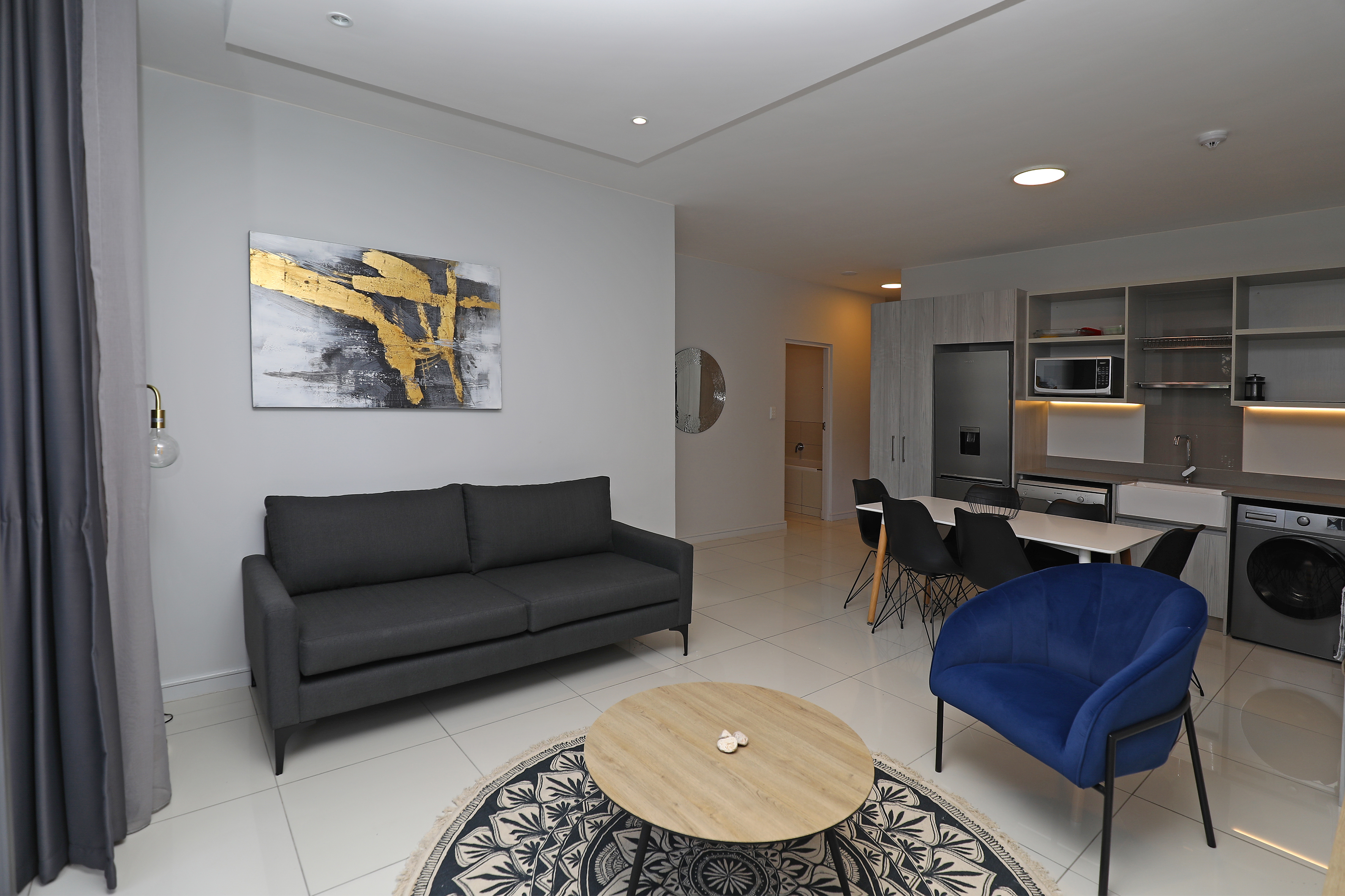 Fully furnished, great investment, 2 bed 1 bath apartment at The Median. No load shedding/ power outages. This property has versatile entrance hall/workstation leading to exquisite, modern, open-plan kitchen with volumes of cupboard space, stone counter tops, SMEG stove/oven and space for two under-counter appliances. Spacious living area leads to the balcony with an amazing view of The Rosebank Piazza. Both bedrooms are sunny and well-sized with a beautiful full shared bathroom.