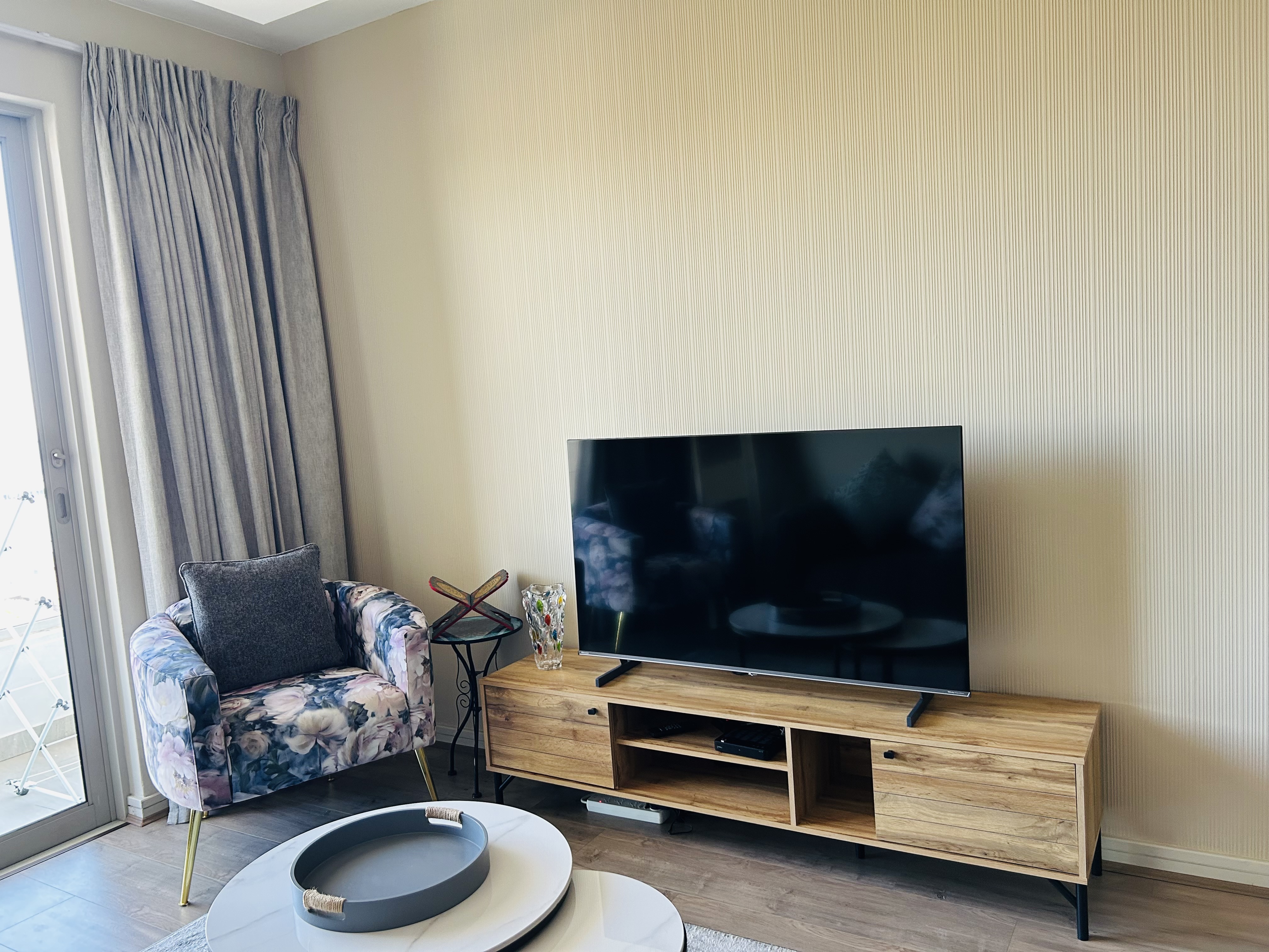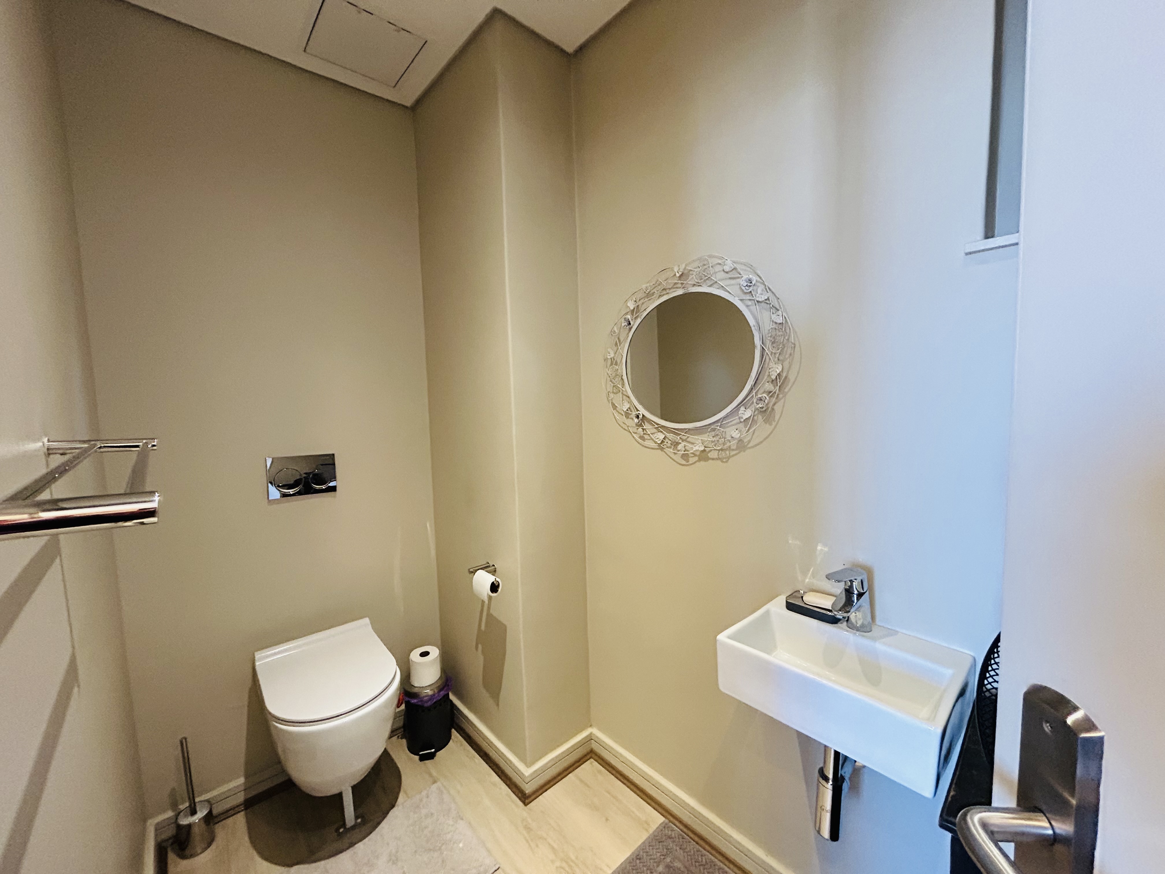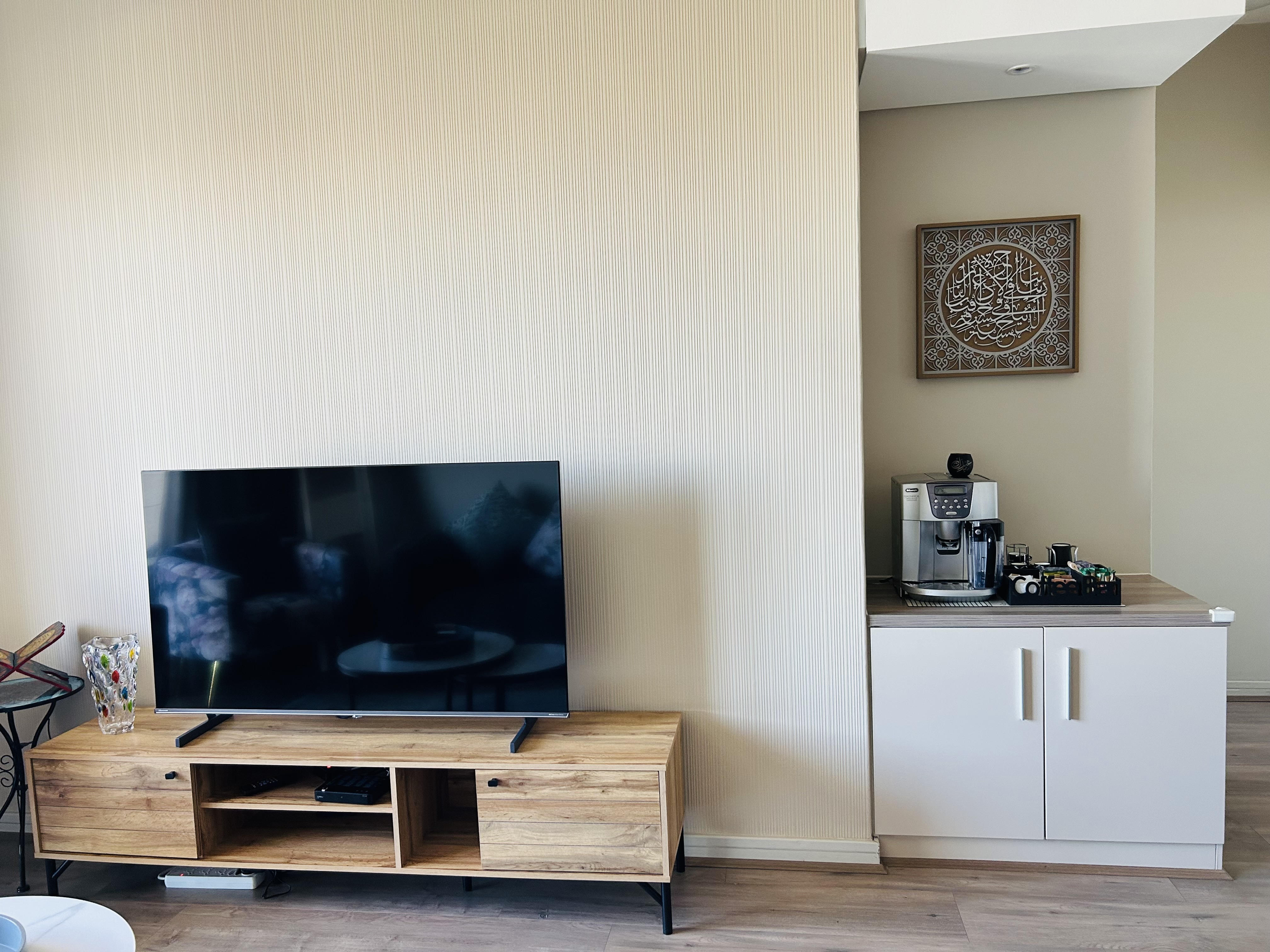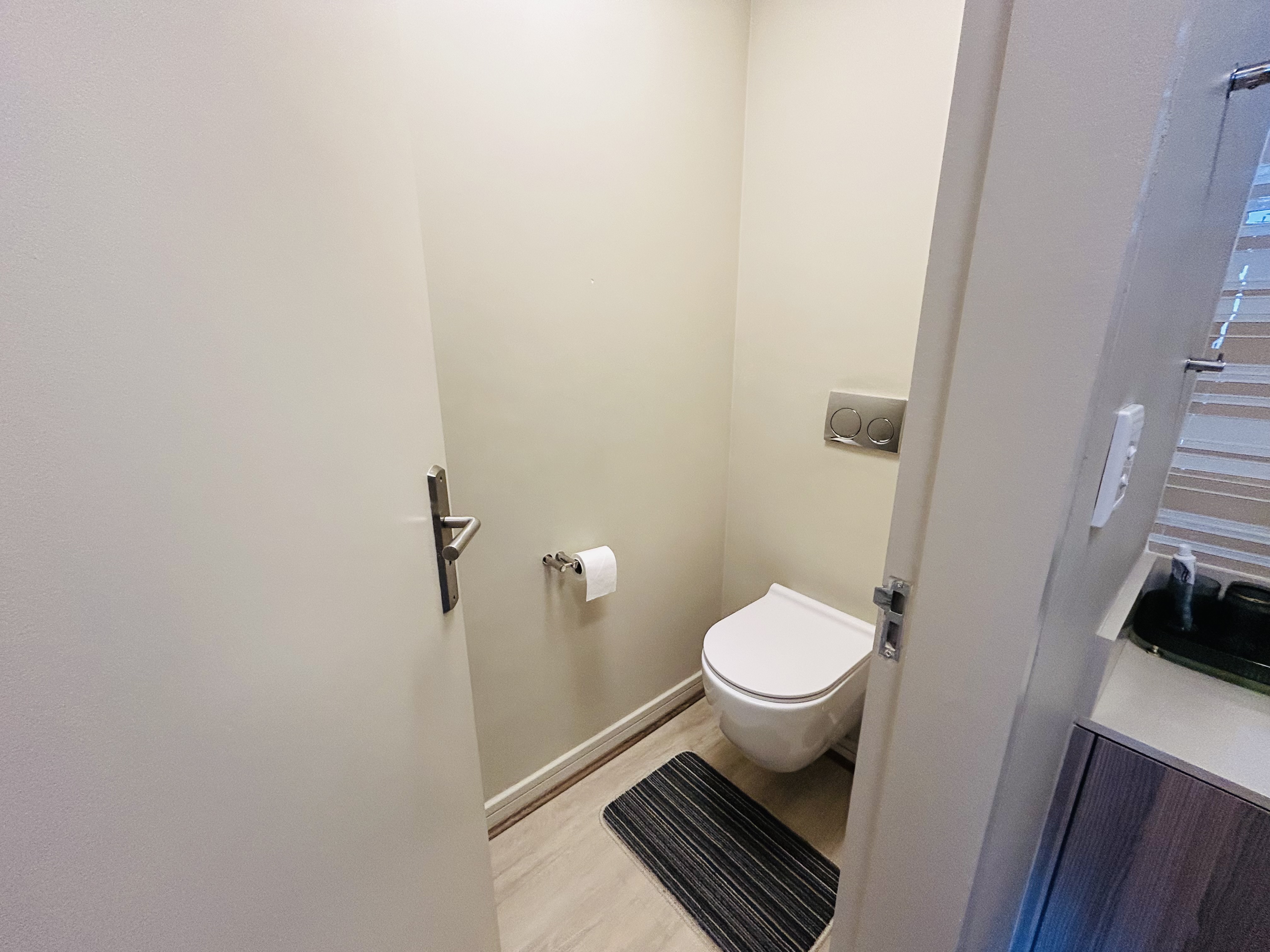 Two beautiful and bright bedrooms (both en-suite) with plenty of cupboards. Separate toilet for guests. Custom flooring. All furnishings included in the negotiable price.