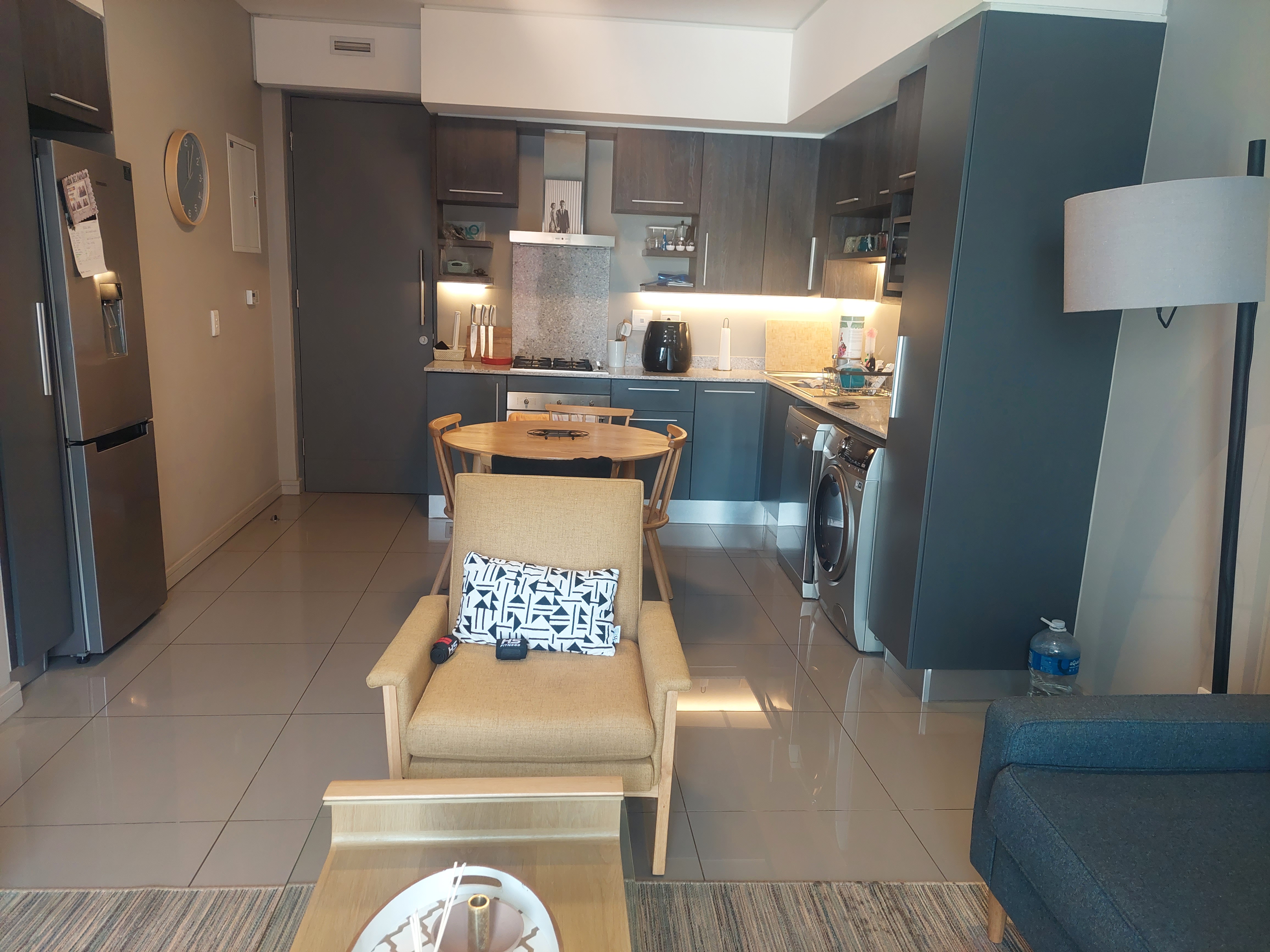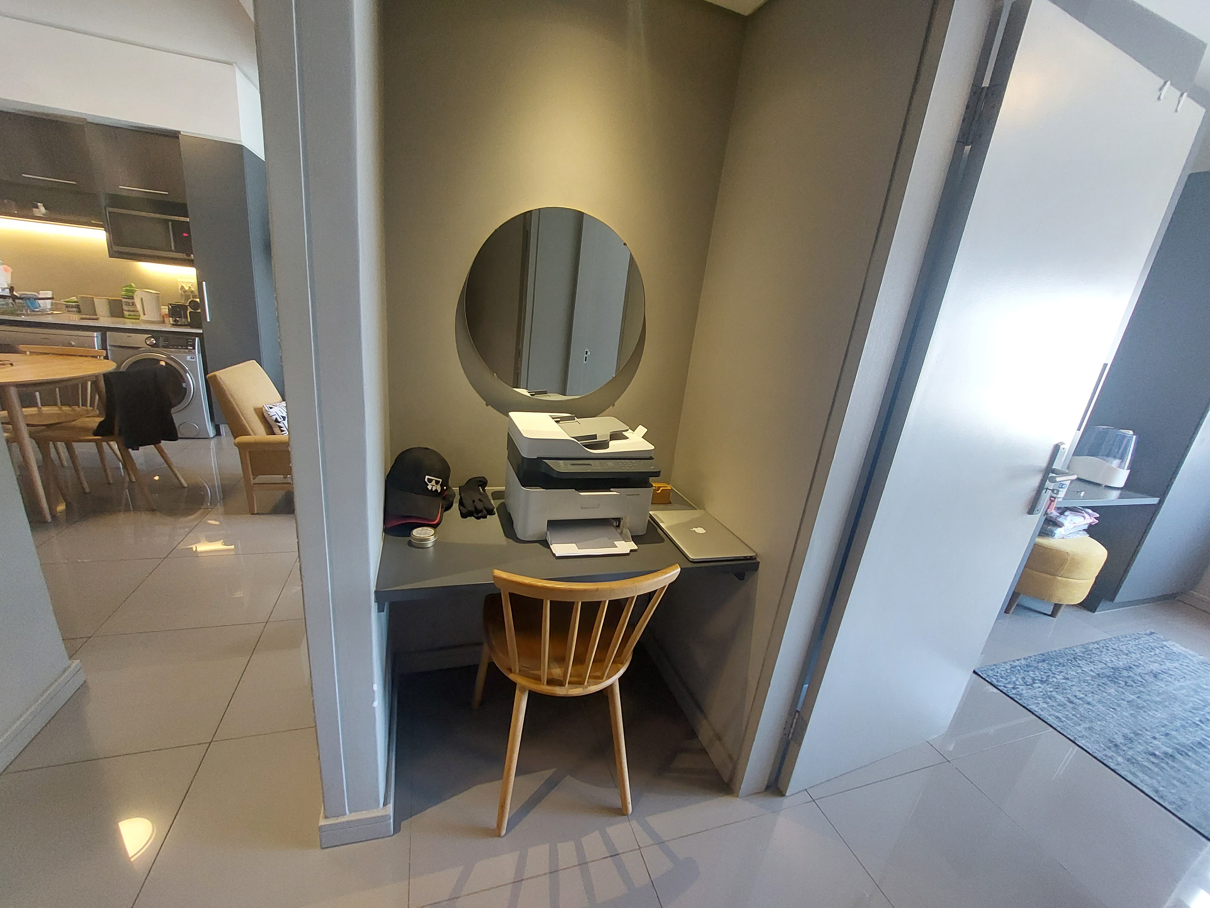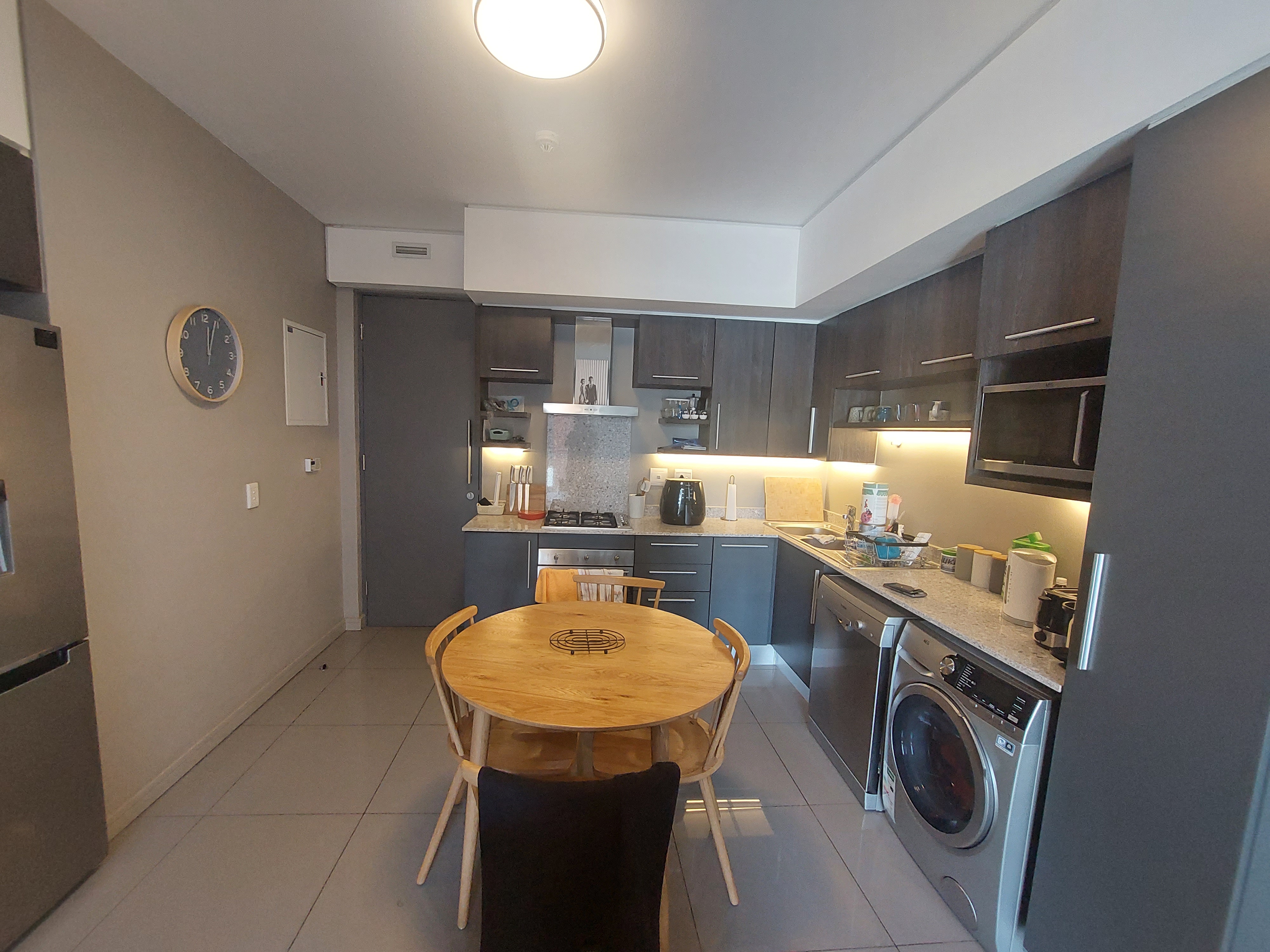 This corner apartment with private views offers an open plan kitchen, lounge and small dining room area leading out to a “New York feeling” balcony overlooking life in Rosebank.