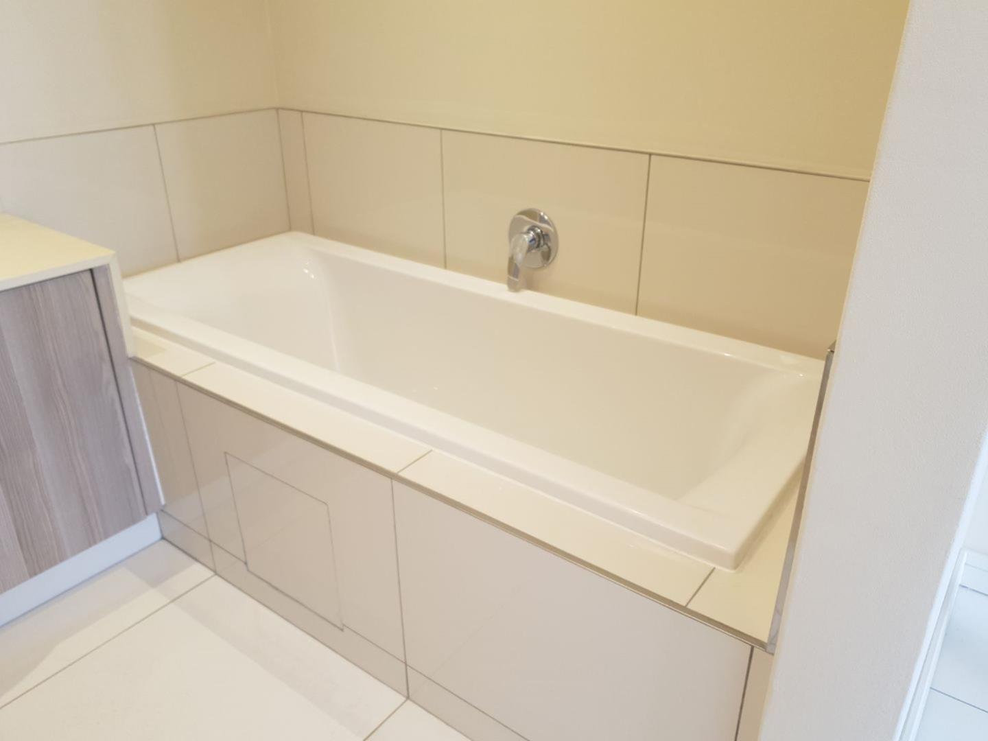 This well designed apartment has an open plan kitchen with stone counter tops, plenty of cupboard space and 1 under counter space for a wet appliance. With a modern SMEG gas hob, electric oven and overhead extractor, cooking could never be easier in this gourmet kitchen.