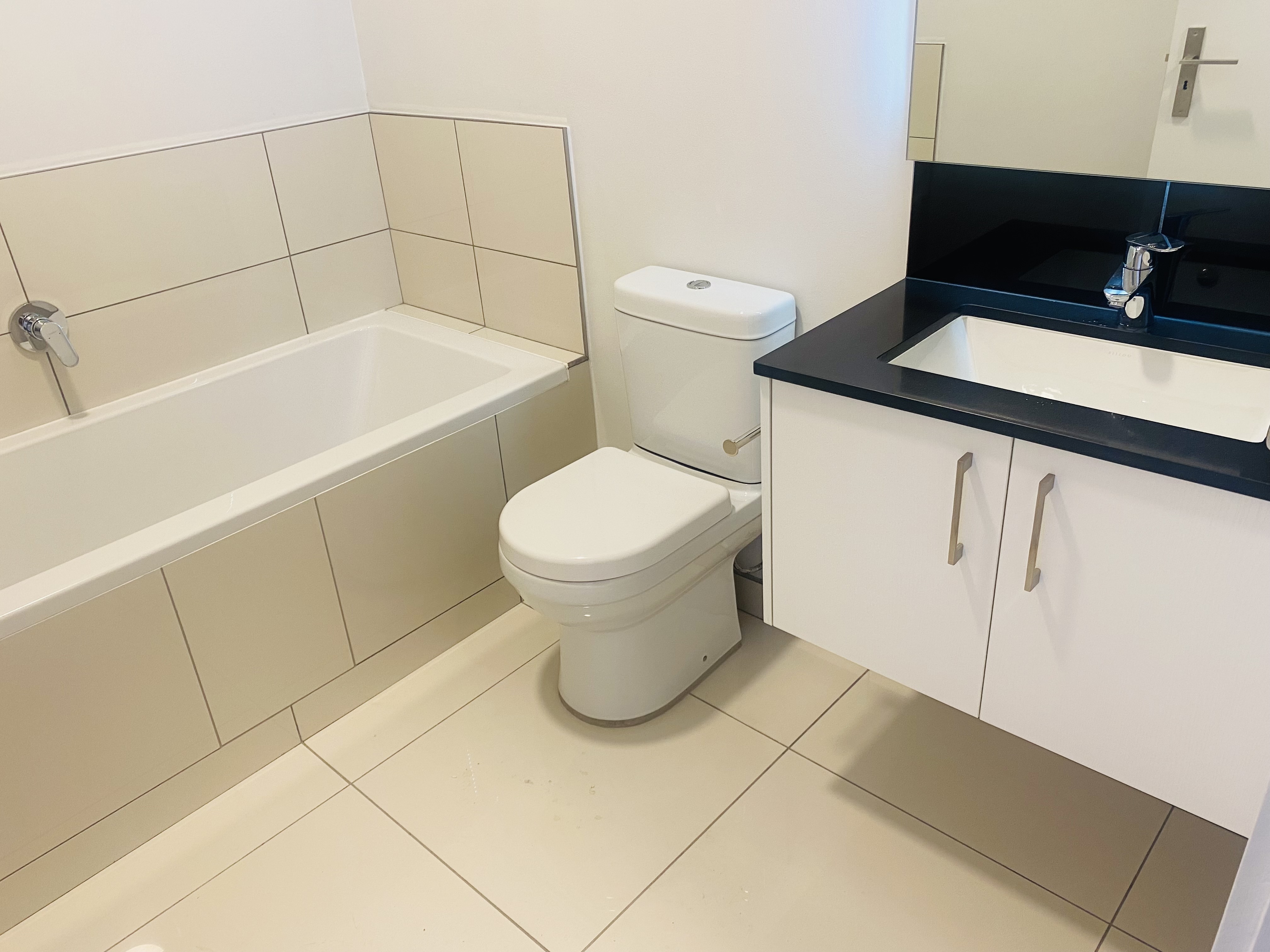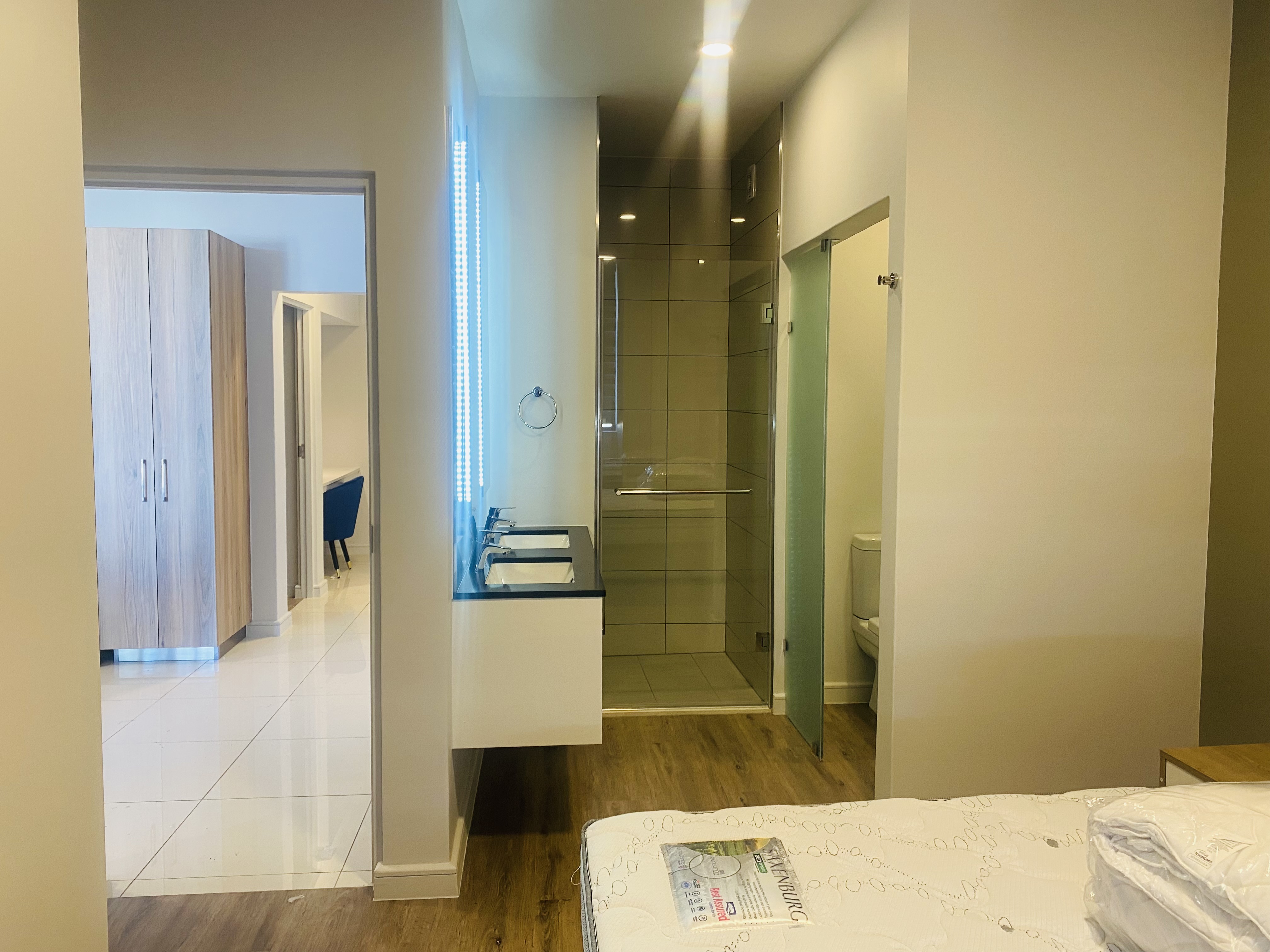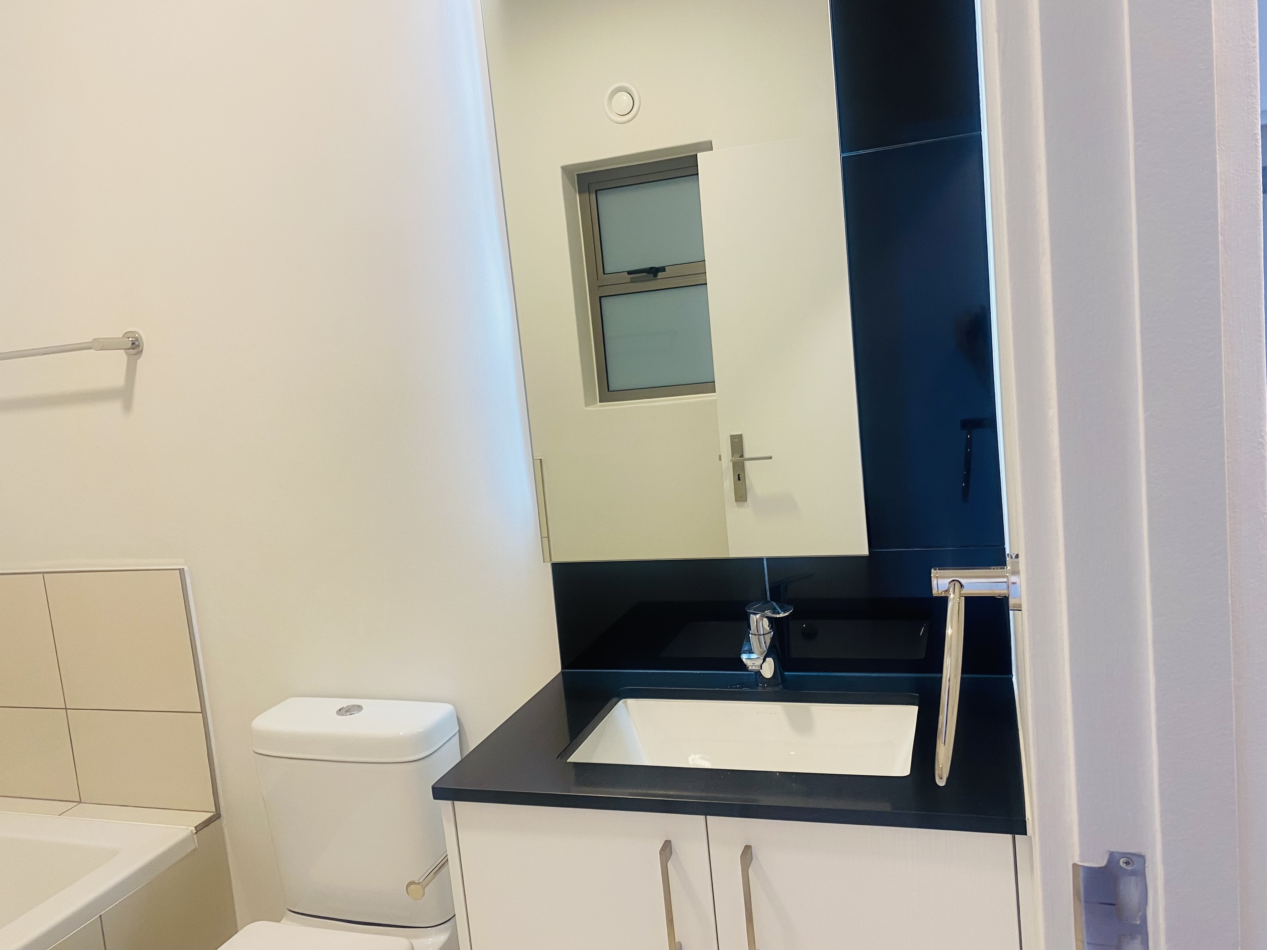 The sunny and spacious living area leads to the balcony overlooking Rosebank. The main bedroom has plenty of cupboards, a works station and a fantastic hotel-style en-suite bathroom.