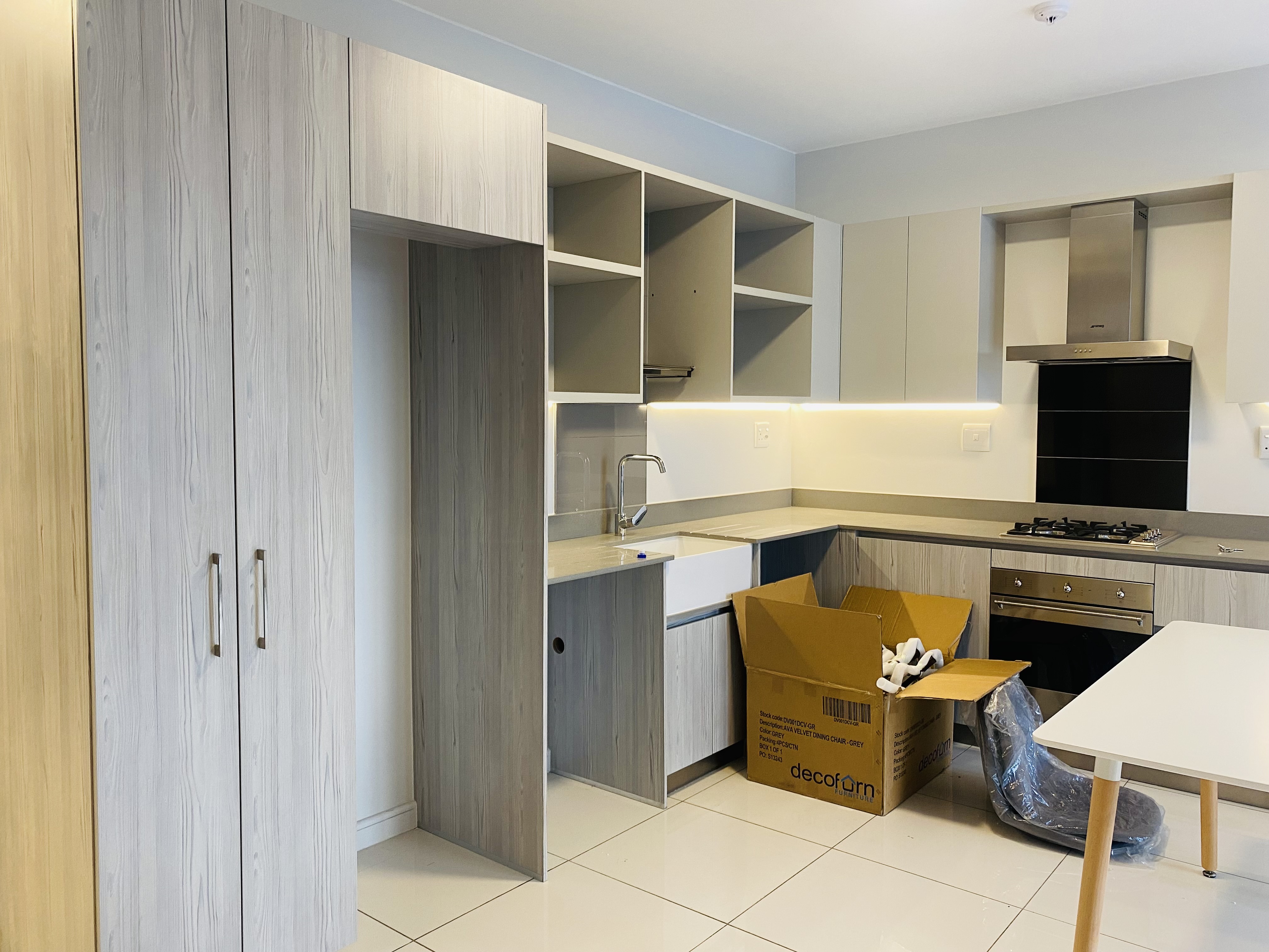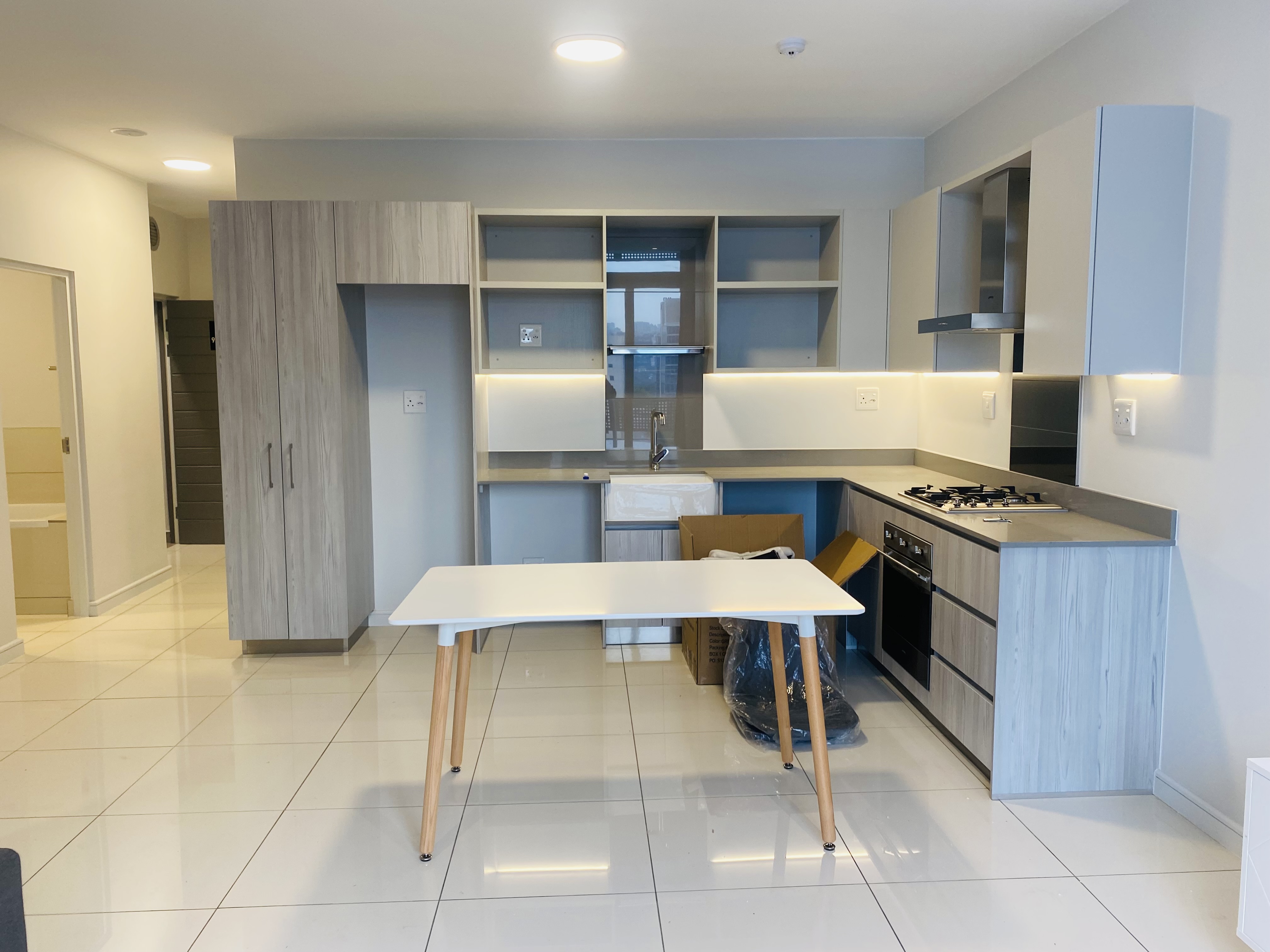 This property has versatile entrance hall & work station. Exquisite, modern, open-plan kitchen with volumes of cupboard space, stone counter tops, SMEG stove/oven and space for two under-counter appliances.