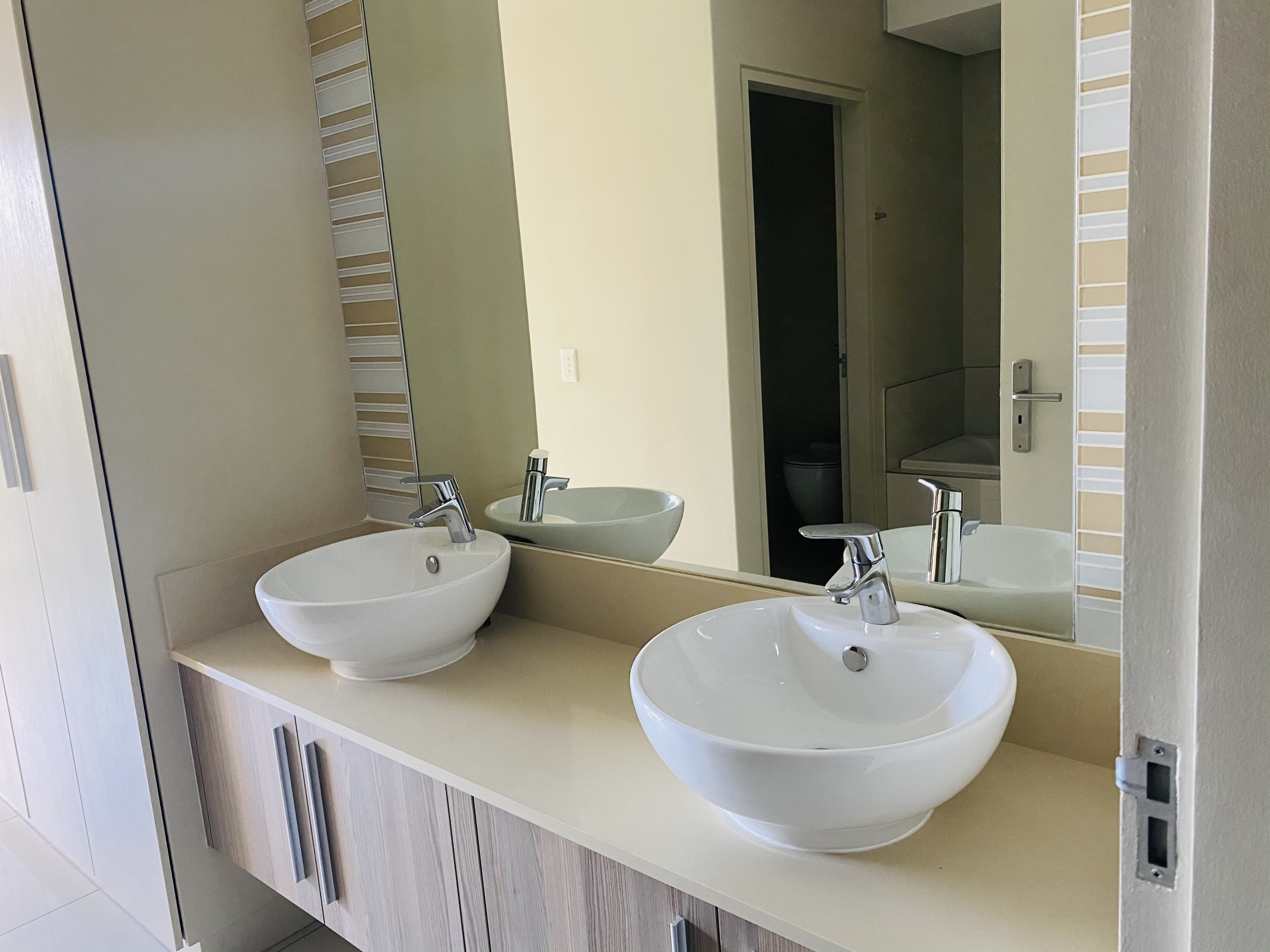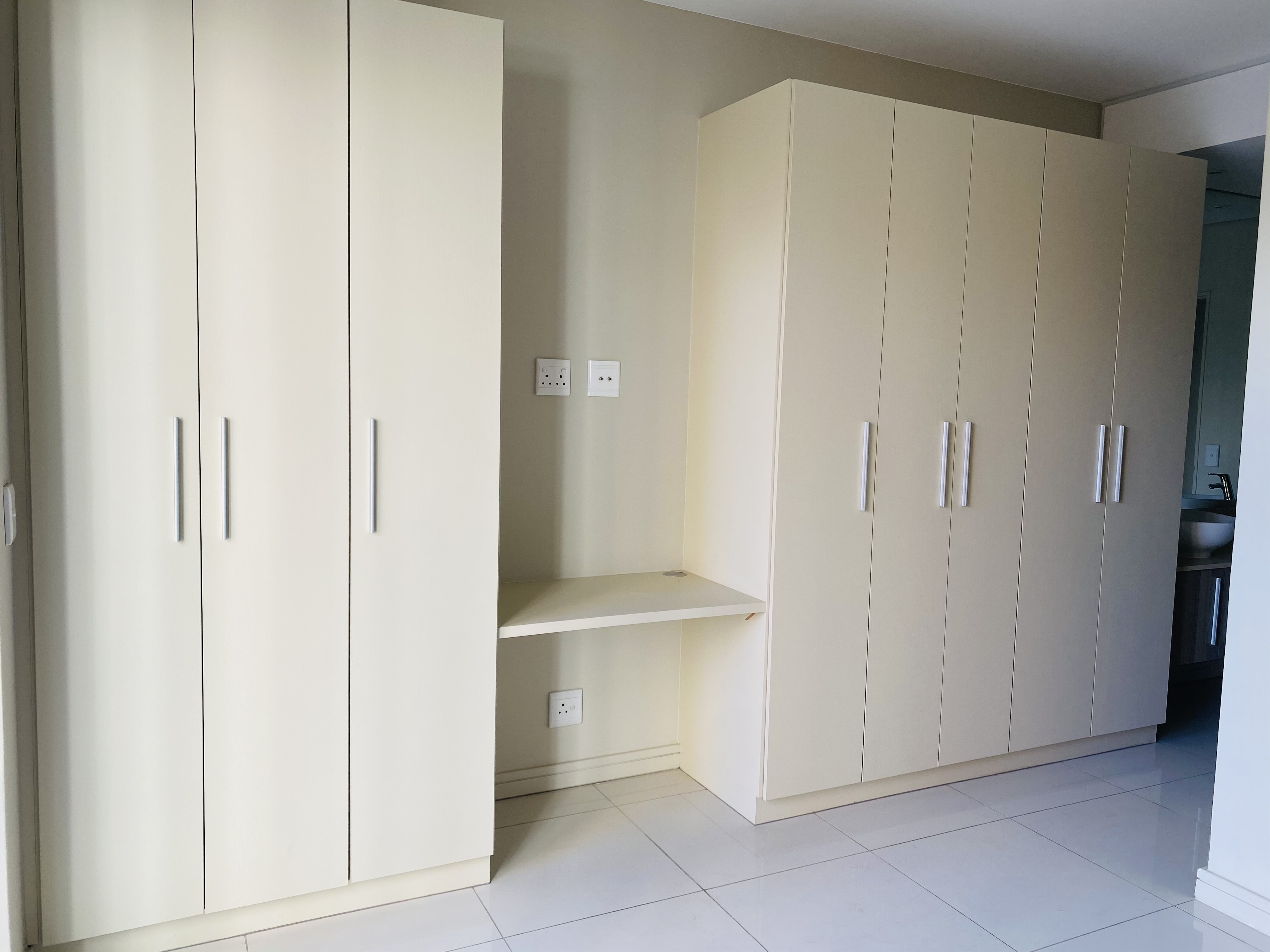 Stunning, open plan kitchen with volumes of cupboards, gas cooking, space for two under-counter appliances and a double-sink. Both bedrooms have volumes of cupboard space. Stunning shower in the second bedroom.