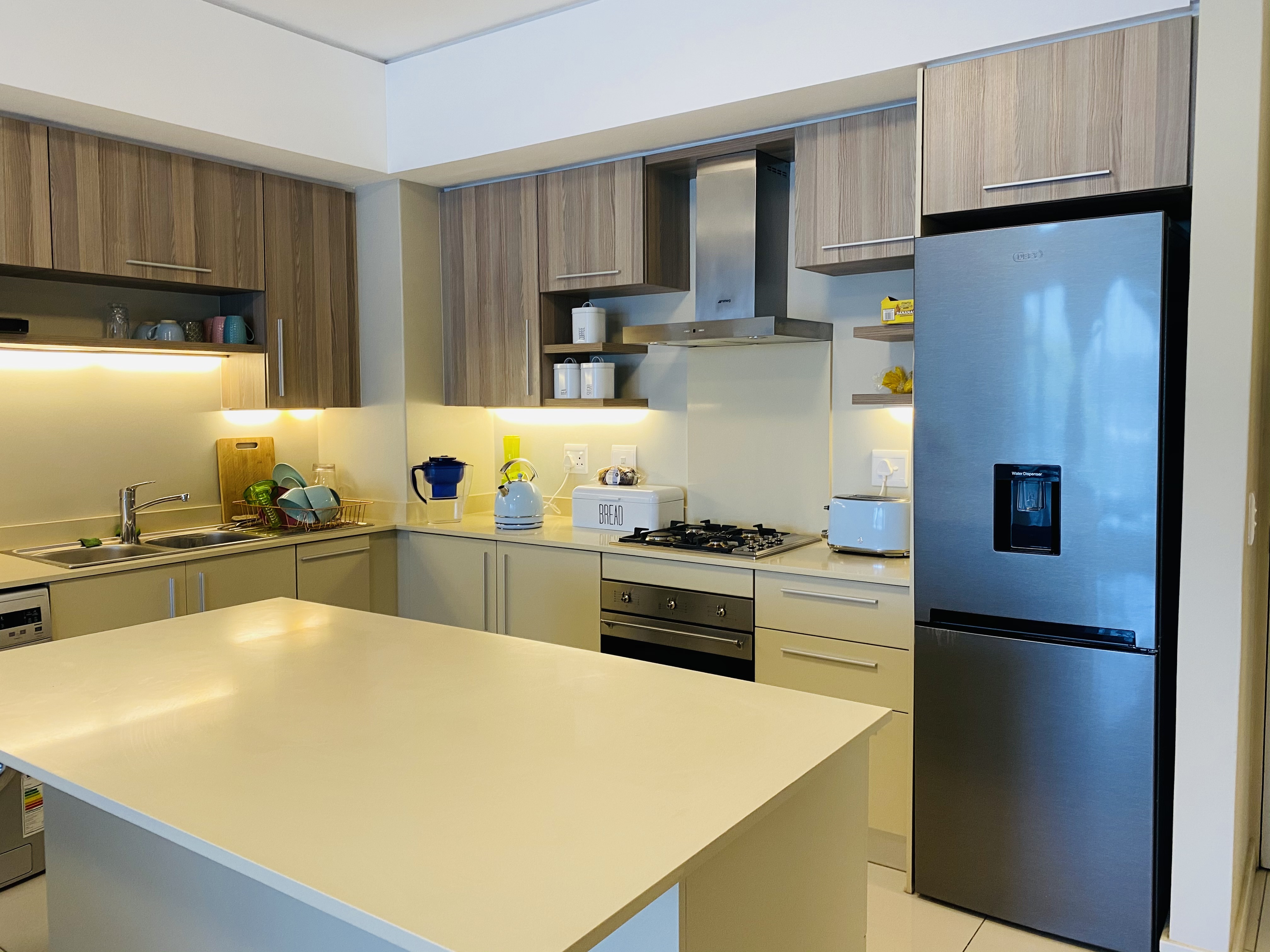 This beautiful apartment boasts a super large living area, adjacent to the absolutely gorgeous kitchen. Exquisite kitchen finishes with a volumes of kitchen cupboard space with a kitchen island, double sink and space for two under-counter appliances.